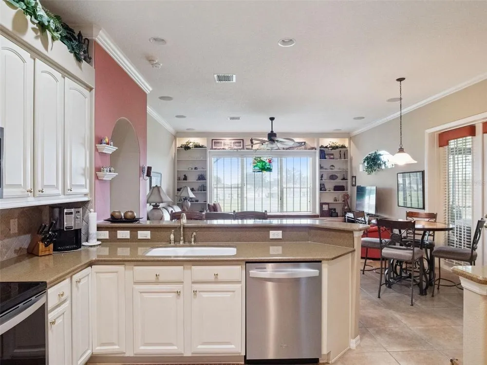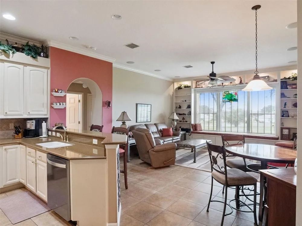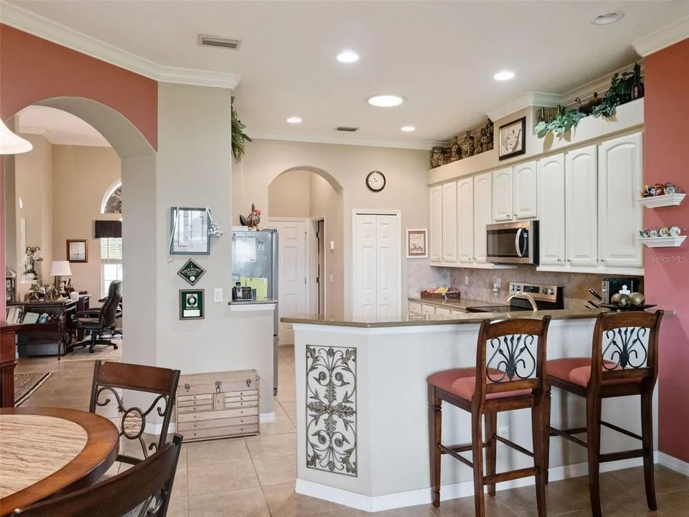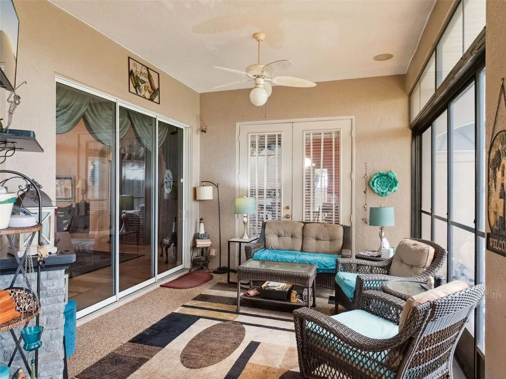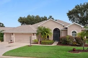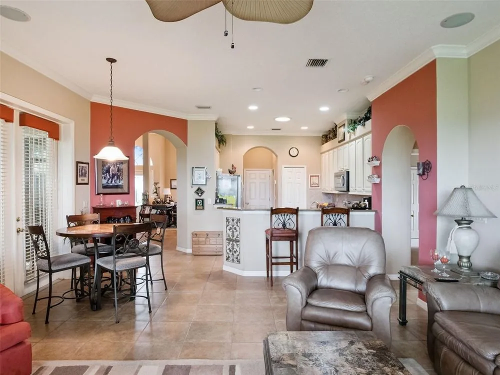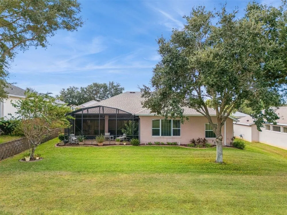 Welcome to your future home! A place where comfort, style, and golf front living come together in perfect harmony. This exceptional three-bedroom, two-bathroom Monarch Model home with a golf cart garage is an unparalleled opportunity for discerning buyers looking for their Florida retreat. A home built for entertaining with stunning curb appeal, guaranteed to captivate you upon arrival. The double door screened entry has a stately elegance and draws your eyes to the 16th fairway through the glass sliding doors. The interior space has been thoughtfully designed with both formal and casual dining and living areas. For the culinary enthusiast, the kitchen features stainless appliances just two years young! Generous prep space with seating, open concept, and access to the Florida Room overlooking the golf course will only pique your interest. The details include crown molding, split bedroom floor plan, a Summer Kitchen with gas grill & sink, Pebble Floor, expanded outdoor area with screen enclosure, and lots of closet space! The primary suite provides it's owners a Roman Shower, Garden Tub, solid surface counters, and private commode. The guest quarters are just as lovely and give your family privacy and comfort with ample closets and plenty of room. Additionally, the home offers built-ins, an extra refrigerator in the golf cart garage, arched windows, and views of the course from nearly every room! If space with high ceilings, views, and gorgeous curb appeal are must-haves, this could be the ONE! 2024 Roof! 2020 HVAC! Call for a tour today! Royal Highlands is an active 55+ golf community with two pools, fitness center, courts, Great Hall, restaurant and more! Great proximity to the turnpike, airports, shopping and amusement parks. Come see what Lake County, Florida has to offer you!