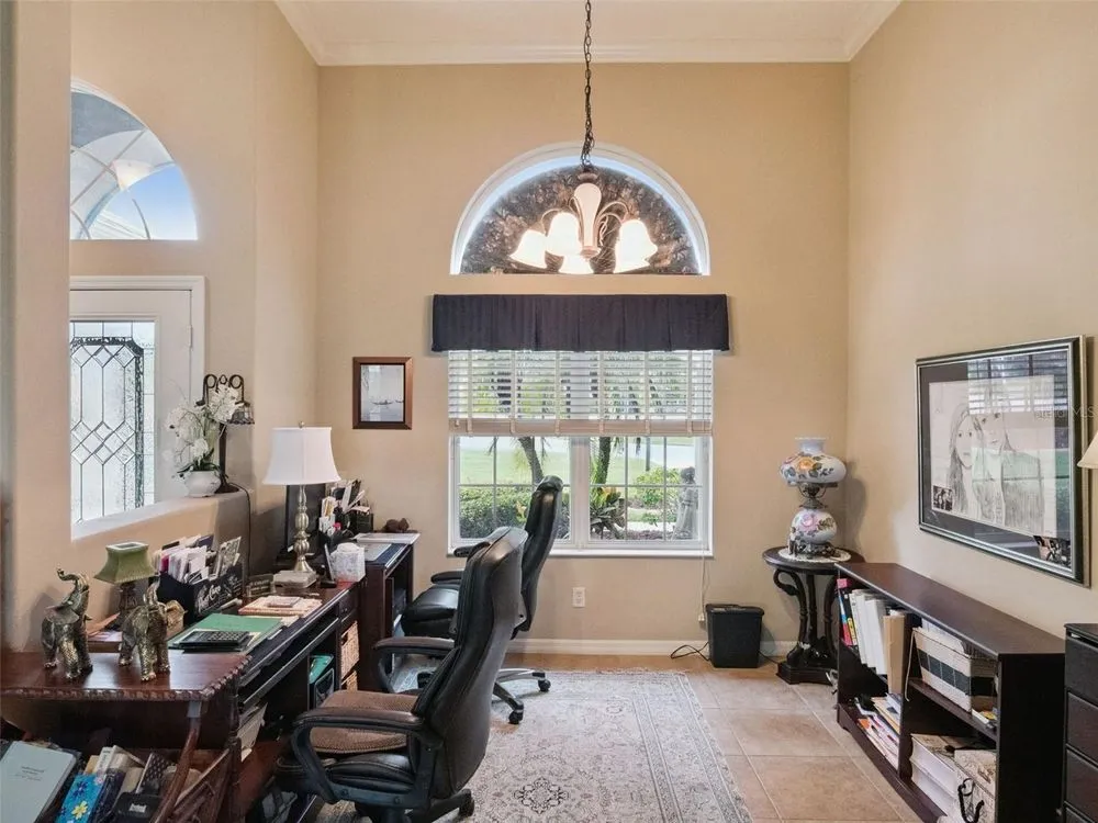 - Built-in Features, Ceiling Fan(s), Crown Molding, Eat-in Kitchen, High Ceilings, Main Level Primary, Tray Ceiling(s), Walk-In Closet(s), Window Treatments