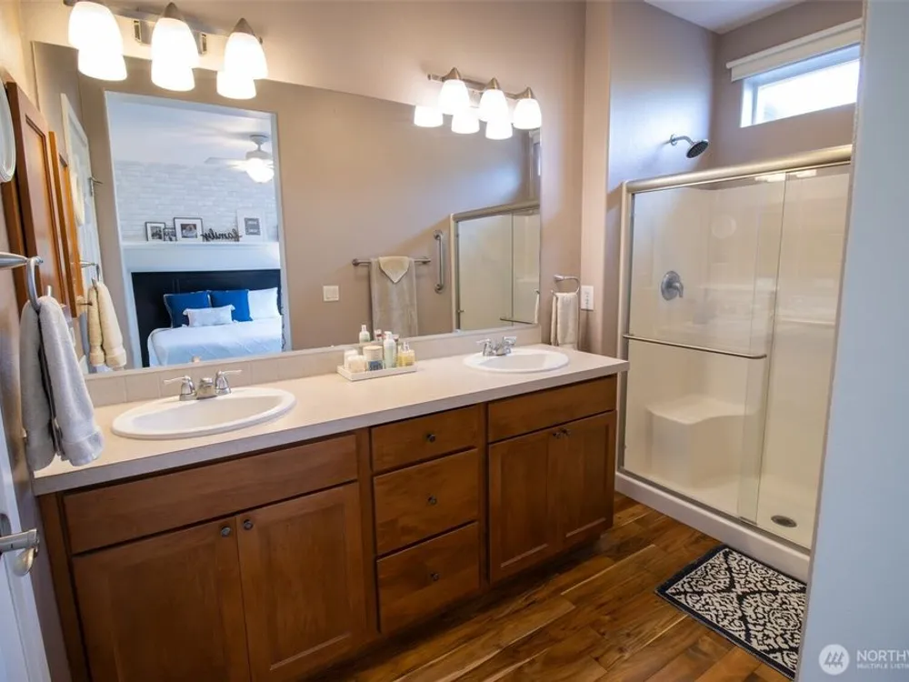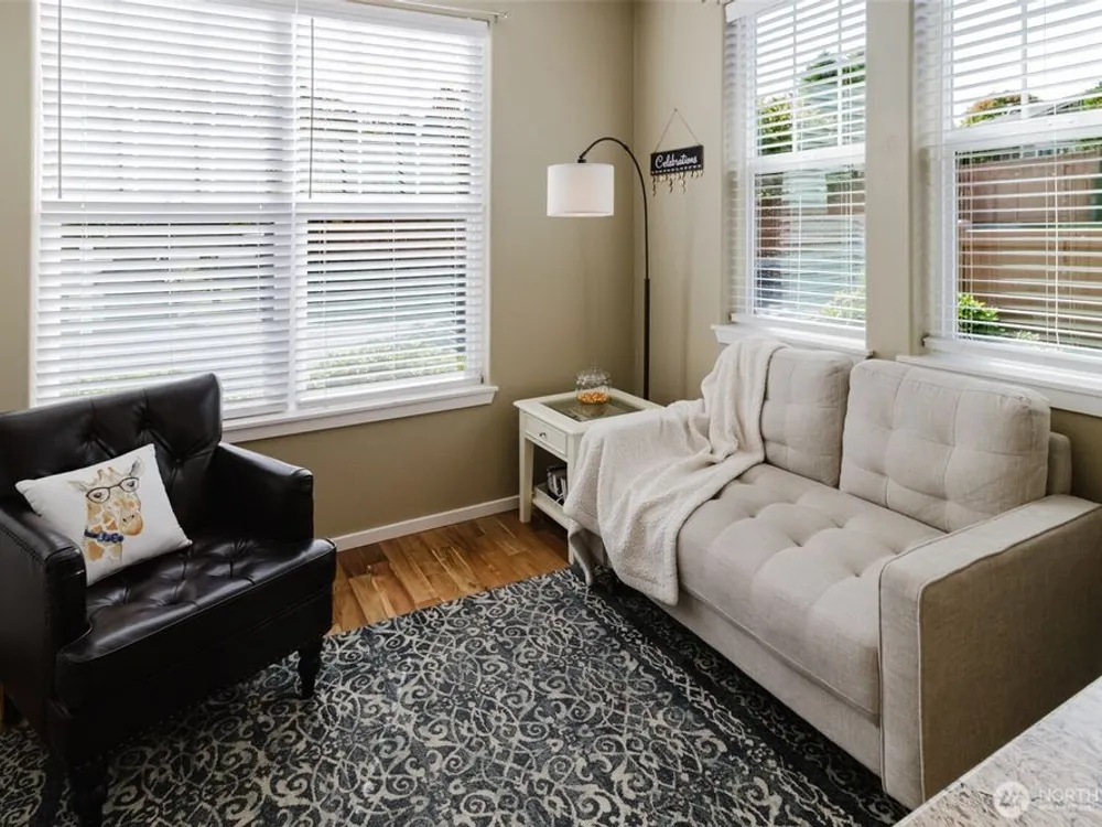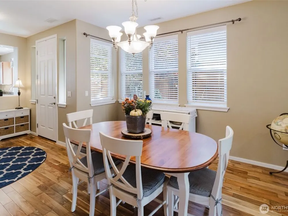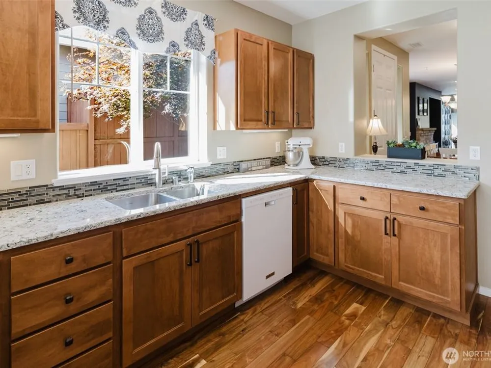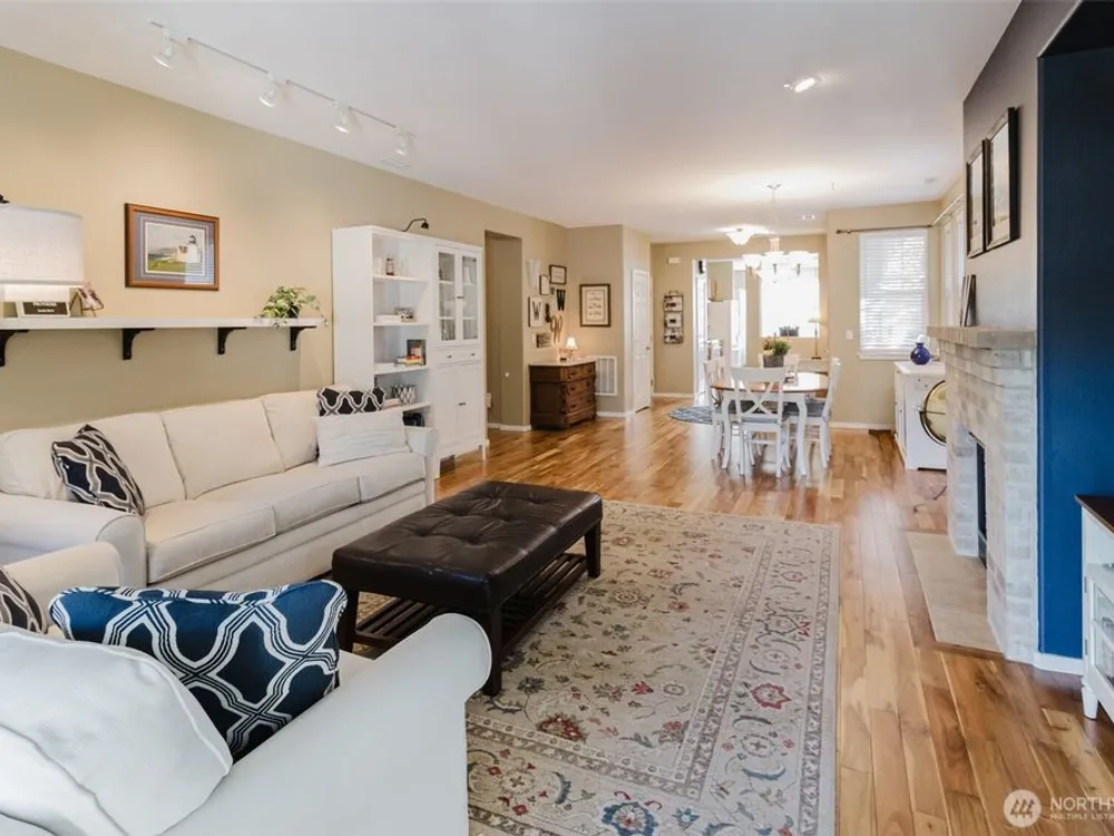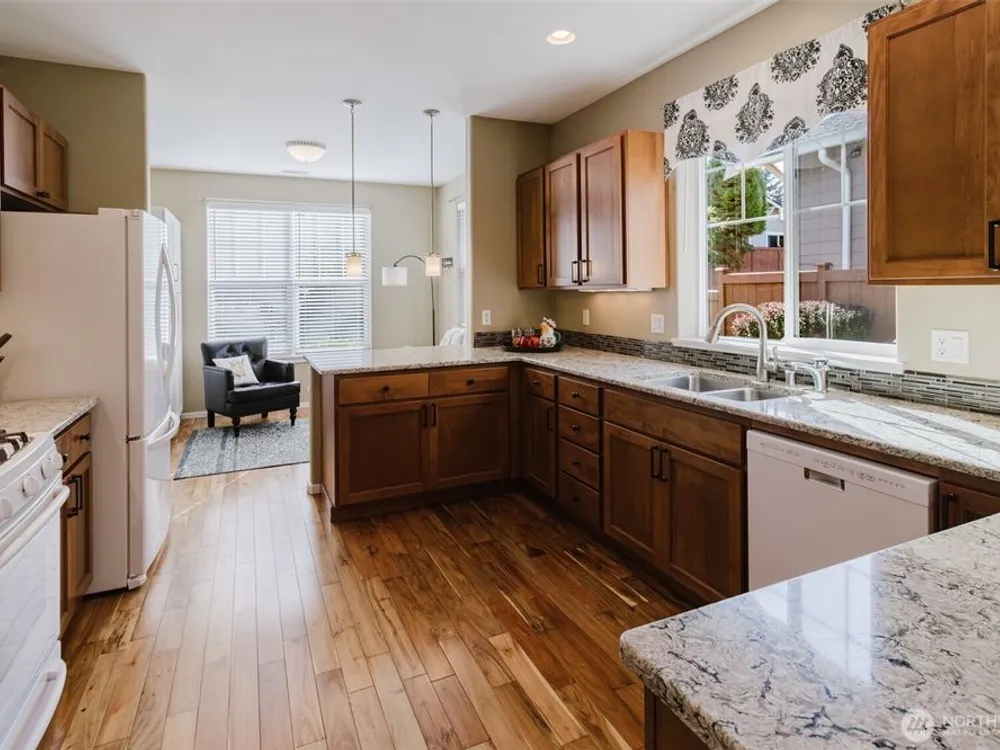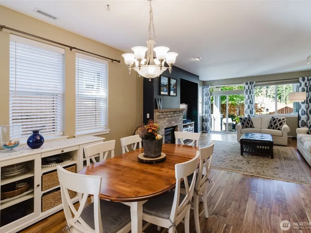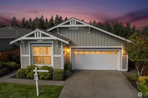 Welcome to Jubilee! Experience a vibrant lifestyle in this beautifully maintained Liberty floor plan. Light-filled, move-in ready, and featuring a private side entry. Gorgeous Hickory hardwood floors grace the main living areas, while the kitchen boasts quartz countertops and a cozy nook perfect for a desk or hobby space. Enjoy the warmth of a gas fireplace with brick surround. The finished garage includes a workbench and storage. Relax on the private covered patio with a retractable awning. Easy access to JBLM, medical facilities, shopping, and I-5. Community amenities include a clubhouse, workout room, pool, ballroom, pickleball and tennis courts, playgrounds, and more, all near Hawks Prairie Golf Course.