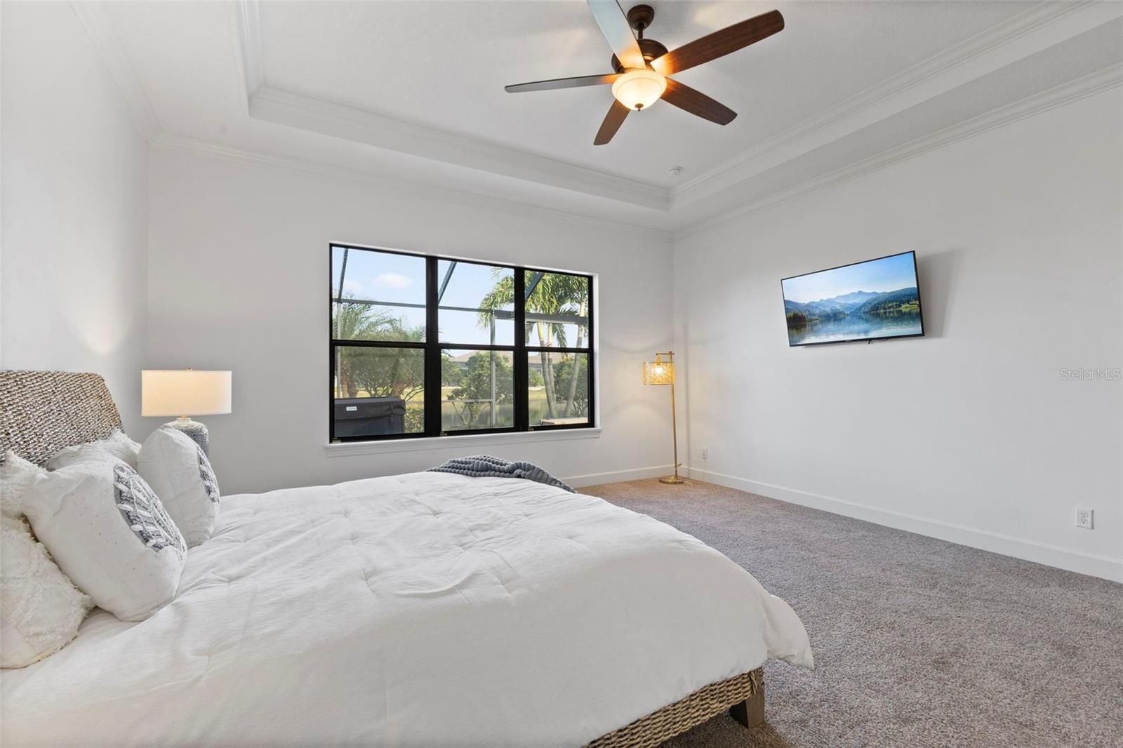 Welcome to 4921 Tivoli Run, a beautifully appointed 3 bedroom plus den GOLF DEEDED pool home with a wonderful water view. This home offers comfort, elegance, and a refined Florida lifestyle within one of Bradenton’s most desirable gated communities, Esplanade. This thoughtfully designed home blends spacious indoor living with inviting outdoor areas, creating an ideal environment for everyday relaxation as well as effortless entertaining. The moment you arrive, you are welcomed by a manicured exterior, a graceful architectural profile, and a warm sense of arrival. Inside, the foyer opens to a bright, open-concept layout enhanced by high ceilings, abundant natural light, and a seamless flow between the main living spaces. The great room serves as the heart of the home, offering generous space for gathering and a peaceful view of the backyard and surrounding greenery. The kitchen is designed for both style and function, featuring ample cabinetry, a large island for casual seating, and well-planned workspaces that make meal preparation comfortable and convenient. Directly connected to the main living area and dining space, the kitchen allows for effortless hosting, conversation, and daily living. The primary suite provides a restful retreat, complete with a spacious bedroom, a huge walk-in closet, and an en-suite bathroom with a very large walk in shower. Additional bedrooms are well-appointed and versatile, suitable for guests, a home office, or hobby spaces depending on your needs. A separate den or flex room further enhances the home’s adaptability. Large sliding doors open to the covered lanai, inviting you to enjoy Florida’s outdoor lifestyle. Just beyond, a beautifully designed outdoor pool with a soothing water feature becomes the focal point of the backyard, and the entire area is fully screened-in for year-round comfort. Whether you envision quiet mornings with a cup of coffee, al fresco dining, or space for future outdoor enhancements, the patio and backyard offer a serene setting with room to personalize. 4921 Tivoli Run presents an exceptional opportunity to own a beautifully maintained home in a desirable Bradenton location. With its harmonious layout, quality finishes, and inviting outdoor spaces, this residence offers a balanced lifestyle suited to a variety of needs. Schedule your visit to fully appreciate the comfort, style, and setting this home provides.