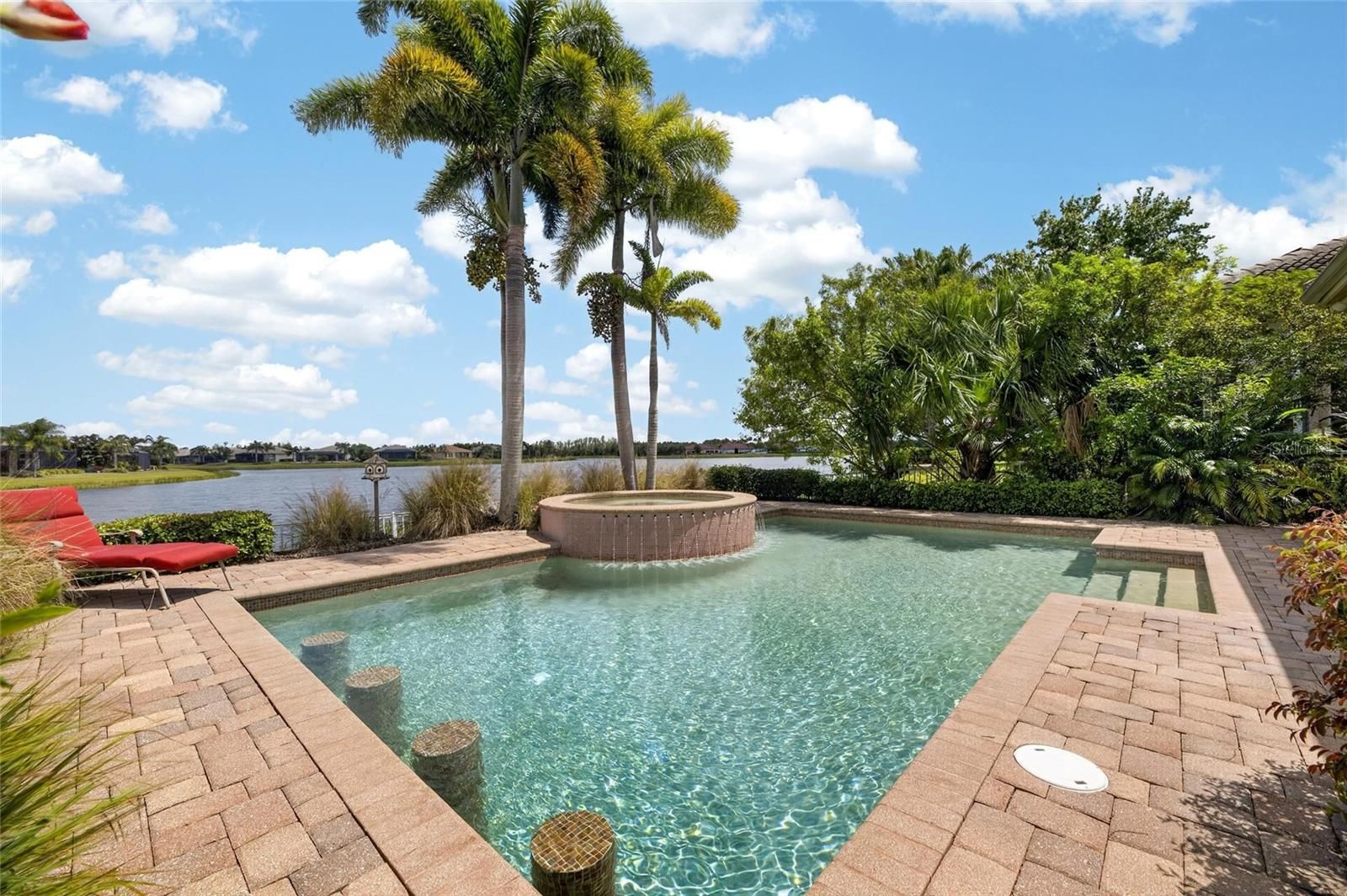 Welcome to Valencia Lakes, a premier 55+ active adult community, where this beautifully furnished Genova model offers the perfect blend of luxury, comfort, and breathtaking lakefront living. This dream home is loaded with fabulous decorator upgrades and exceptional features throughout, including crown molding with trim details, custom paint colors, upgraded tile, wood flooring, designer lighting and ceiling fans, intercom system, gutters, and a stunning custom rear outdoor living space complete with a pool, spa, and expansive pool deck overlooking the large lake. The gourmet kitchen is sure to impress with rich wood cabinetry featuring decorative detailing, granite countertops, and stainless steel appliances, making it as functional as it is beautiful. The spacious primary suite offers a relaxing retreat, while the luxurious primary bath showcases wood cabinetry, granite countertops, custom tile work, and elegant designer finishes, including crown molding within the coffered ceiling. Step outside and take in the spectacular lake view while enjoying your own private backyard oasis. Beyond the home, Valencia Lakes offers an unmatched resort-style lifestyle. The fabulous waterfront outdoor recreation area features a heated resort-style pool, lap pool, resistance pool, Har-Tru tennis courts, half-court basketball, softball field, pickleball courts, racquetball, horseshoes, shuffleboard, and bocce. Inside the impressive clubhouse, residents enjoy a large social hall, aerobics studio, fitness center, steam rooms, saunas, library, billiards room, card rooms, and more. Unwind at the Internet café and experience the very best of active adult living in paradise or enjoy lunch poolside at Mattison's Restaurant. Move into Valencia Lakes and let life begin at home.