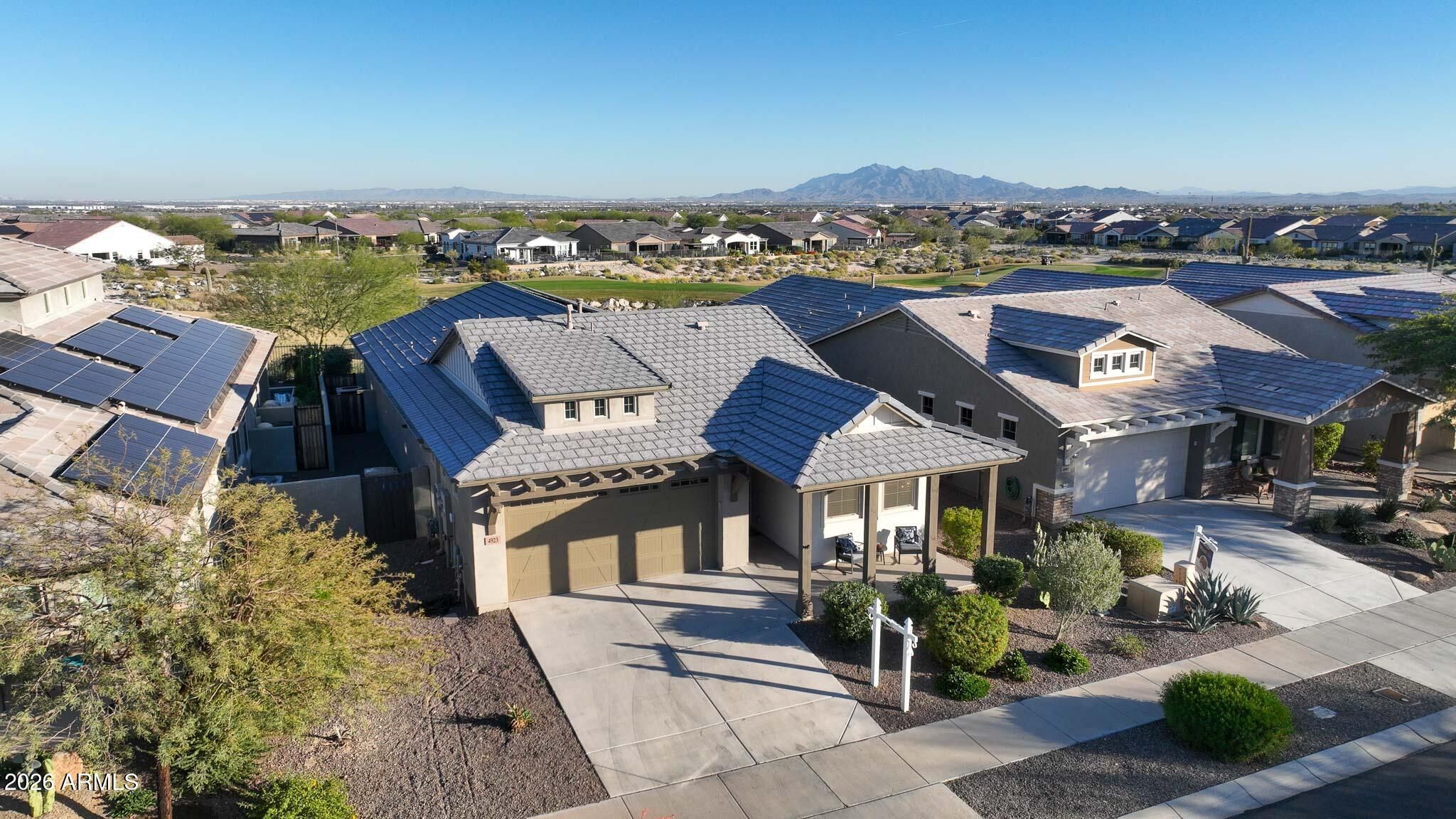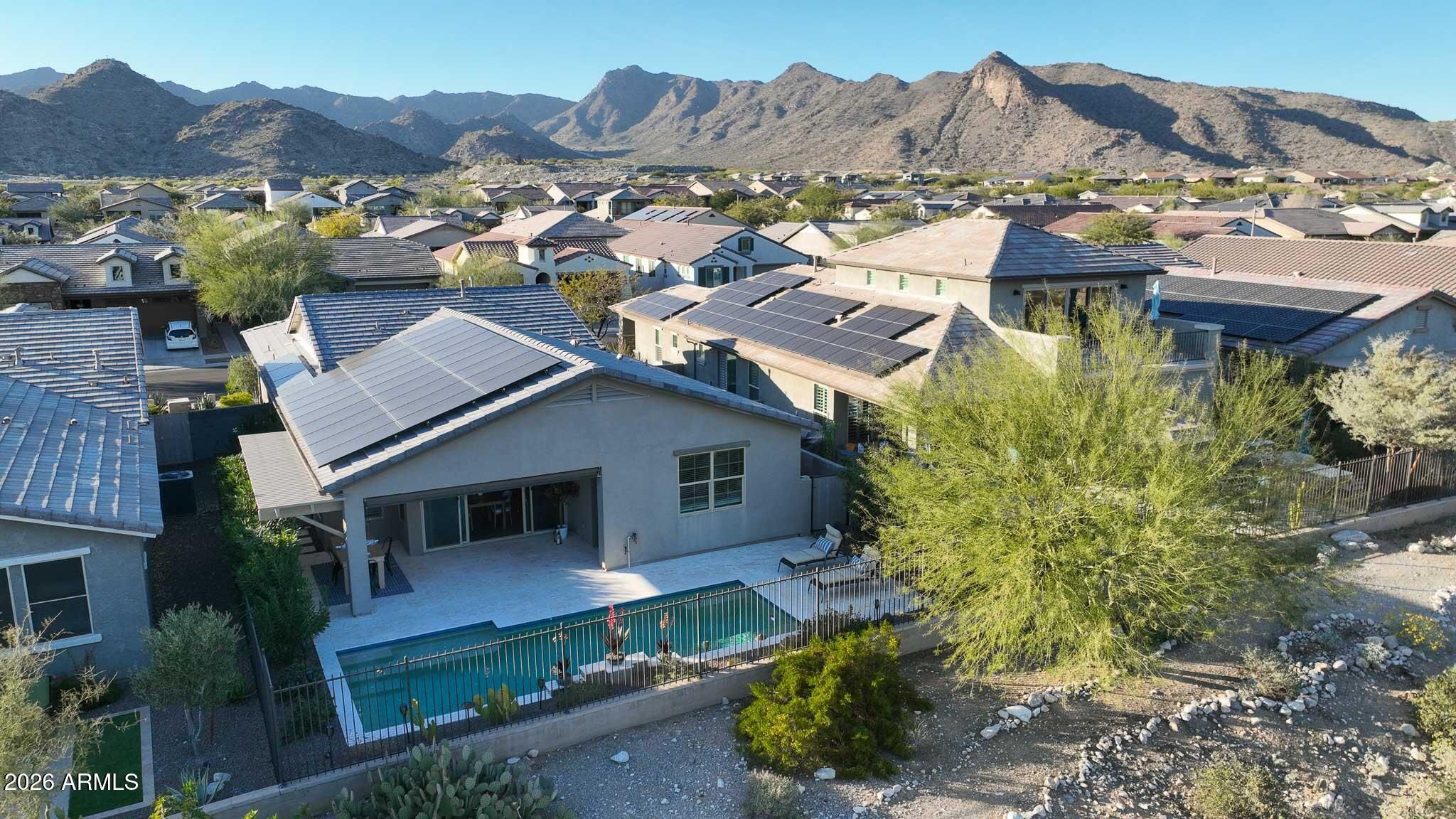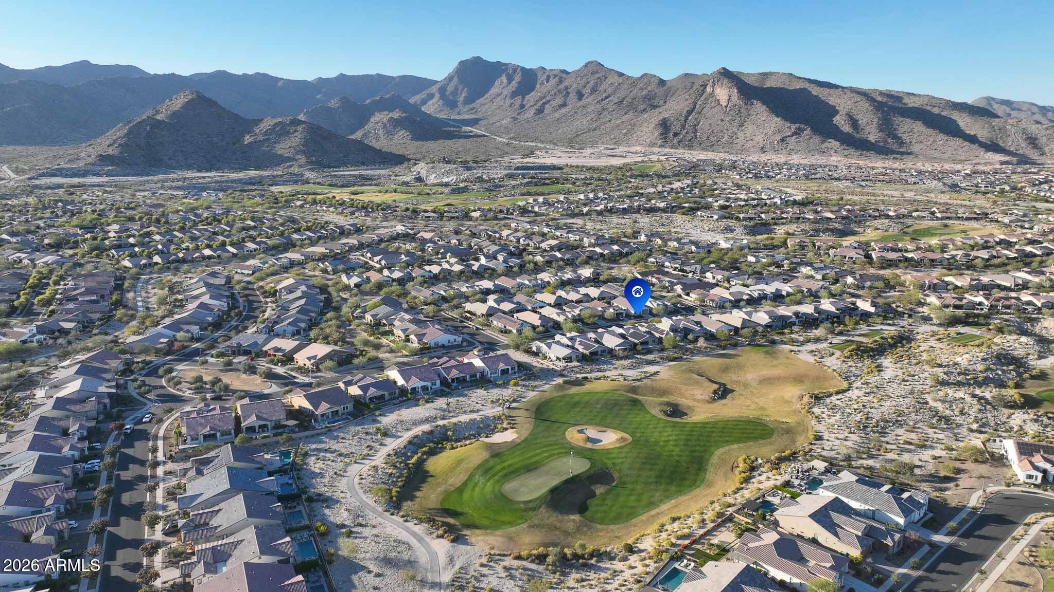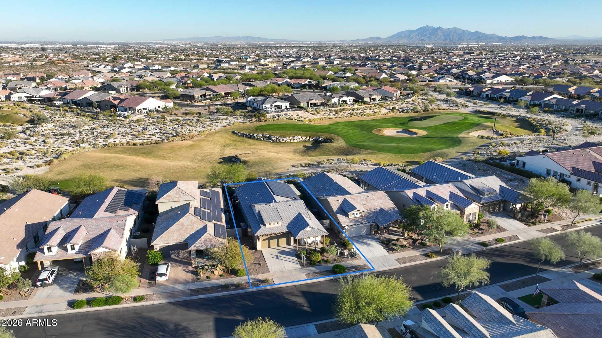 Situated on Hole 14, this beautifully upgraded home showcases the Promenade floor plan and offers 2 bedrooms +den , including guest ensuite w/ newly remodeled walk-in shower. A neutral palette flows throughout, creating a bright and timeless feel. The Chef's Kitchen features dual overs, quartz countertops, abundant cabinetry with rollouts & an oversized Butler's pantry with exceptional storage. The Owner's retreat captures golf course, mountain and city views and overlooks the backyard. The ensuite bath includes a remodeled custom-zero threshold walk-in shower w/ floor to ceiling tile. Enjoy outdoor living with a sparkling pool, covered patio and mature landscaping - ideal for entertaining or relaxing while taking in the views. A 3 car garage, EV Charger, & OWNED SOLAR complete home.