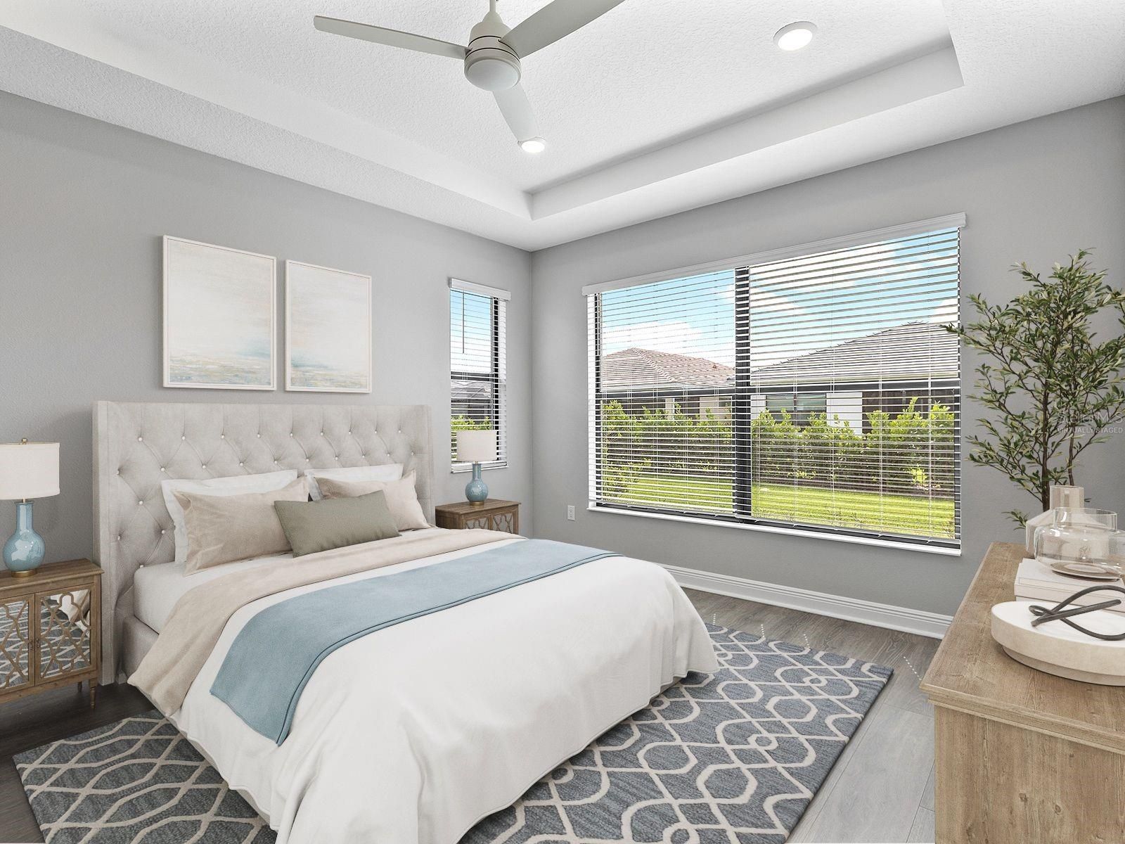 - Ceiling Fan(s), Eat-in Kitchen, Living/Dining Room, Open Floorplan, Stone Counters, Thermostat, Tray Ceiling(s), Walk-In Closet(s), Window Treatments