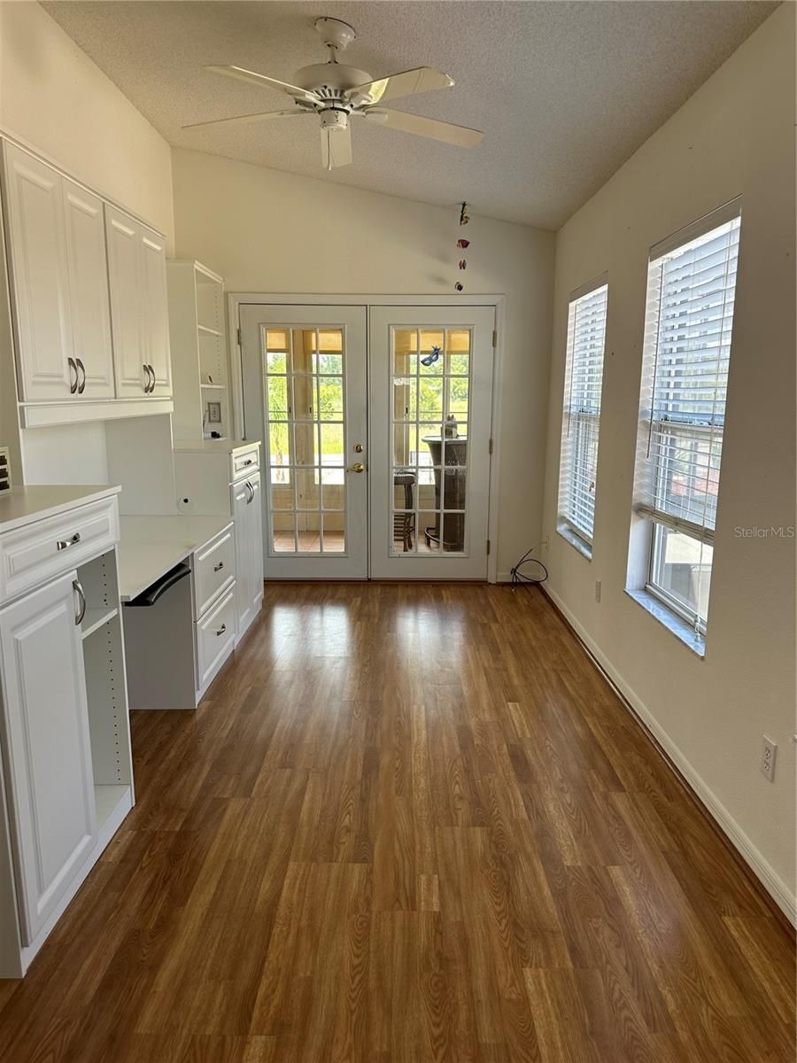 - Ceiling Fan(s), Eat-in Kitchen, High Ceilings, Living/Dining Room, Open Floorplan, Main Level Primary, Solid Surface Counters, Solid-Wood Cabinets