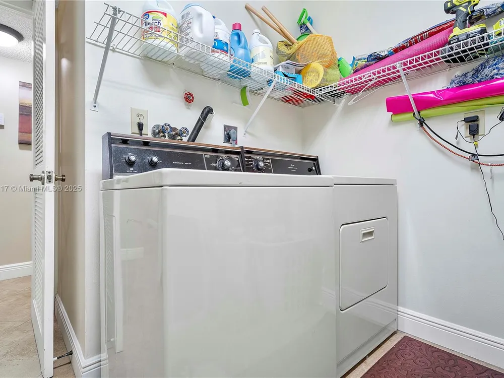 - Dryer, Dishwasher, Electric Range, Disposal, Microwave, Refrigerator, Washer
