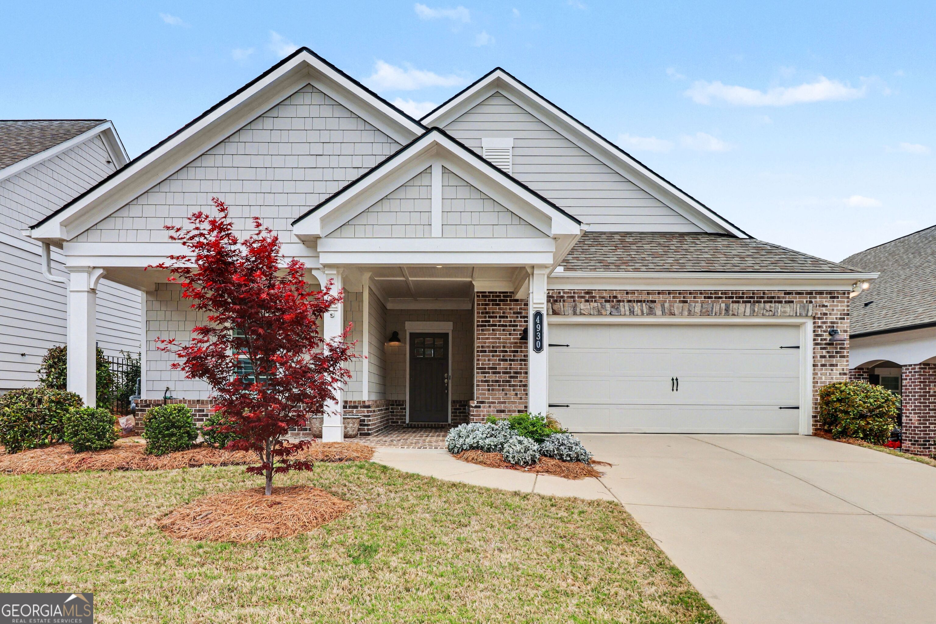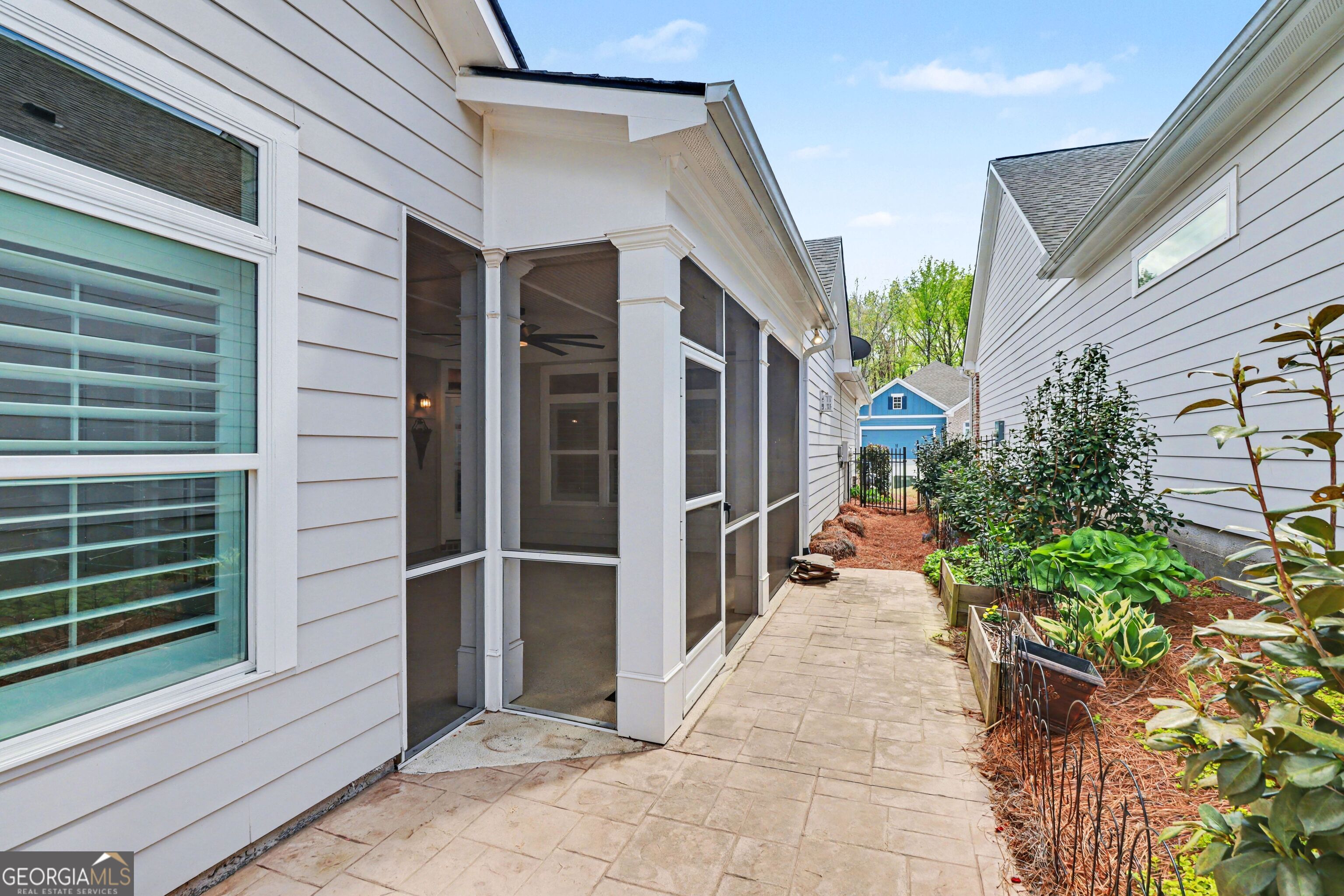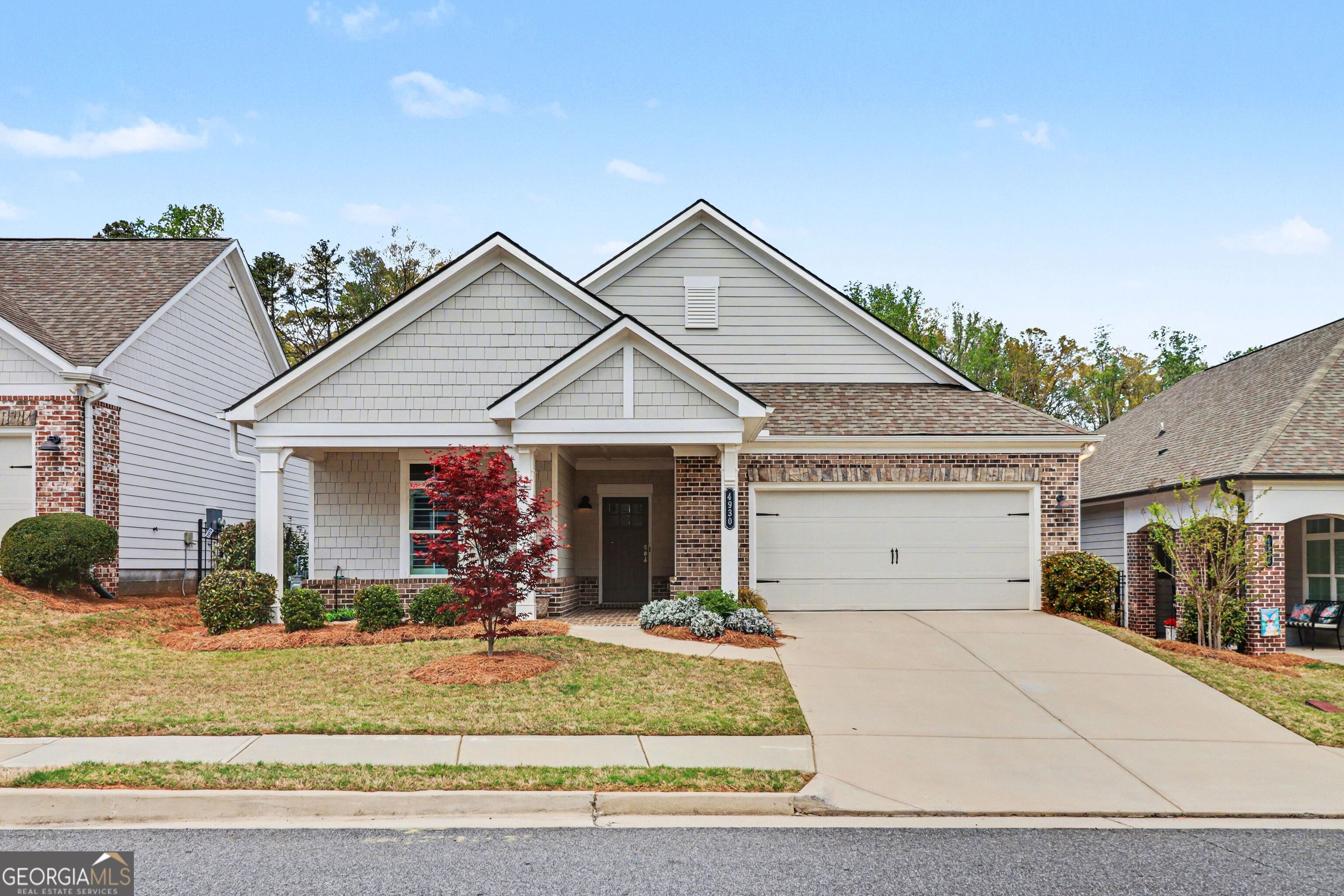 Rare one-story retreat in the heart of The Courtyards at Camden. From the moment you step inside, the warmth of hardwood floors, custom plantation shutters, and a cozy gas fireplace set the tone for easy, elegant living. The open-concept layout flows effortlessly into a chef's kitchen with white cabinetry, granite countertops, and stainless steel appliances, including a refrigerator, making entertaining feel effortless. The oversized owner's suite is a true sanctuary, featuring a private sitting area, direct patio access, a luxurious step-in shower, a double vanity, and crown molding throughout. Three bedrooms, two full baths, and thoughtful finishes at every turn. Step outside and you'll find even more to love, a sweeping covered front porch, a screened-in side patio perfect for morning coffee or evening cocktails, complete with fans for airflow, and a fully fenced backyard. The temperature-controlled garage adds incredible flexibility, whether you need a home gym, craft room, or workshop. All of this within a vibrant 55+ community offering a pool, poolside fire pit, clubhouse, fitness center, covered outdoor gathering area, and dog park. HOA covers lawn maintenance, termite bond, and trash, so you can simply enjoy the lifestyle. Major interstates, shopping, and dining are all just minutes away. Homes like this don't last. Schedule your private tour today.