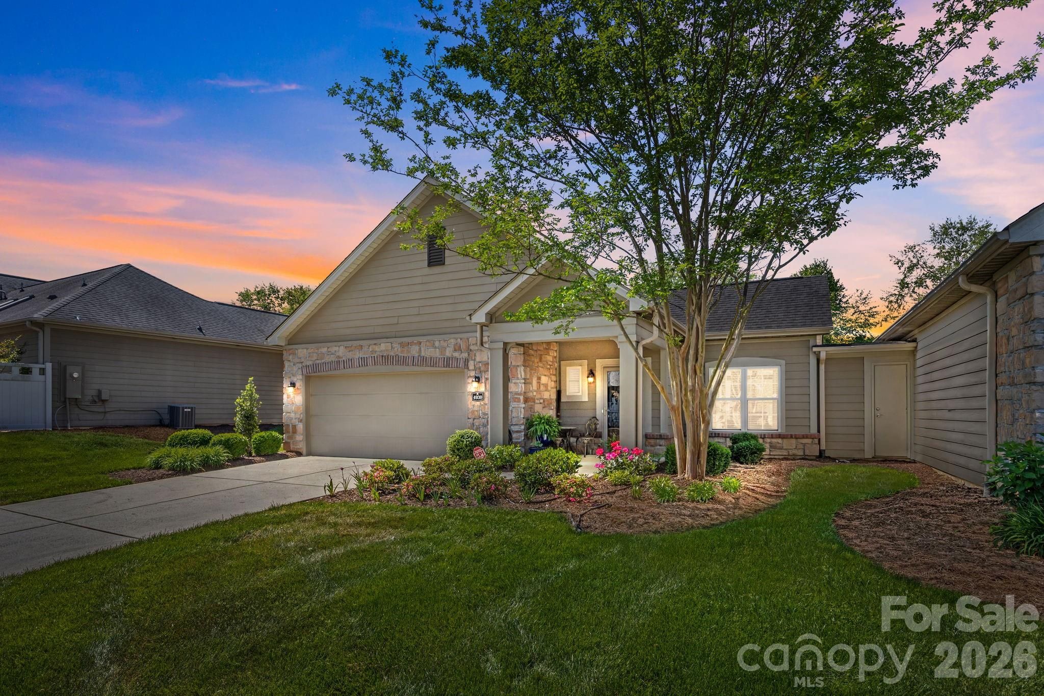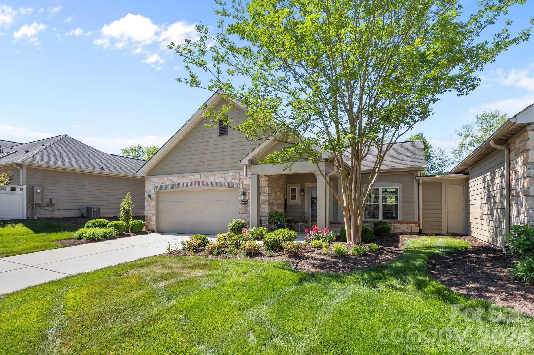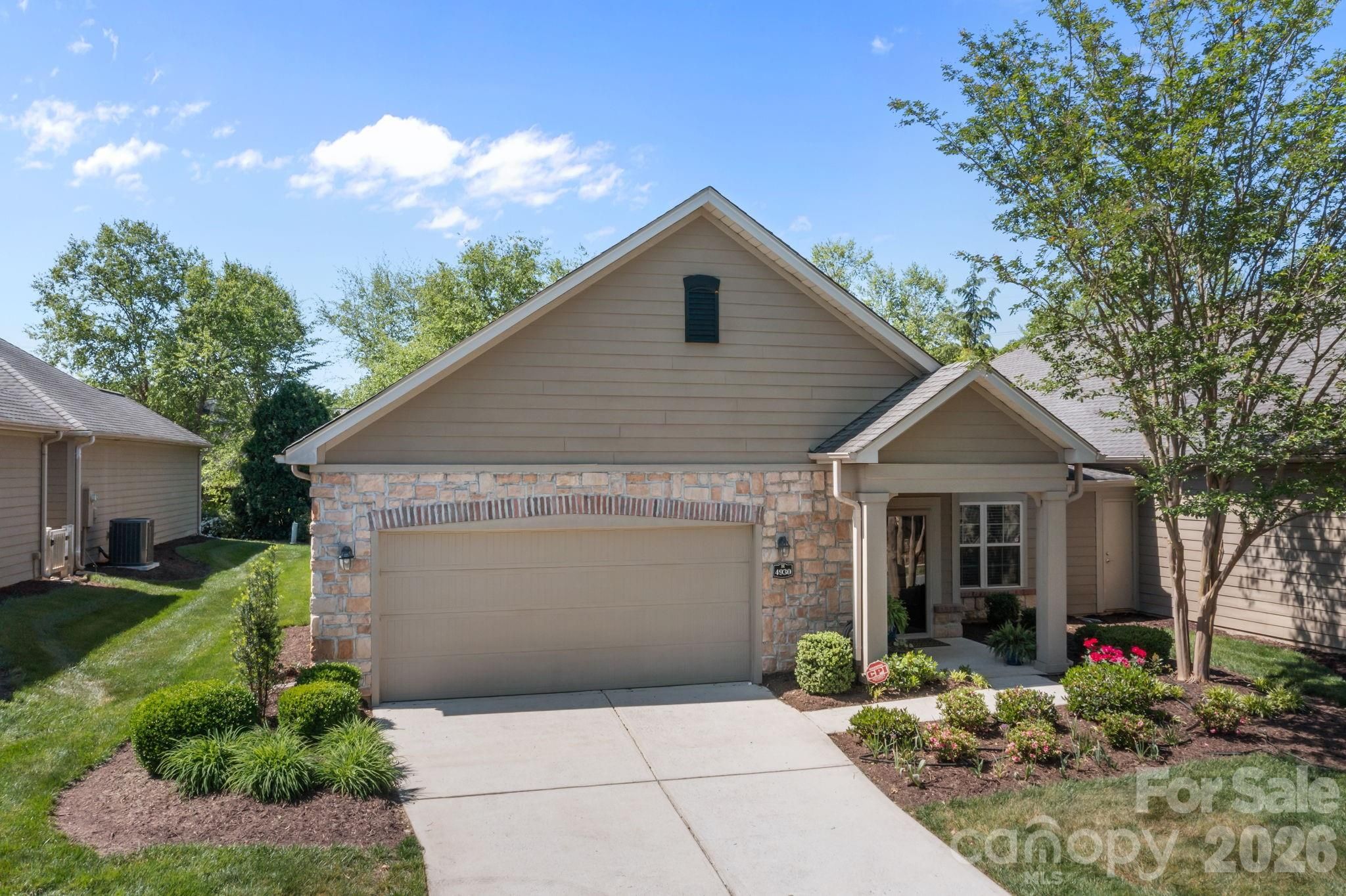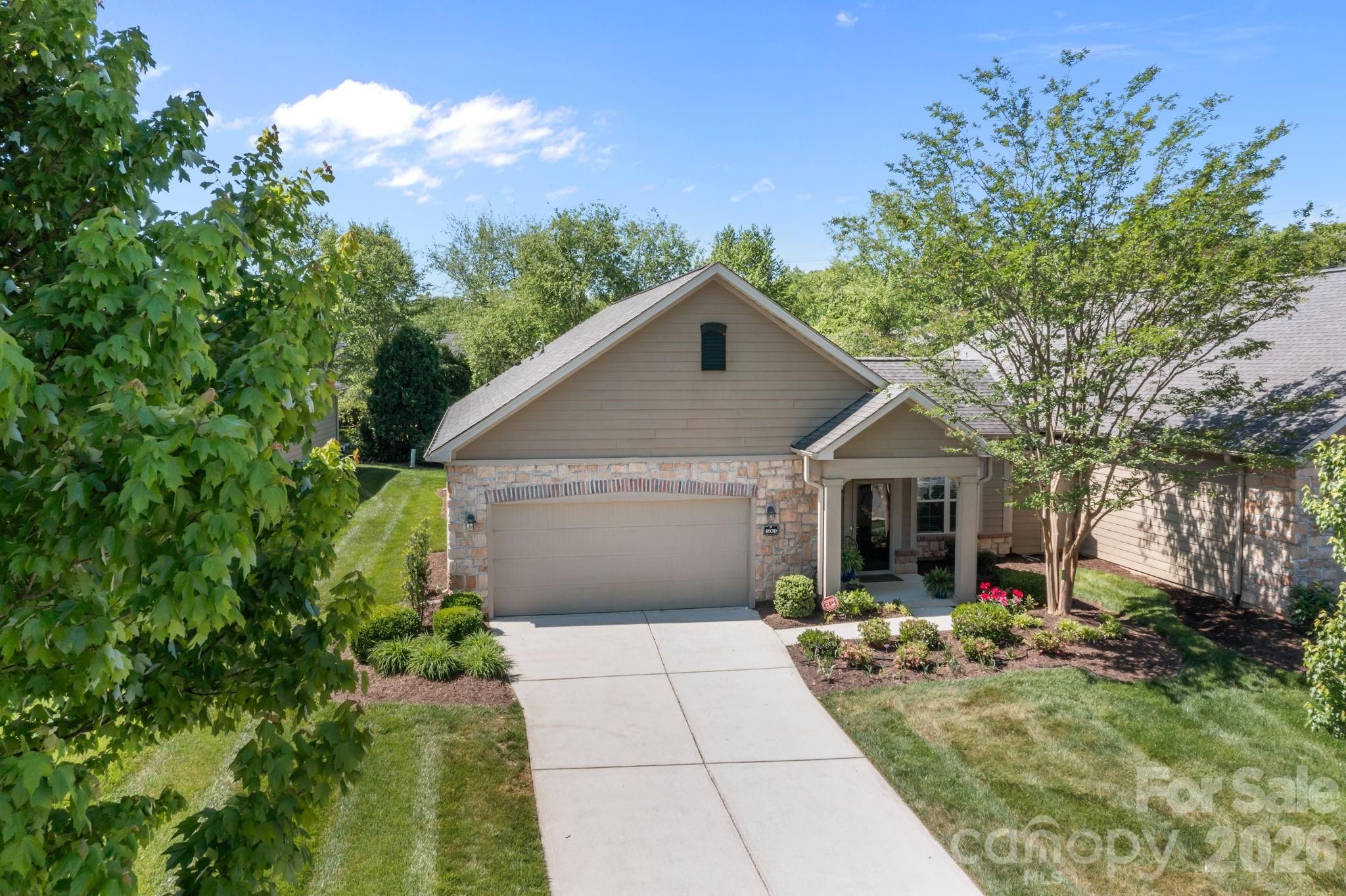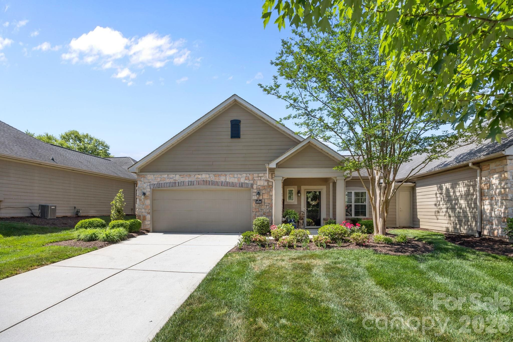 Welcome to the sought-after Polo Club at Mountain Island Lake, a gated 55+ community offering effortless, low-maintenance living just minutes from I-485, shopping, dining, and Uptown Charlotte. This beautifully maintained end-unit 2BR/2BA home features one-level living and a light-filled, open floor plan designed for comfort and entertaining. Enjoy a private courtyard patio, perfect for relaxing or entertaining, with peaceful wooded views and added privacy from minimal shared walls. Inside, you’ll find new LVP flooring in the main living areas, new carpet in the bedrooms, and a spacious kitchen with granite countertops, island seating, and new stove/oven. The inviting living room showcases a gas fireplace with an open concept feel. The primary bedroom includes an en suite bath and walk-in closet. Additional upgrades include a new Heat Pump (2024) and new washer & dryer. A Two-car garage and ample storage complete the home. Community amenities include a charming clubhouse with a fireplace lounge, fitness room, sidewalks, and a beautiful outdoor pool.