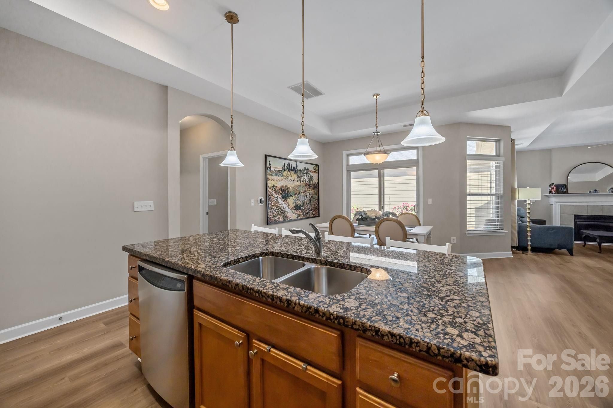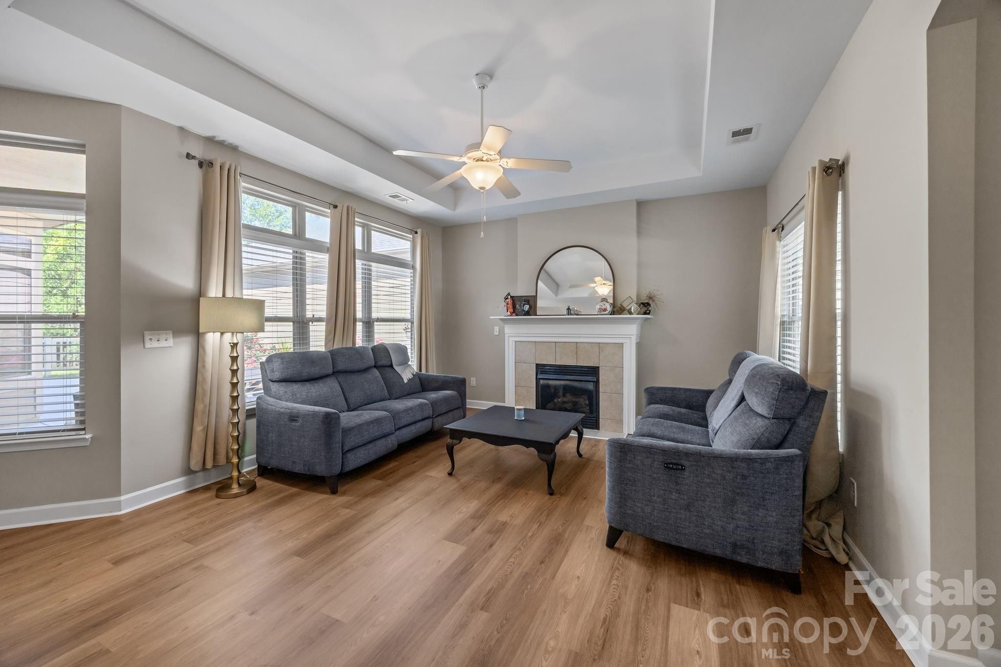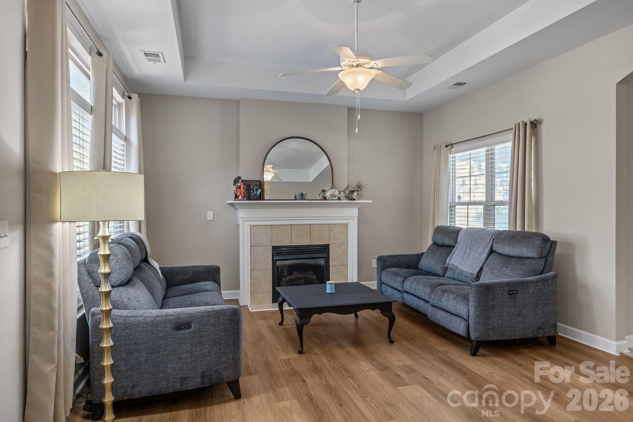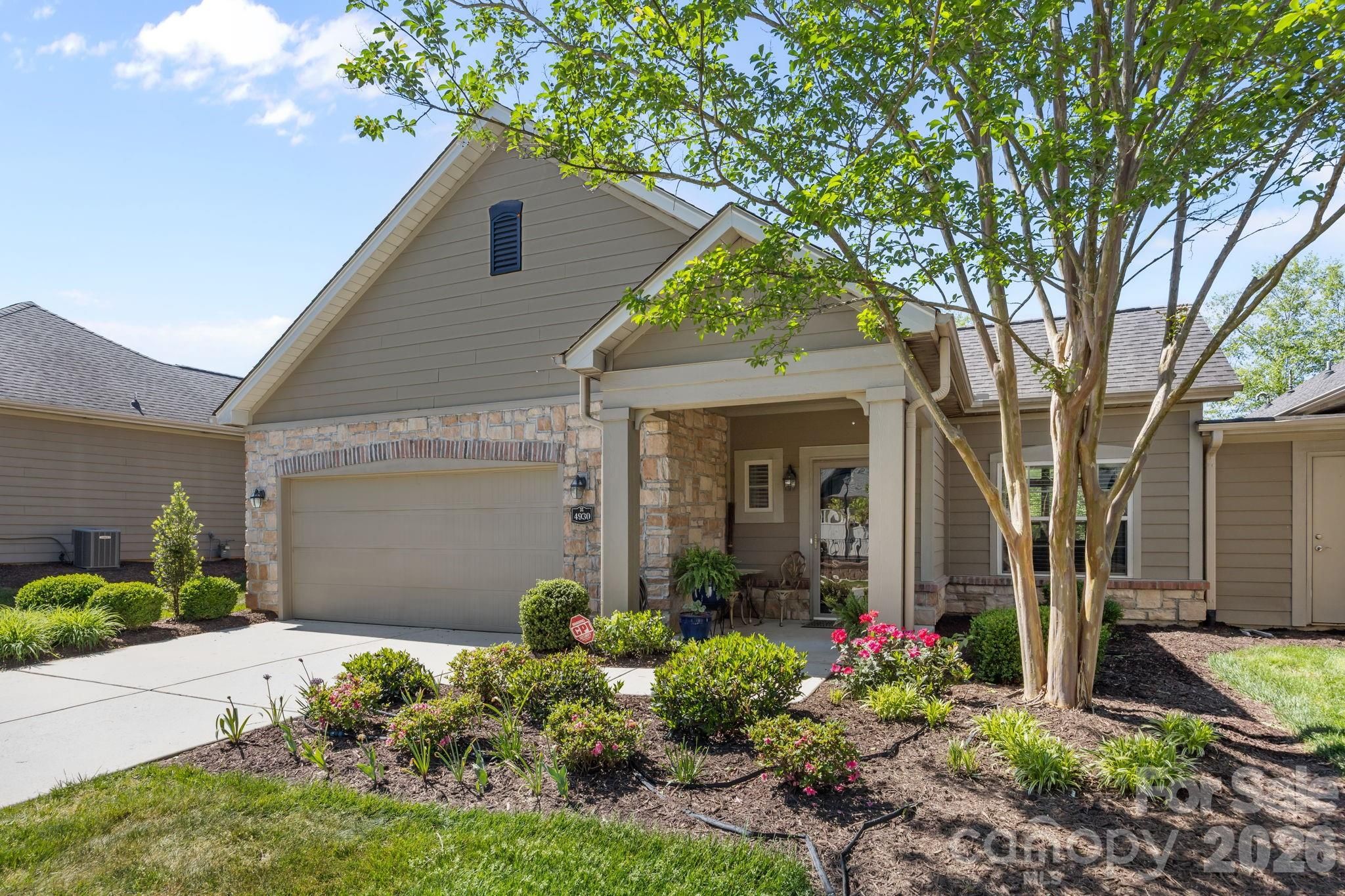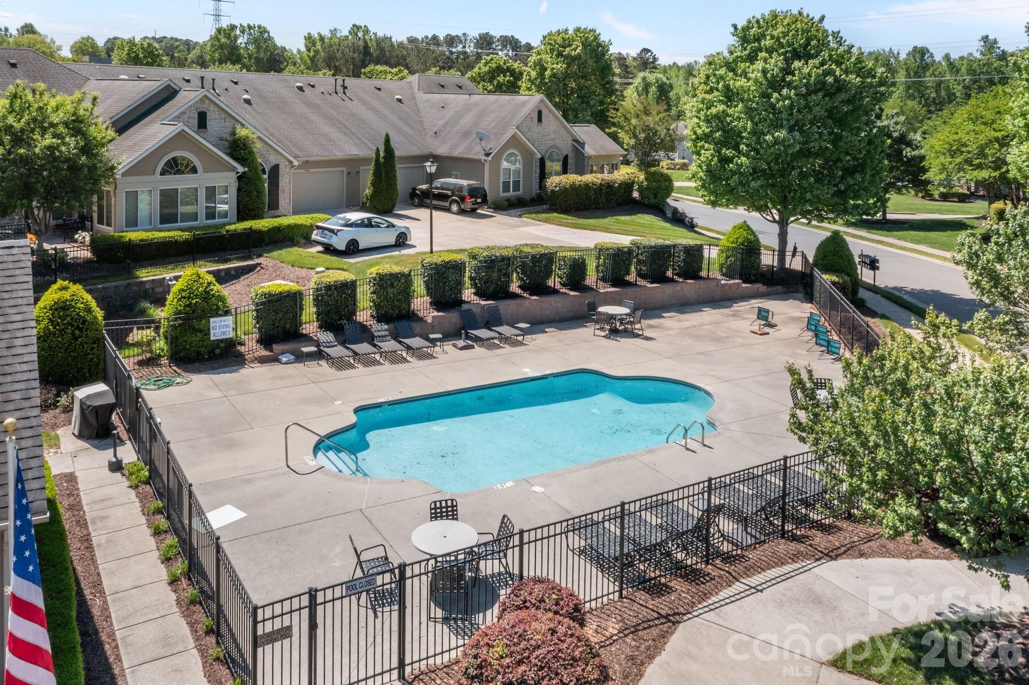 Welcome to the sought-after Polo Club at Mountain Island Lake, a gated 55+ community offering effortless, low-maintenance living just minutes from I-485, shopping, dining, and Uptown Charlotte. This beautifully maintained end-unit 2BR/2BA home features one-level living and a light-filled, open floor plan designed for comfort and entertaining. Enjoy a private courtyard patio, perfect for relaxing or entertaining, with peaceful wooded views and added privacy from minimal shared walls. Inside, you’ll find new LVP flooring in the main living areas, new carpet in the bedrooms, and a spacious kitchen with granite countertops, island seating, and new stove/oven. The inviting living room showcases a gas fireplace with an open concept feel. The primary bedroom includes an en suite bath and walk-in closet. Additional upgrades include a new Heat Pump (2024) and new washer & dryer. A Two-car garage and ample storage complete the home. Community amenities include a charming clubhouse with a fireplace lounge, fitness room, sidewalks, and a beautiful outdoor pool.