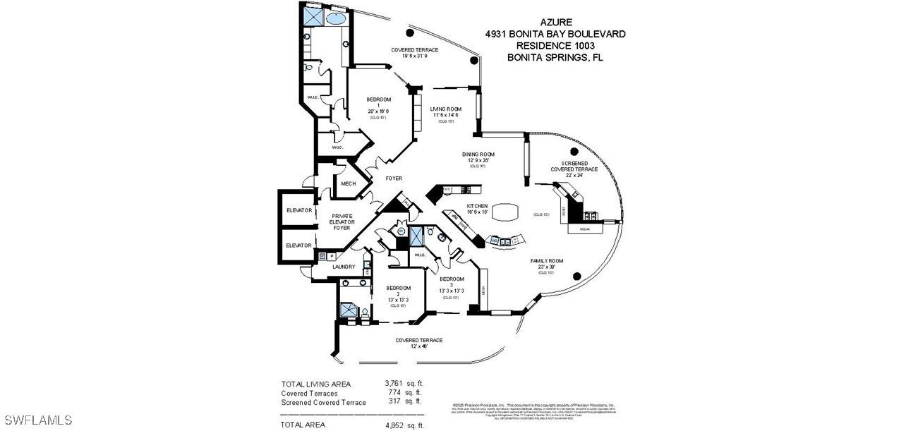 Azure is one of Bonita Bay's finest luxury high-rises situated on a premier site next to Estero Bay Park, one of Bonita Bay’s 4 community parks. This corner high rise residence, with private elevator entry, has three ensuite bathrooms and A PRIVATE ENCLOSED TWO CAR GARAGE. 270-degree floor to ceiling windows, and 10 ft ceilings with floor-to-ceiling windows, provide a light filled living space coupled with panoramic views over the Gulf of Mexico, Estero Bay, and lush green Bonita Bay golf courses. A west facing screened terrace with gas grill creates an ideal place to entertain friends and enjoy the ever-changing dazzling Florida sunsets. Extensive refurbishments in 2022 to the kitchen (with gas stove top), all bathrooms, dry bar, 2 wine coolers, all coordinated by the owner, has modernized this spacious floorplan. Azure offers updated communal areas, live-in manager, two guest suites, theater, fitness center with massage & steam room, club & card rooms, saltwater pool & spa, two fire pits and a covered screened social area with outside grilling. Enjoy sunsets over the Gulf of Mexico on the roof top terrace with TV, bar & grill. Bonita Bay has 3 golf courses onsite and 2 additional golf courses and clubhouse off site, 15 tennis courts, 18,000 sf. fitness center, 8,000 sf. Lifestyle spa and salon, full-service marina with dry and wet slips, Gulf front beach park, 5 restaurants, 15 pickle ball courts, crochet, bocce ball, canoeing, “Life Enrichment Center”, 10+ miles of walking and biking trails and 3 parks. Closing shall not occur prior to 2/25/26.