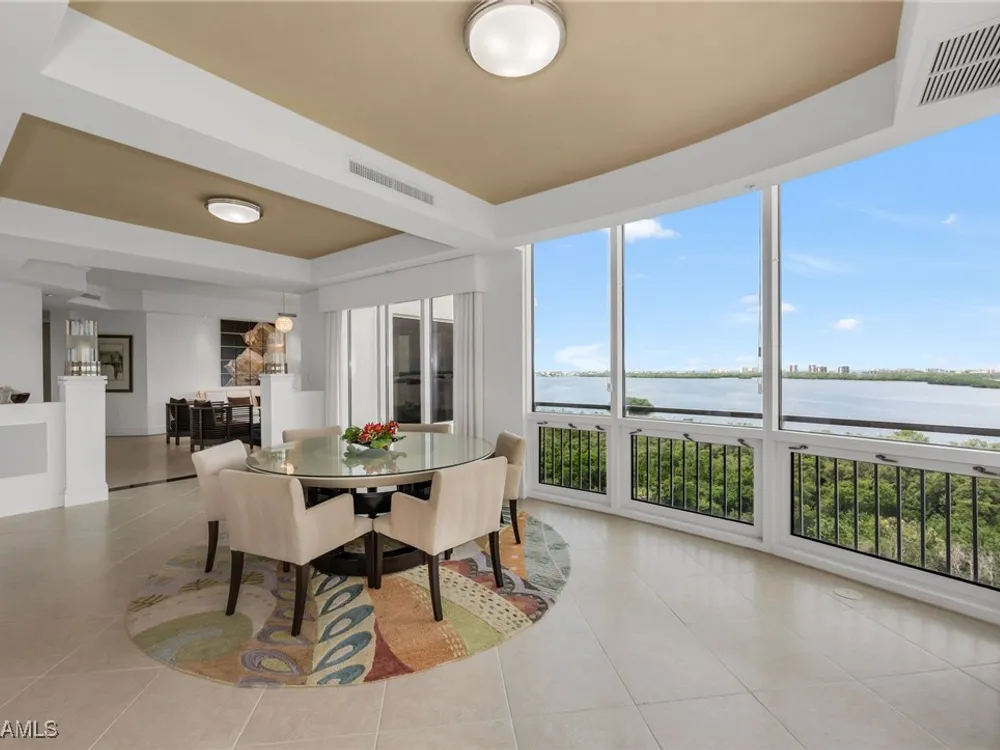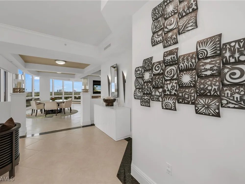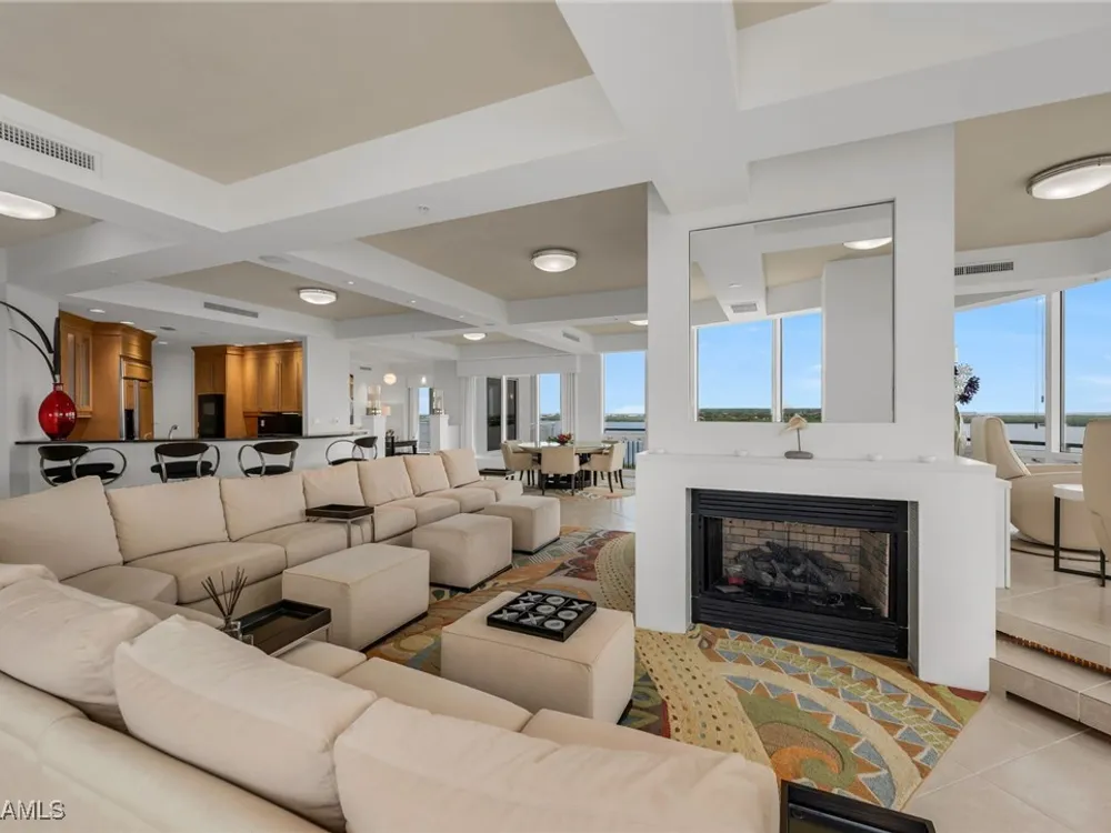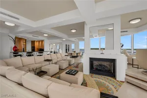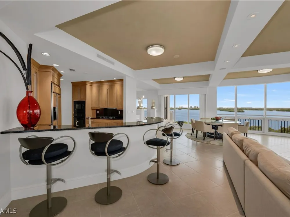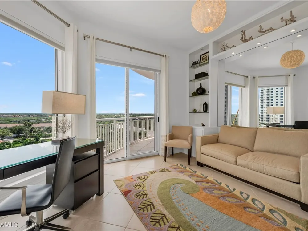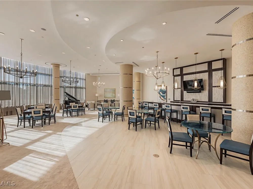 Azure is one of Bonita Bay's finest luxury high-rises situated on a premier site next to Estero Bay Park. This corner residence with 3 ensuite bathrooms, with 2 built-out walk in closets, plus den and has a beautifully appointed private elevator entry foyer. 270-degree floor to ceiling windows provide views of sunrise and sunsets over the gulf, bay, lake, and golf courses. This spacious floor plan with 10’ ceilings and chef's kitchen with gas stove top, makes entertaining friends and family a pleasure. Superb finishes typical of this price range were selected and coordinated by the owner. PRIVATE ENCLOSED TWO CAR GARAGE. Azure offers updated communal areas, live-in manager, 2 guest suites, fitness & massage room, club & card room. saltwater pool, spa, two fire pits, covered screened social area with outside grilling. Bonita Bay has 5 golf courses, 18 court tennis, 18,000 sf. fitness, 8,000 sf. Lifestyle spa & salon, full-service marina, Gulf front beach park, 5 restaurants, 10 pickle ball courts, crochet, bocce ball, canoeing, Life Enrichment Center & 3 parks.