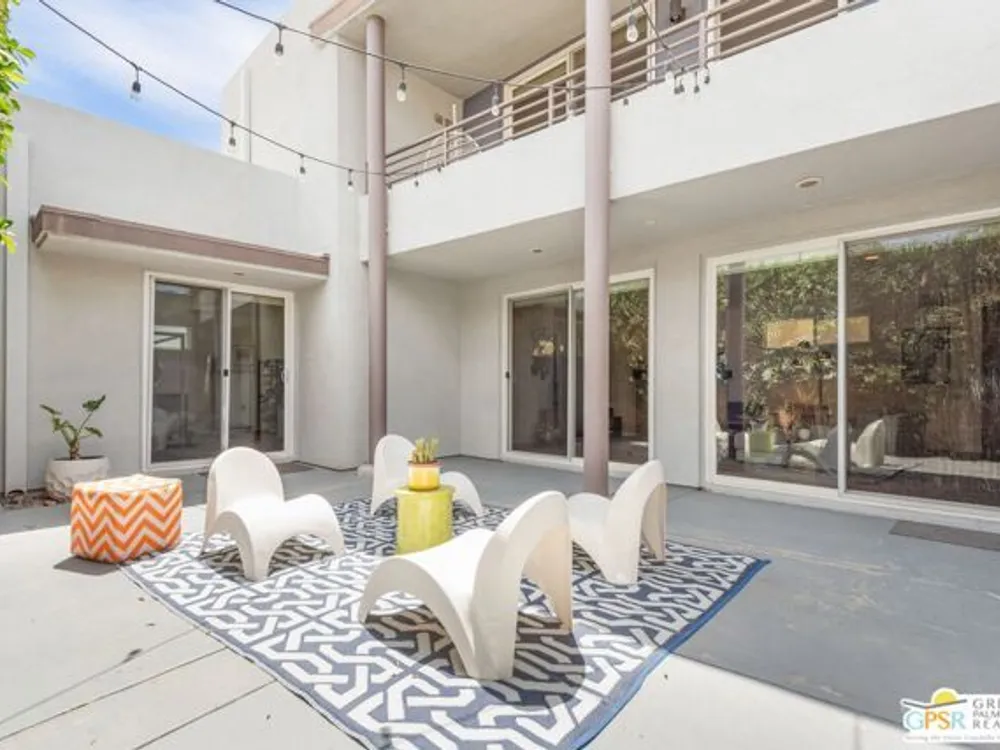 Welcome to Escena! A Nicklaus designed 18 hole golf course community. The Clubhouse includes a golf shop, lounge and Grill which has a dog friendly patio. The CV link winds around the community for jogging ,biking and hiking. The home is located close to the clubhouse. Generous in size, this beautiful 2965 sq ft home has 2 bedrooms and 3 baths. High ceilings, an open floorplan and glass doors open to the courtyard from the dining room ,kitchen, living room and main floor primary bedroom. There is plenty of natural light throughout the home. The private courtyard with a wall of greenery is the perfect place to entertain. The Open & Airy home has a nice flow throughout. The Kitchen is well appointed with quartz countertops. It is open to the Living room which makes entertaining easy. The Bar is behind the kitchen. There is a vibrant powder room that is easily accessible for guests. The main floor primary bedroom has an en suite that includes a shower, WC, bathtub and two walk-in closets. The second level includes a bedroom, bathroom, family room, laundry room and storage room. In the family room there is an alcove that would be perfect for an office. There are 2 sliding glass door that open up to the balcony. Beautiful Mountain views from the balcony. In the back of the house there is a small backyard that is a blank slate. Ready for your personal touch.