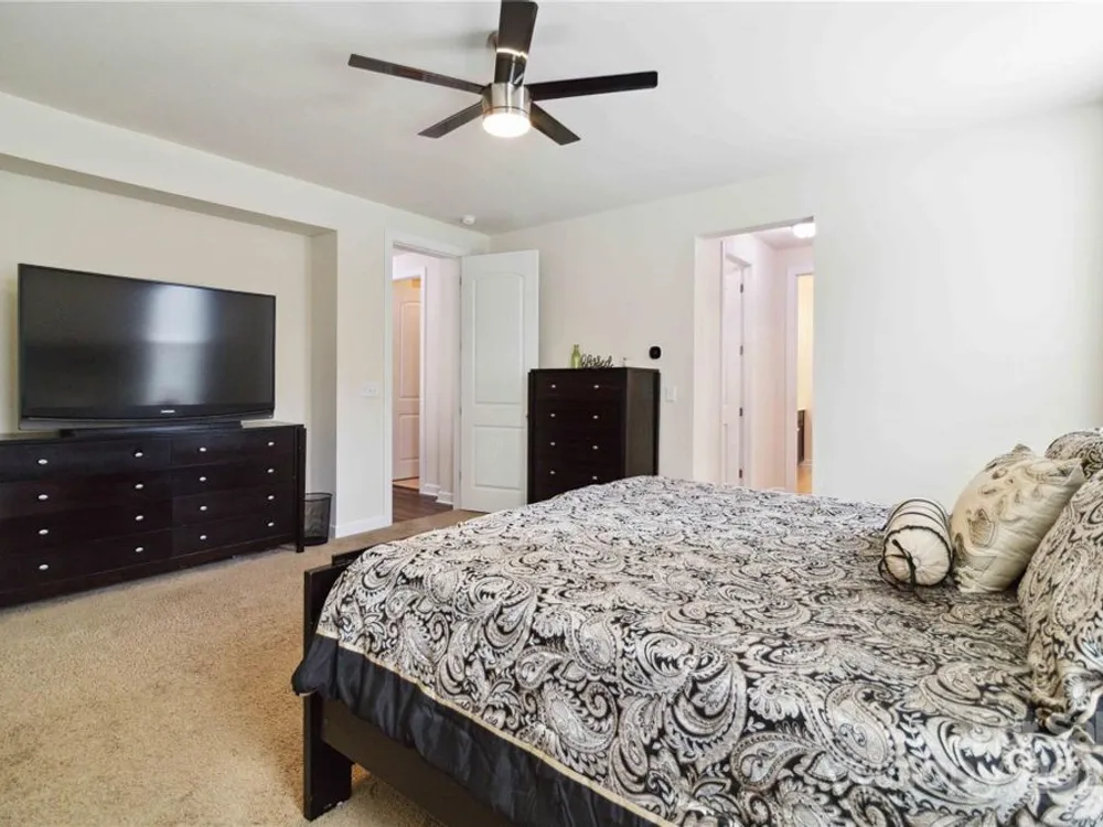 Welcome home to the beautiful community of Lake Crest. This home features a gourmet kitchen with a large island, granite countertops, tile backsplash, cooktop, and plenty of space for family gatherings while cooking and entertaining. There is a gas log fireplace and hardwood floors in the main living area. The first floor offers a guest bedroom with a private full bathroom, a formal living room, and a dining room. Additionally, there is a mudroom. Tall ceilings throughout. The second floor includes a bonus room and four bedrooms. The primary suite is spacious, featuring three walk-in closets and a large bathroom with a walk-in shower.