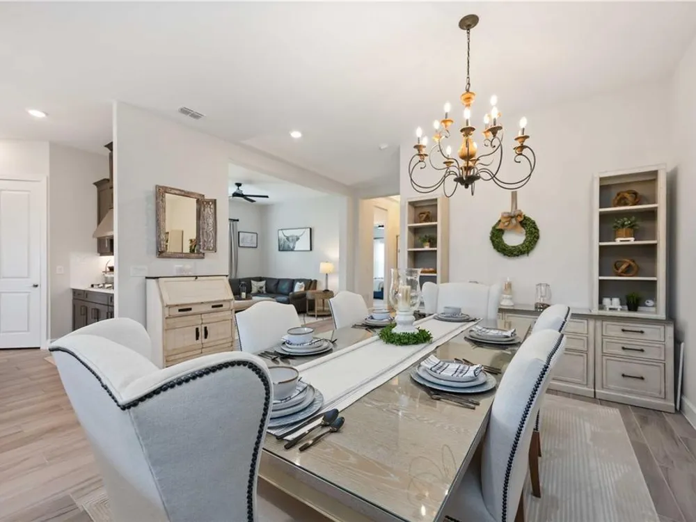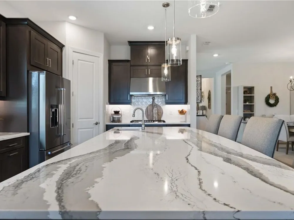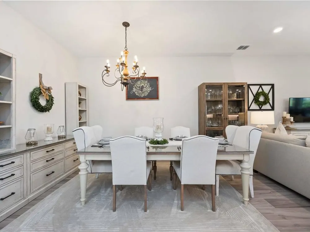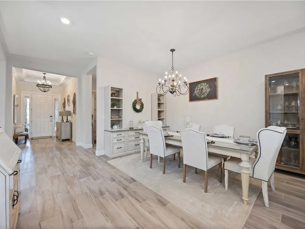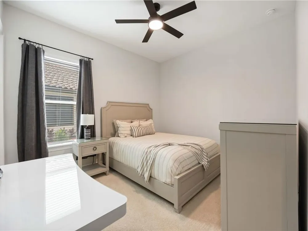 - Ceiling Fan(s), Crown Molding, Dry Bar, Eat-in Kitchen, High Ceilings, In-Wall Pest Control, Kitchen/Family Room Combo, Open Floorplan, Main Level Primary, Solid Surface Counters, Walk-In Closet(s), Window Treatments