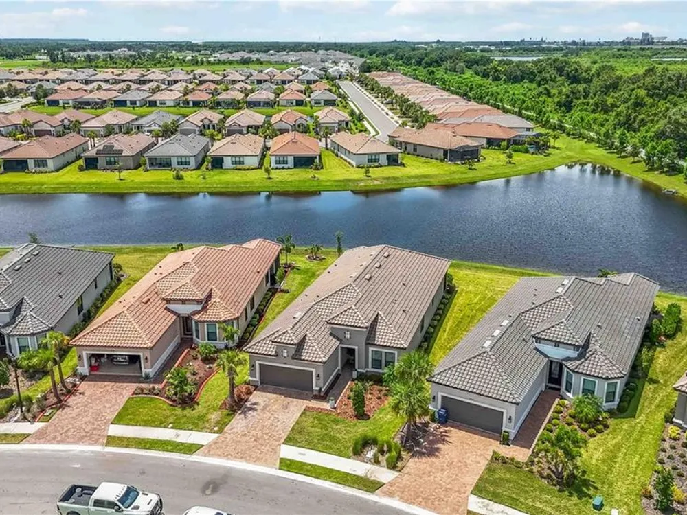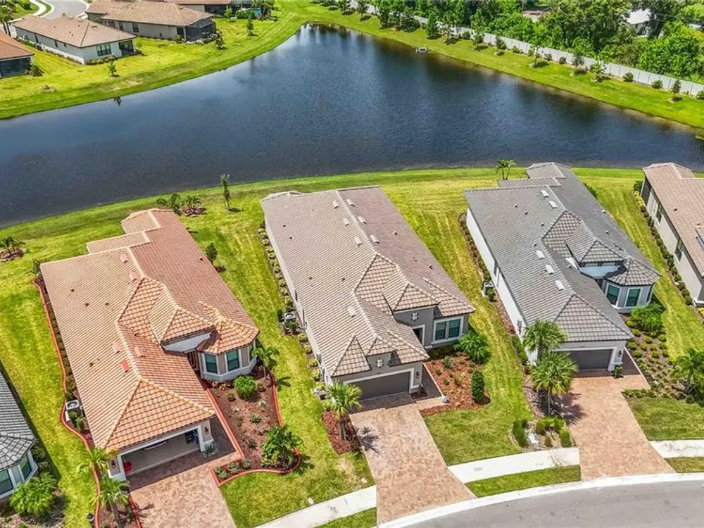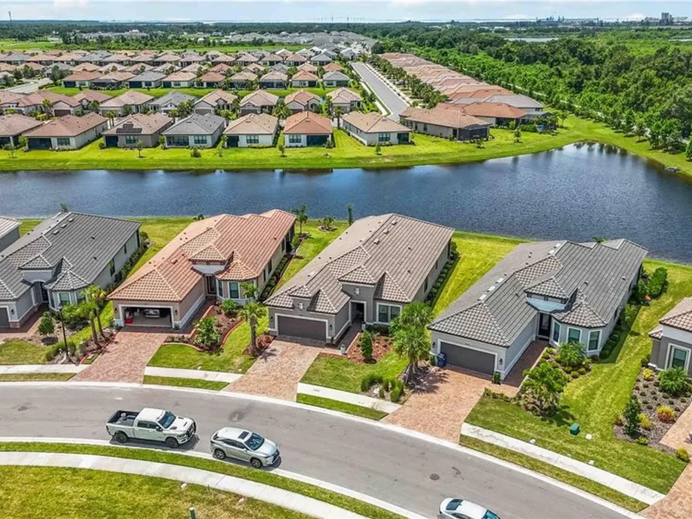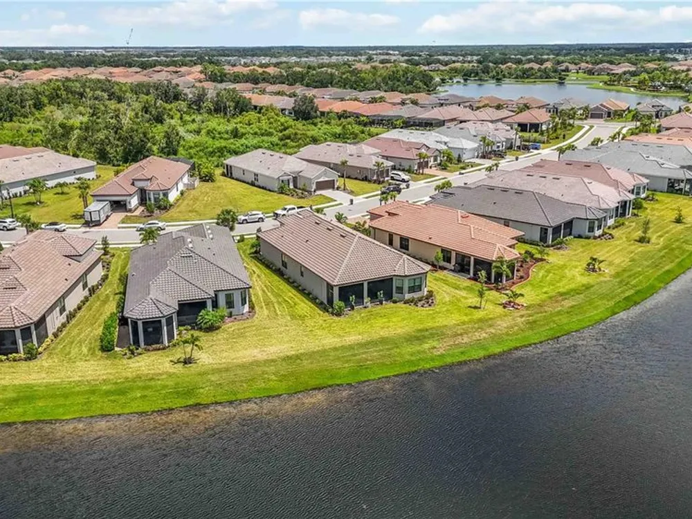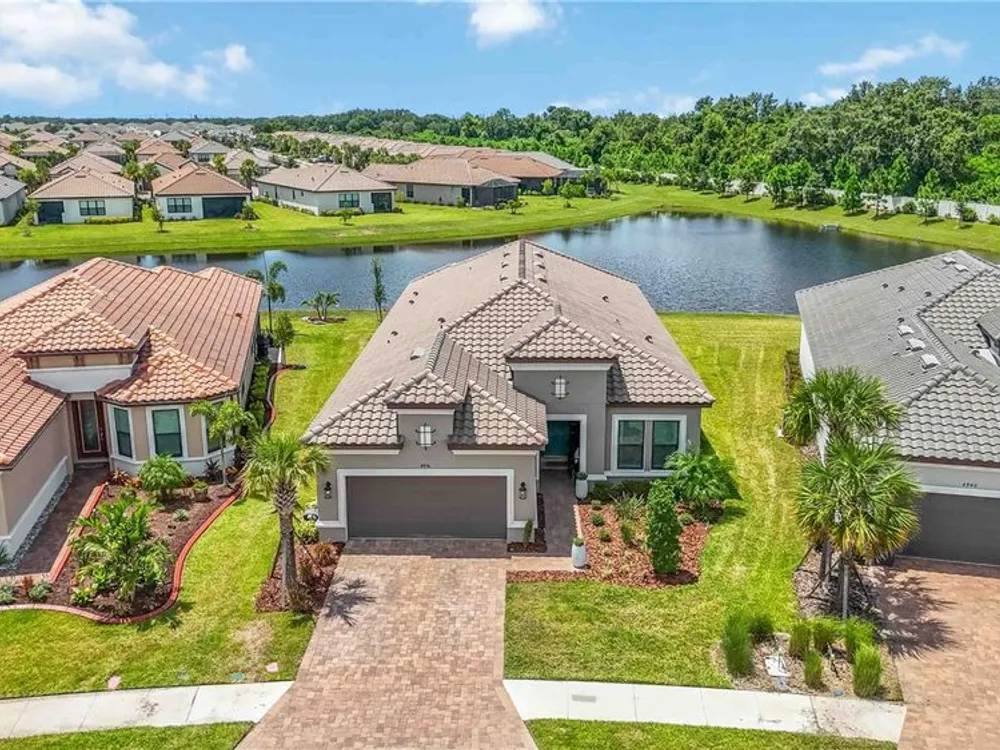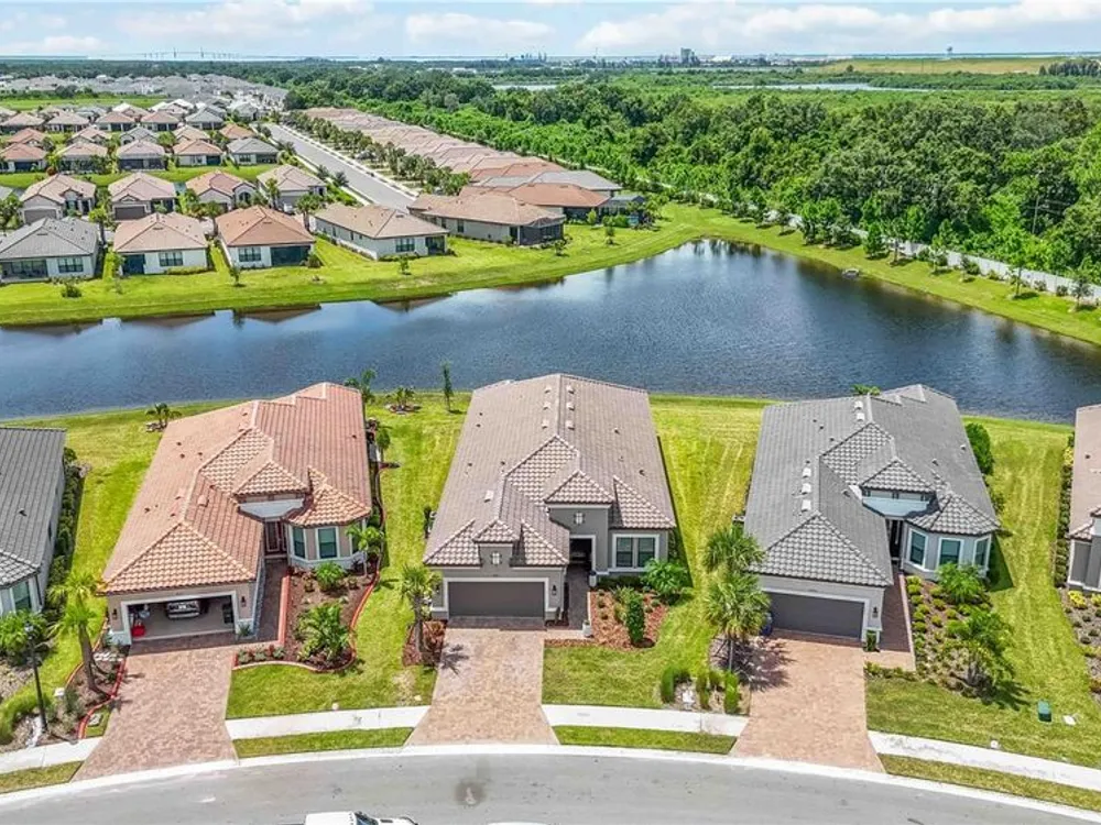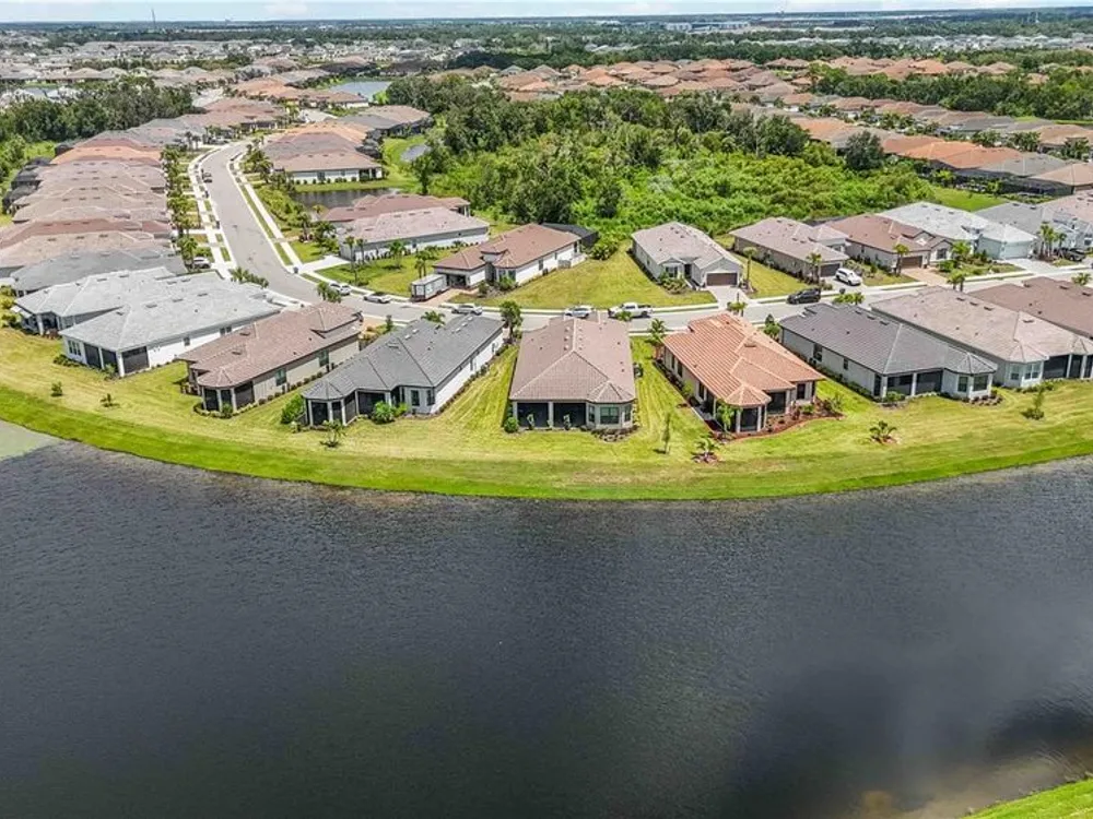 Welcome to Your Dream Lakeview Retreat Located at 4936 Caserta Court in the prestigious Artisan Lakes Esplanade—a resort-style, maintenance-free gated community in Palmetto, FL—this nearly new 1 year old Lazio model offers the ultimate in luxury living. Nestled on a premium lakefront lot, this residence showcases breathtaking sunset views and is close to the brand-new amenity center and resort pool. Outdoor Living at Its Finest, The extended screened lanai is an entertainer’s dream, complete with an outdoor kitchen hookup and panoramic views of the serene lake. The expansive lot also provides ample space for a future custom pool and spa, with a pie shaped lot that is 75 feet wide in the back. Elegant Interior Features, Step inside to a bright, open-concept floor plan with soaring 10' ceilings, elegant tray details, and 8' doors throughout. Highlights include: 3 Bedrooms + Den/Office, 3 Full Bathrooms. Luxury wood-look plank tile flooring Two sets of sliding glass doors for abundant natural light. Chef’s Gourmet Kitchen, Designed for the culinary enthusiast with Café stainless steel appliances, 42” upper cabinets, extended island cabinetry, Cambria Quartz countertops, a farmhouse sink + island prep sink, and a gas cooktop for precision cooking. Serene Primary Suite, Retreat to your primary bedroom featuring upgraded bay windows with sweeping lake views. The spa-inspired bathroom offers a seamless glass walk-in shower, dual vanities, and a large walk-in closet for optimal storage. Tandem 3-Car Garage, Perfect for a golf cart, extra vehicle, or additional storage, plus a spacious laundry room with utility sink adds everyday convenience. Hurricane Shutters Included. Live the Esplanade Lifestyle From lush landscaping and scenic lakes to high-end amenities and a vibrant social calendar, Artisan Lakes Esplanade offers a lifestyle like no other—designed for those who appreciate elegance, comfort, and convenience. With easy access to I-75, you're just a short drive from the Gulf of Mexico beaches, shopping, dining, and Tampa, St. Petersburg, Bradenton, and Sarasota. Experience the perfect blend of luxury and location in this pet-friendly oasis. Living in the HOA maintained community, Artisan Lakes at Esplanade means indulging in an array of amenities, including a state-of-the-art fitness center, tennis courts, pickleball courts, bocce ball, a resort-style pool with cabanas, a hot tub, and a resistance pool. Nature lovers will appreciate the walking trails, dog parks, playground, and butterfly garden. The HOA provides cable TV, internet service, and yard maintenance, ensuring a convenient and enjoyable living experience. No evacuation zone, No flood insurance required, 40 feet elevation. 2 large pools, lap swim lanes, spa, resistance pool, pickleball, tennis, bocce, shuffleboard, full fitness enter, lots of classes, clubs and events for all interests. Enjoy the best of Florida living and schedule your showing today to make this exquisite home yours. Don't miss out on the chance to immerse yourself in the resort-style living offered by the at Artisan Lakes of Esplanade