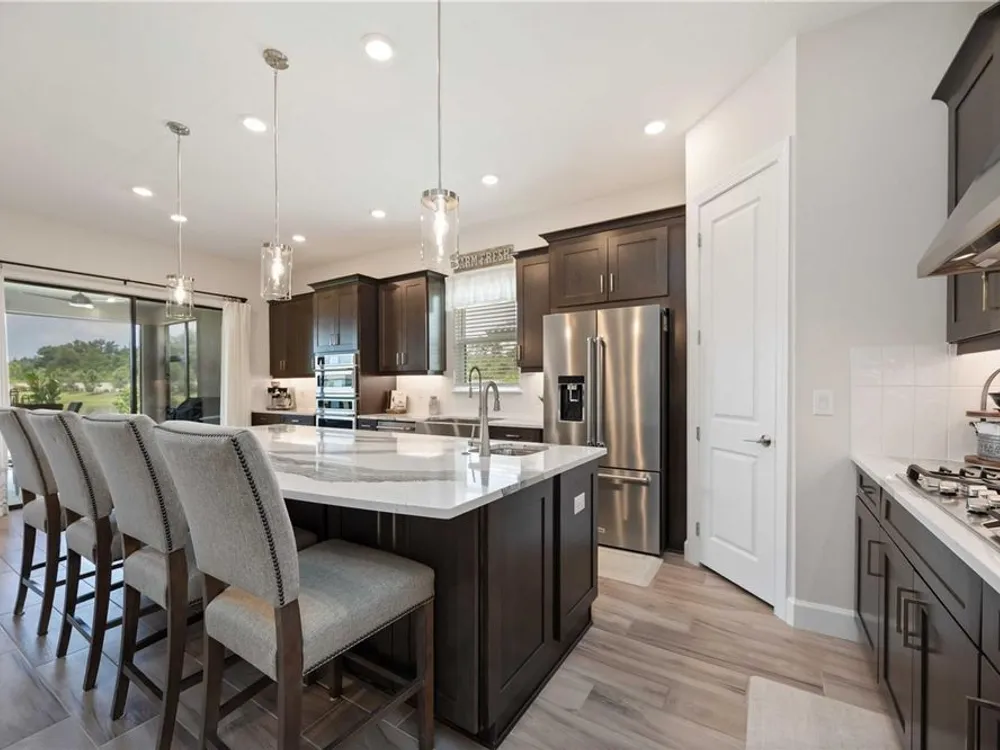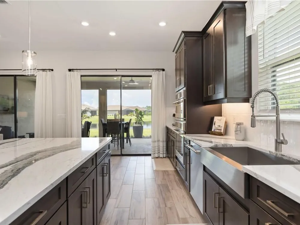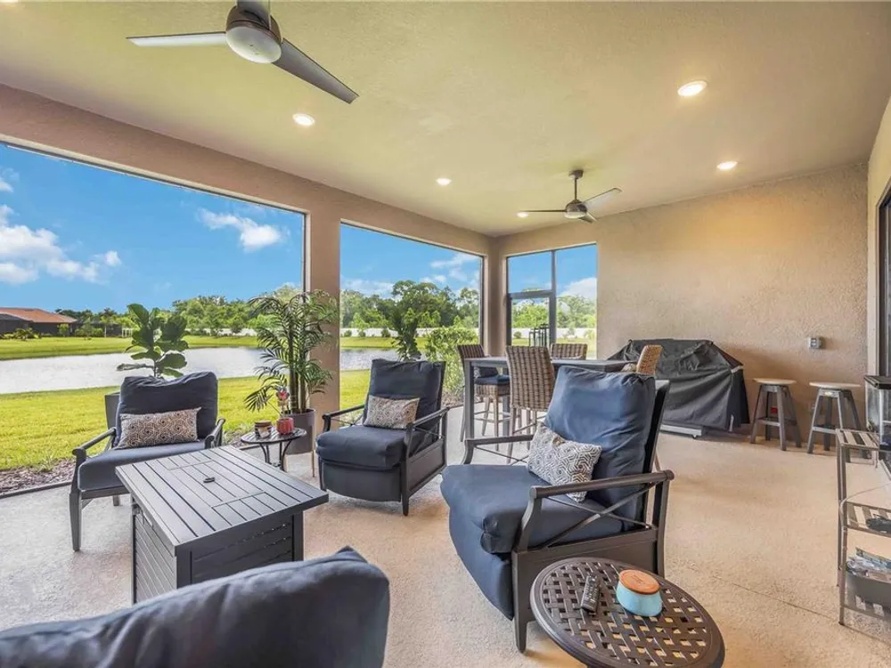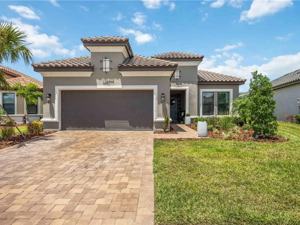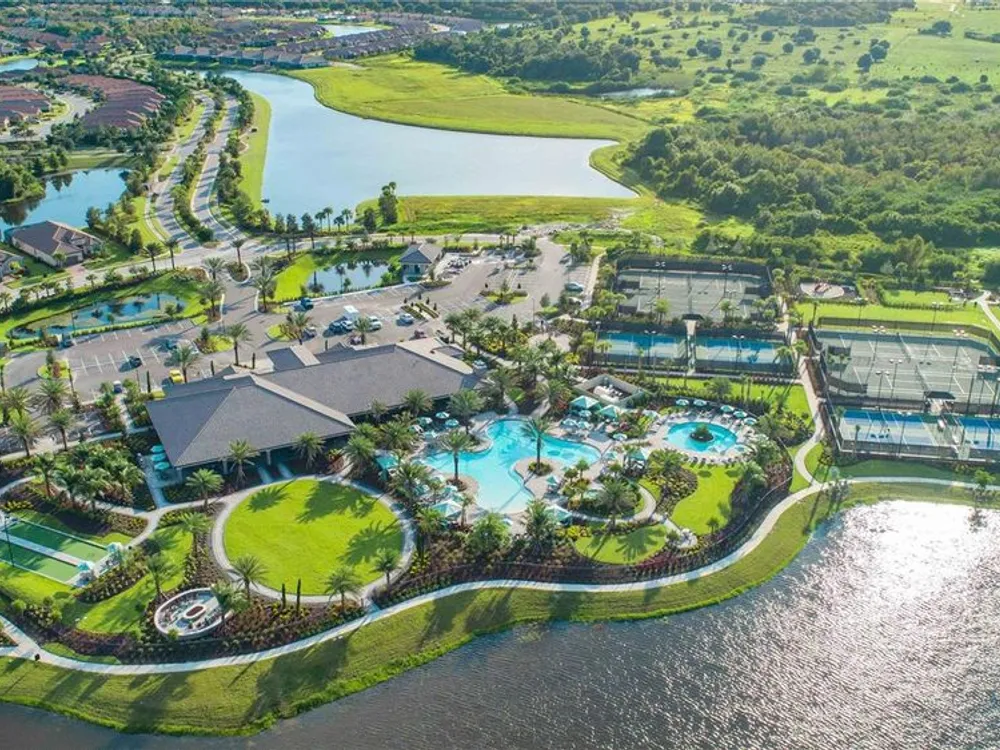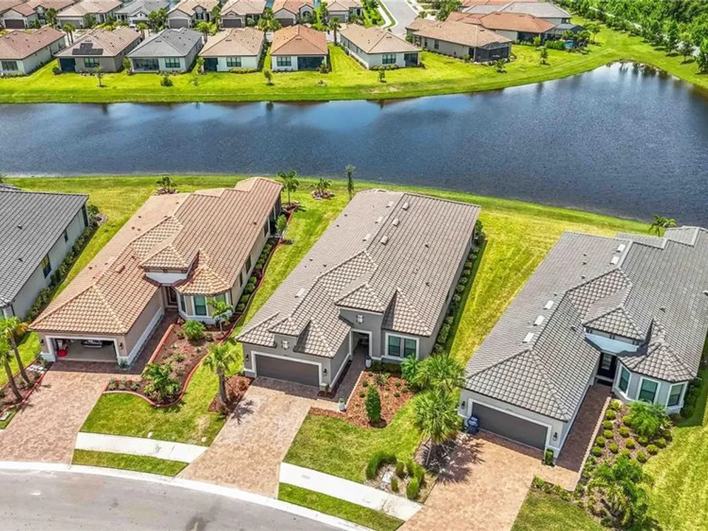 Welcome to Your Dream Lakeview Retreat Located at 4936 Caserta Court in the prestigious Artisan Lakes Esplanade—a resort-style, maintenance-free gated community in Palmetto, FL—this nearly new 1 year old Lazio model offers the ultimate in luxury living. Nestled on a premium lakefront lot, this residence showcases breathtaking sunset views and is close to the brand-new amenity center and resort pool. Outdoor Living at Its Finest, The extended screened lanai is an entertainer’s dream, complete with an outdoor kitchen hookup and panoramic views of the serene lake. The expansive lot also provides ample space for a future custom pool and spa, with a pie shaped lot that is 75 feet wide in the back. Elegant Interior Features, Step inside to a bright, open-concept floor plan with soaring 10' ceilings, elegant tray details, and 8' doors throughout. Highlights include: 3 Bedrooms + Den/Office, 3 Full Bathrooms. Luxury wood-look plank tile flooring Two sets of sliding glass doors for abundant natural light. Chef’s Gourmet Kitchen, Designed for the culinary enthusiast with Café stainless steel appliances, 42” upper cabinets, extended island cabinetry, Cambria Quartz countertops, a farmhouse sink + island prep sink, and a gas cooktop for precision cooking. Serene Primary Suite, Retreat to your primary bedroom featuring upgraded bay windows with sweeping lake views. The spa-inspired bathroom offers a seamless glass walk-in shower, dual vanities, and a large walk-in closet for optimal storage. Tandem 3-Car Garage, Perfect for a golf cart, extra vehicle, or additional storage, plus a spacious laundry room with utility sink adds everyday convenience. Hurricane Shutters Included. Live the Esplanade Lifestyle From lush landscaping and scenic lakes to high-end amenities and a vibrant social calendar, Artisan Lakes Esplanade offers a lifestyle like no other—designed for those who appreciate elegance, comfort, and convenience. With easy access to I-75, you're just a short drive from the Gulf of Mexico beaches, shopping, dining, and Tampa, St. Petersburg, Bradenton, and Sarasota. Experience the perfect blend of luxury and location in this pet-friendly oasis. Living in the HOA maintained community, Artisan Lakes at Esplanade means indulging in an array of amenities, including a state-of-the-art fitness center, tennis courts, pickleball courts, bocce ball, a resort-style pool with cabanas, a hot tub, and a resistance pool. Nature lovers will appreciate the walking trails, dog parks, playground, and butterfly garden. The HOA provides cable TV, internet service, and yard maintenance, ensuring a convenient and enjoyable living experience. No evacuation zone, No flood insurance required, 40 feet elevation. 2 large pools, lap swim lanes, spa, resistance pool, pickleball, tennis, bocce, shuffleboard, full fitness enter, lots of classes, clubs and events for all interests. Enjoy the best of Florida living and schedule your showing today to make this exquisite home yours. Don't miss out on the chance to immerse yourself in the resort-style living offered by the at Artisan Lakes of Esplanade