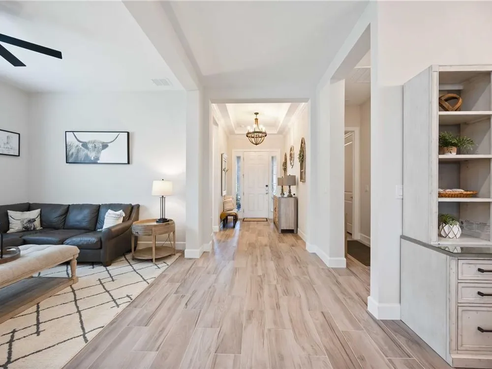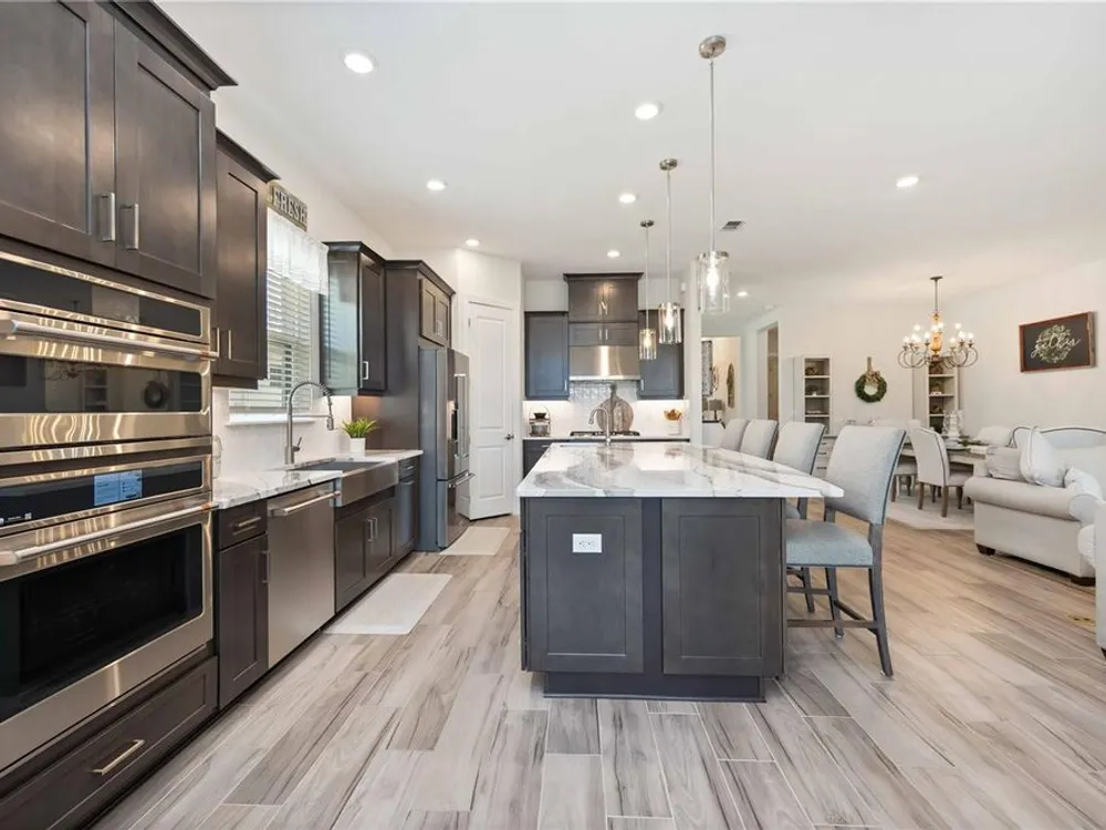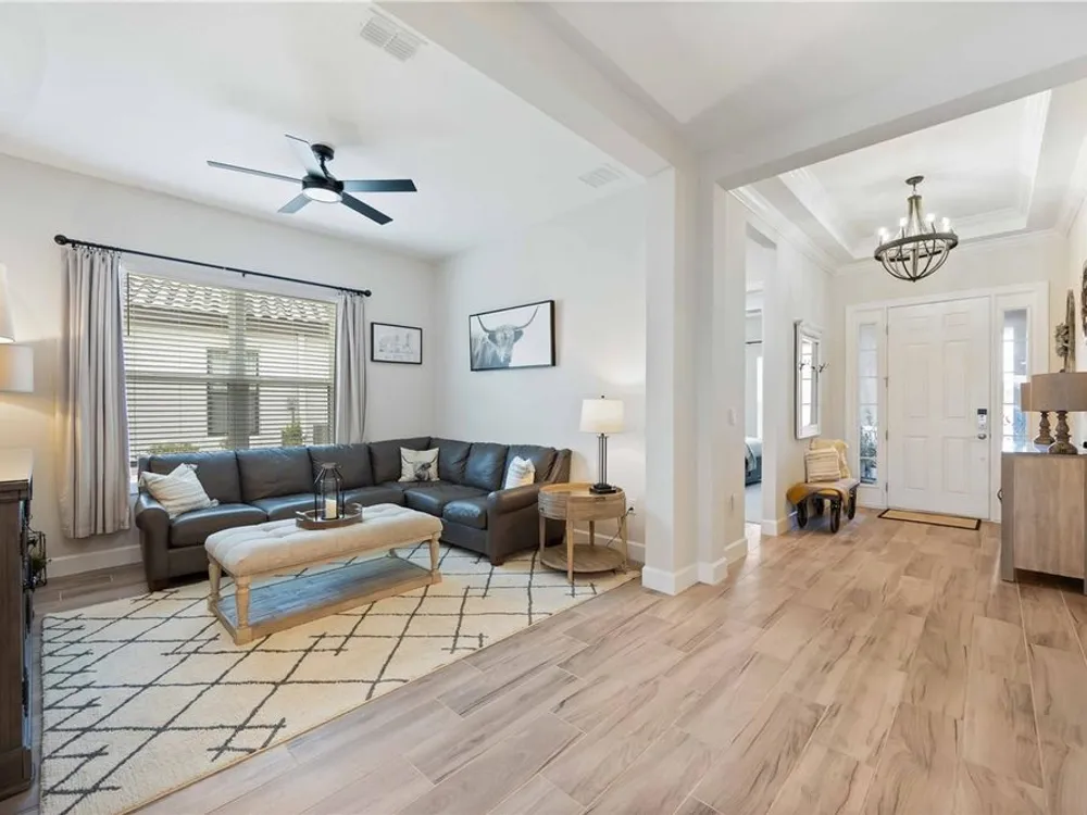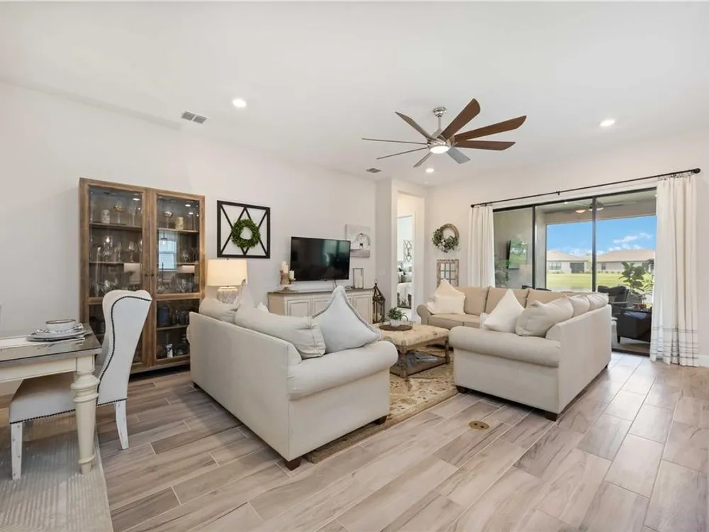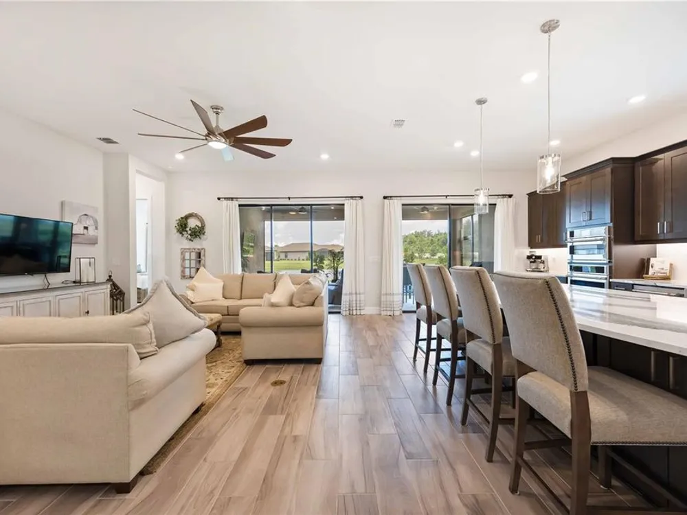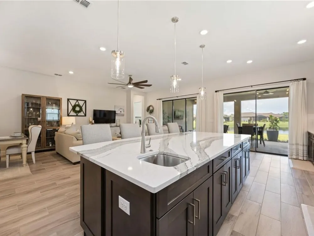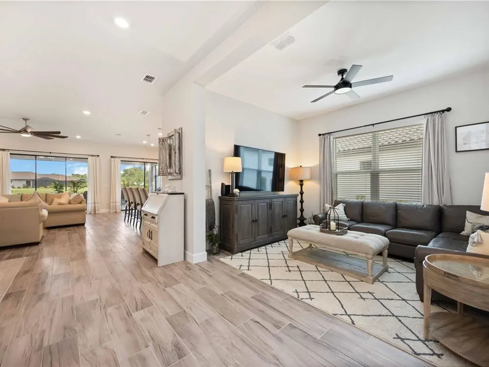 Welcome to Your Dream Lakeview Retreat Located at 4936 Caserta Court in the prestigious Artisan Lakes Esplanade—a resort-style, maintenance-free gated community in Palmetto, FL—this nearly new 1 year old Lazio model offers the ultimate in luxury living. Nestled on a premium lakefront lot, this residence showcases breathtaking sunset views and is close to the brand-new amenity center and resort pool. Outdoor Living at Its Finest, The extended screened lanai is an entertainer’s dream, complete with an outdoor kitchen hookup and panoramic views of the serene lake. The expansive lot also provides ample space for a future custom pool and spa, with a pie shaped lot that is 75 feet wide in the back. Elegant Interior Features, Step inside to a bright, open-concept floor plan with soaring 10' ceilings, elegant tray details, and 8' doors throughout. Highlights include: 3 Bedrooms + Den/Office, 3 Full Bathrooms. Luxury wood-look plank tile flooring Two sets of sliding glass doors for abundant natural light. Chef’s Gourmet Kitchen, Designed for the culinary enthusiast with Café stainless steel appliances, 42” upper cabinets, extended island cabinetry, Cambria Quartz countertops, a farmhouse sink + island prep sink, and a gas cooktop for precision cooking. Serene Primary Suite, Retreat to your primary bedroom featuring upgraded bay windows with sweeping lake views. The spa-inspired bathroom offers a seamless glass walk-in shower, dual vanities, and a large walk-in closet for optimal storage. Tandem 3-Car Garage, Perfect for a golf cart, extra vehicle, or additional storage, plus a spacious laundry room with utility sink adds everyday convenience. Hurricane Shutters Included. Live the Esplanade Lifestyle From lush landscaping and scenic lakes to high-end amenities and a vibrant social calendar, Artisan Lakes Esplanade offers a lifestyle like no other—designed for those who appreciate elegance, comfort, and convenience. With easy access to I-75, you're just a short drive from the Gulf of Mexico beaches, shopping, dining, and Tampa, St. Petersburg, Bradenton, and Sarasota. Experience the perfect blend of luxury and location in this pet-friendly oasis. Living in the HOA maintained community, Artisan Lakes at Esplanade means indulging in an array of amenities, including a state-of-the-art fitness center, tennis courts, pickleball courts, bocce ball, a resort-style pool with cabanas, a hot tub, and a resistance pool. Nature lovers will appreciate the walking trails, dog parks, playground, and butterfly garden. The HOA provides cable TV, internet service, and yard maintenance, ensuring a convenient and enjoyable living experience. No evacuation zone, No flood insurance required, 40 feet elevation. 2 large pools, lap swim lanes, spa, resistance pool, pickleball, tennis, bocce, shuffleboard, full fitness enter, lots of classes, clubs and events for all interests. Enjoy the best of Florida living and schedule your showing today to make this exquisite home yours. Don't miss out on the chance to immerse yourself in the resort-style living offered by the at Artisan Lakes of Esplanade