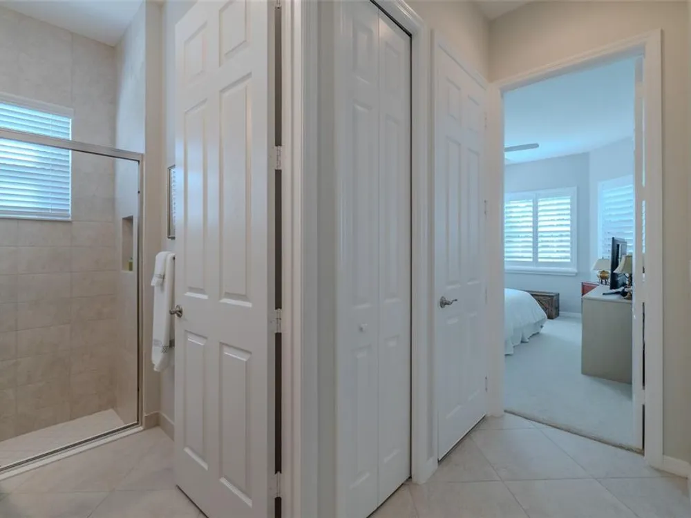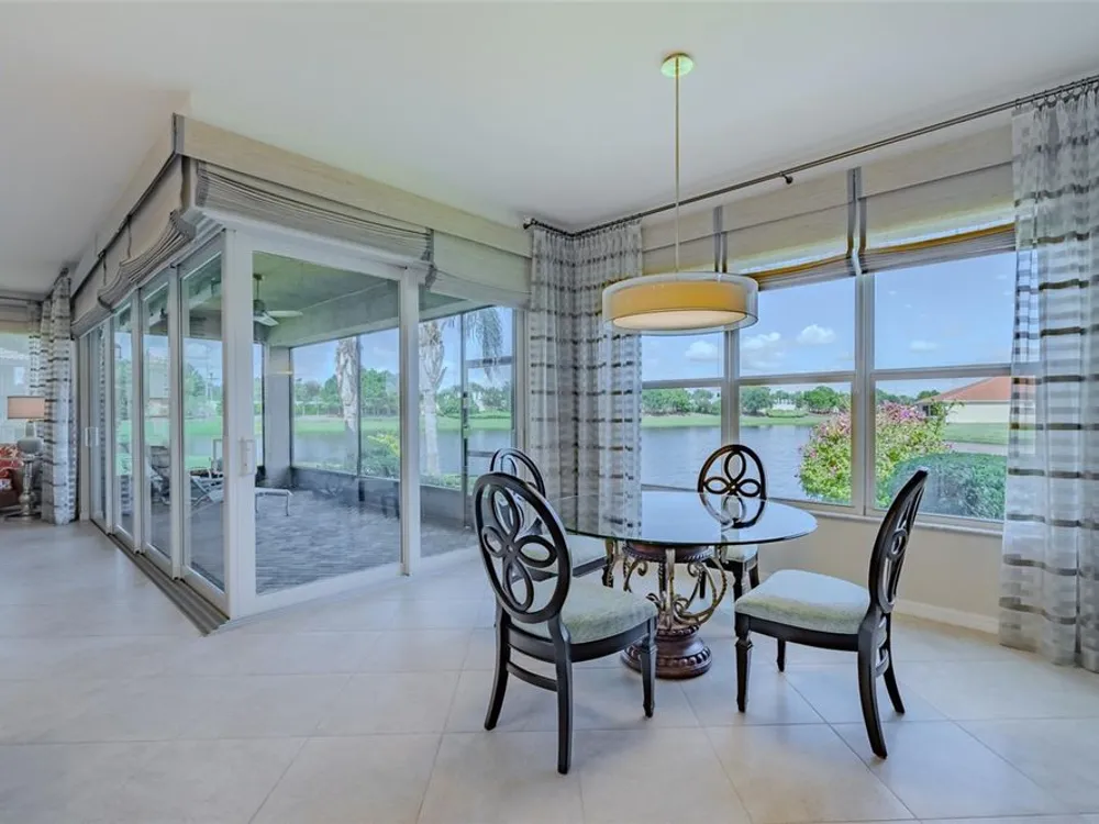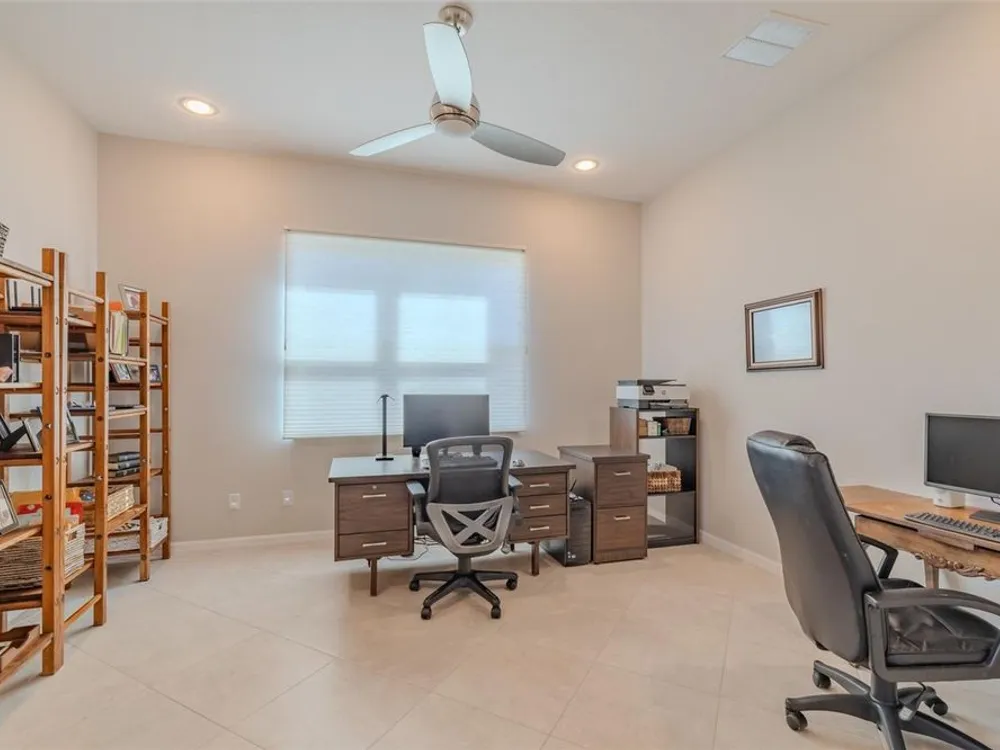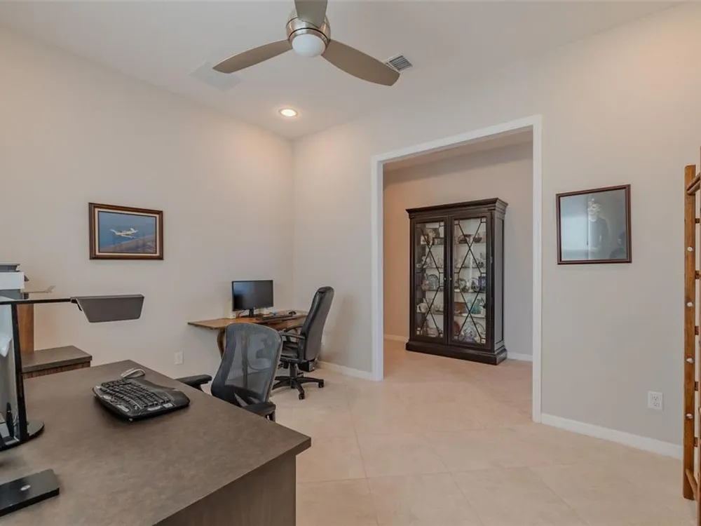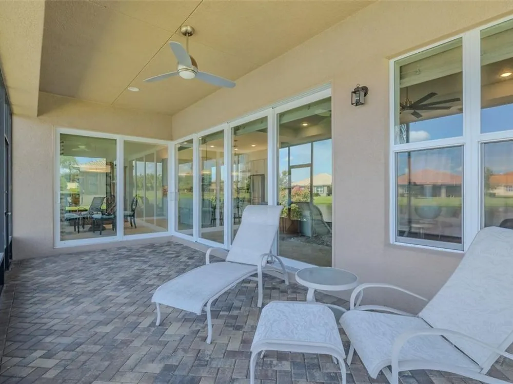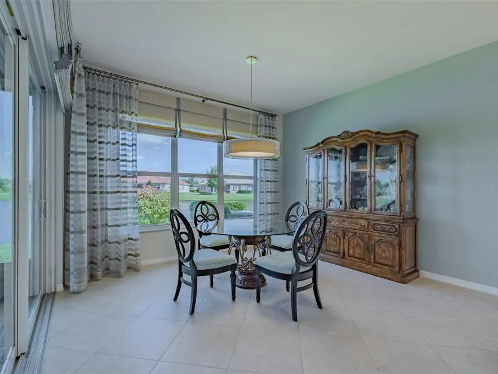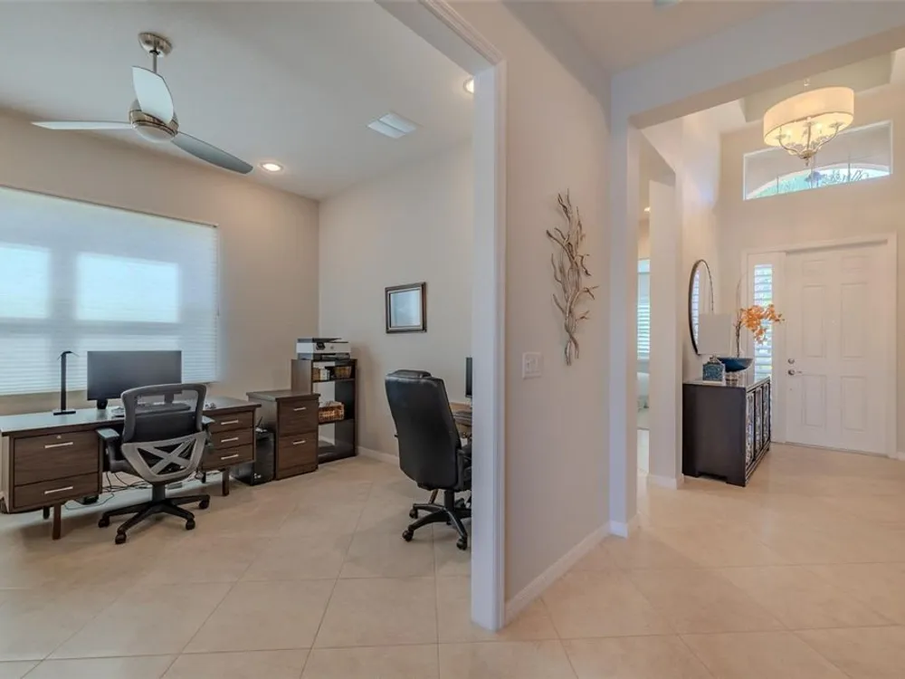 Sometimes, gemstones rise to the surface. This ARUBA model is just one of nine in all of Valencia Lakes, Tampa Bay’s premier 55+ Active Adult Community. This ARUBA has 2,362SF under air and sits on an exceptional lot with a gorgeous Northwest water-view providing exceptional sunset vistas. Hurricane resistant impact-glass windows throughout, including the 24’ wide, 8’ high zero-corner sliding glass doors bask this ARUBA in natural sunlight, improve HVAC and noise efficiencies and provide worry-free protection year-round. A full width pavered driveway and walkway, complimented by manicured Florida landscaping graces the entrance. A towering 13’-14’ Tray Ceiling crowns an expansive and welcoming Foyer. Immediately left of the Foyer is a wonderful Laundry Room replete with upper and lower cabinets, a cabinet utility sink, and GE front-load washer & dryer. Bedroom 2 is at the front of the house and features a bay window with plantation shutters overlooking the front gardens, a lighted ceiling fan, and a generous Walk-In Closet. Directly accessible from the hallway is a large and bright Office with recessed lights, and a lighted ceiling fan. How will you use this space? The Primary Bedroom is 14’x18’ with a 10’-11’ Tray Ceiling with a lighted ceiling fan and two large Walk-In Closets, and its distinguishing feature is that it has two separate Bathrooms: one for you, and one for me … “I love you, but stay out of my bathroom.” Floor-to-ceiling wall tile features in all showers, MOEN faucets with dual showerheads, and bespoke lighting and designer mirrors in the larger bathroom make the Primary Bedroom and its two Ensuite Bathrooms a delightful retreat. At the rear of the house is a spectacular open floorplan with a wall of windows capturing an amazing water view. The Gourmet Kitchen features solid maple wood cabinetry, upper cabinets with over and under cabinet lighting, soft close drawers, lower cabinets with sliders, pot drawers, a Pantry with sliding shelves, extensive Quartz counters topped by a chic optical glass backsplash, SAMSUNG SS appliances including an induction range with convection oven, and a large center Island with cabinet siding that will comfortable seat 4 persons. With a commanding view of the open floorplan, this Gourmet Kitchen is a Chef’s delight. The Dining Room will comfortably accommodate 8 persons, and it has stunning water views. The Great Room is 27’x17’ with a 10’-to-11’ Tray ceiling; one wall is 21’ of glass overlooking the water. Incredible serenity will become your norm. ANN LUBNER DESIGNS has artfully designed the window treatments and interior with Hunter-Douglass treatments and delightful wall colors. 20’x20’ ceramic tile on the diagonal runs throughout the common and wet areas and carpet adorns the bedrooms. The 20’x20’ garage features a lux epoxy floor and overhead storage. This ARUBA is a rare gemstone that is certain to make you comfortable and proud. Valencia Lakes is a highly desired 55+ community that offers exceptional amenities, and is close to downtown Tampa, Sarasota, TPA and SRQ, excellent shopping and exceptional medical services, and some of Florida’s finest beaches. Seize this day and begin to live your idyllic life today. The HOA FEE includes: lawn, garden and tree upkeep, SPECTRUM Cable Television with premium channels, Hi-Speed internet, ADT Monitored Security, and use of all Amenities.