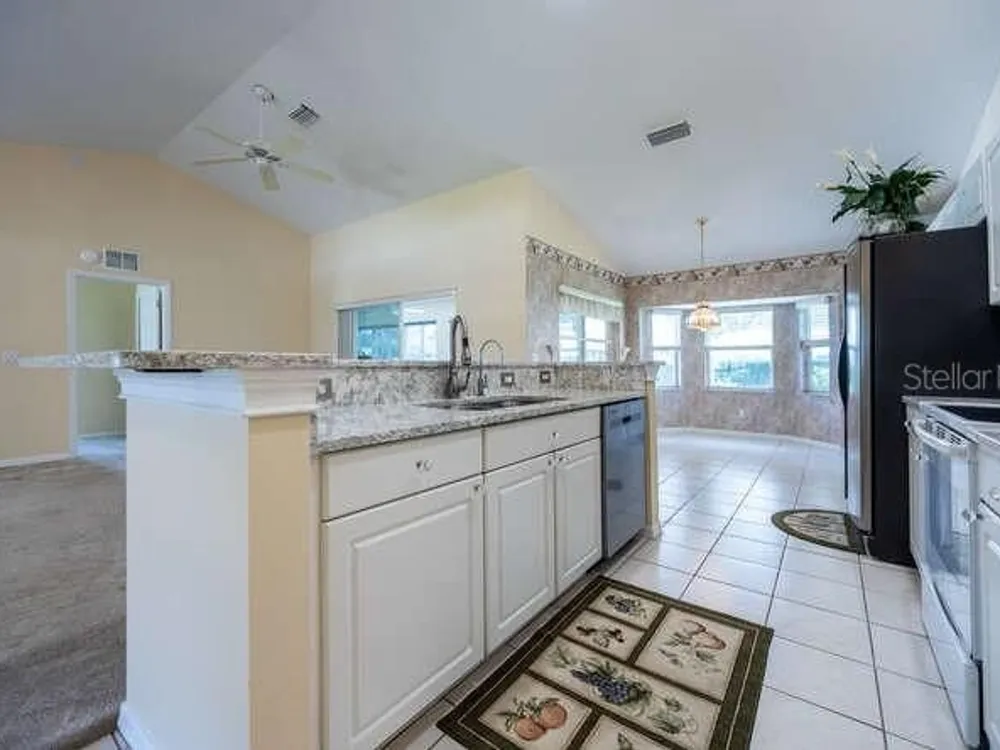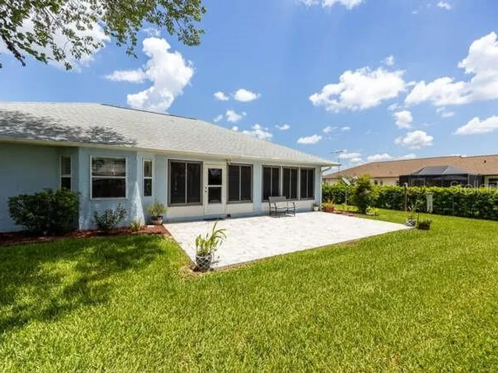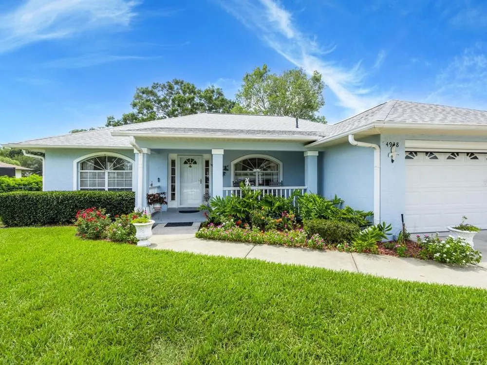 Welcome to this beautifully maintained, custom-built home by Murphy Kaufman Builders. This 2-bedroom 2-bathroom residence offers an inviting open floor plan with high ceilings, creating a spacious and comfortable flow throughout the main living areas. You're welcomed by a charming front porch with two rocking chairs and a peaceful spot to relax and enjoy the quiet neighborhood. As a special gesture, the rocking chairs will come with the house for the new owners to enjoy. Inside, the kitchen features ceramic tile floors, a brand-new dishwasher, updated appliances, and quartz countertops. It also includes a nice bar area perfect for casual seating. This kitchen features windows that overlook the backyard, allowing plenty of natural light and offering a peaceful view while you cook and entertain. The bedrooms all feature freshly cleaned carpets for a move-in-ready feel. The primary bath features a step-in shower with handrails and a walk-in closet. The laundry room is located inside the home, adding ease and functionality to your daily routine. This home also features a 2-car garage complete with a roll-down retractable screen door. The back porch is equally inviting, featuring modern-style windows and a ceiling fan that creates a bright, inviting space. This enclosed area is a true multipurpose room that could be easily used as a bonus room, home office, or even an extra bedroom. The water heater is two (2) years old, and the roof is three (3) years old. Step out onto the newly installed pavers that lead you into the well-maintained backyard filled with beautiful flowers. It's a bird lover's paradise, as the previous owner regularly fed the birds, and they still return to visit. This home also comes equipped with a water softener system and a water purification system. Across the street, a clubhouse with a pool offers easy access to recreation and relaxation. This move-in-ready, turn-key home provides comfort and convenience, located just minutes from grocery stores, dining, and shopping, as well as downtown Ocala. Seller is motivated and ready to see all reasonable offers.