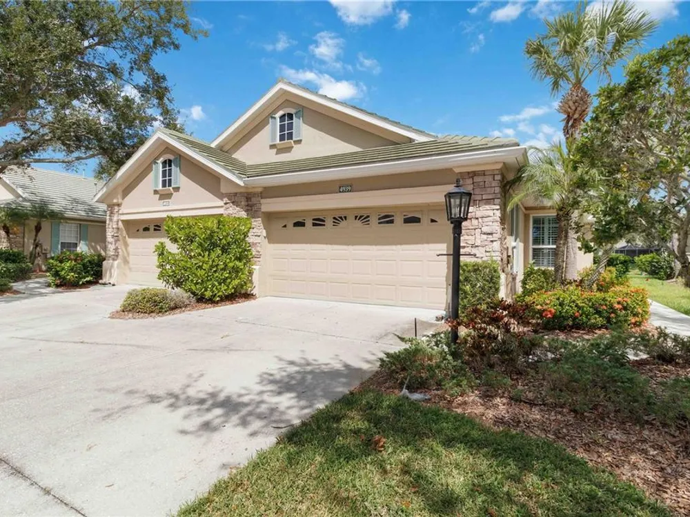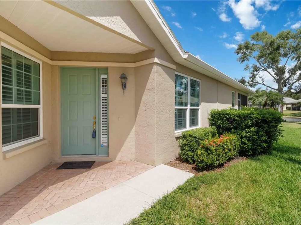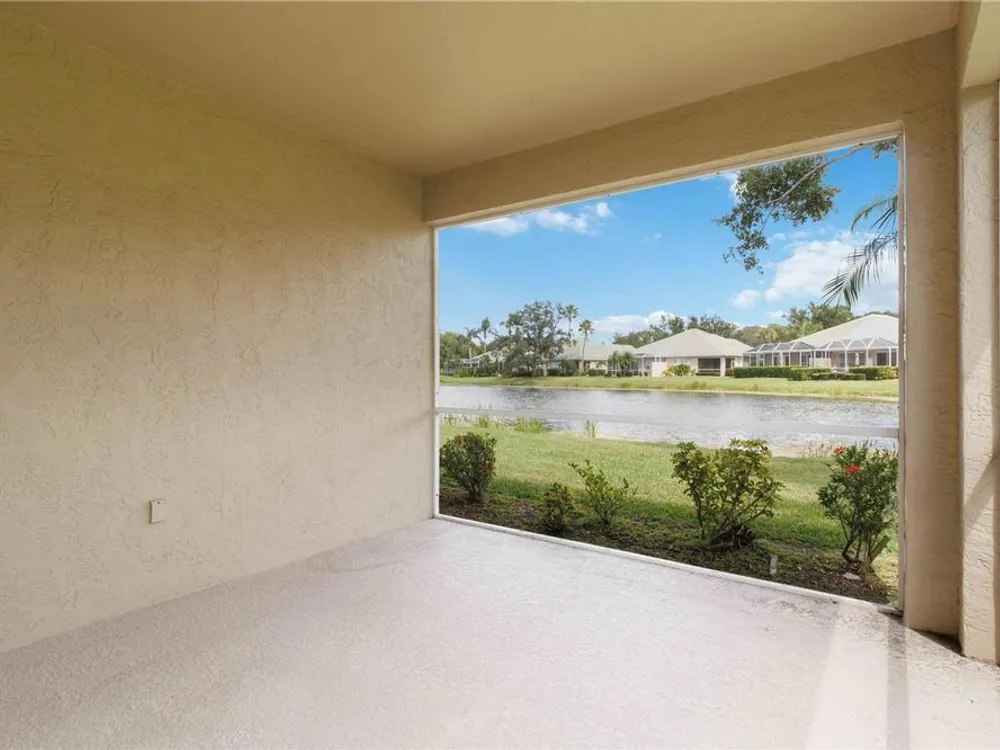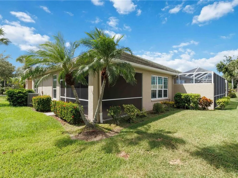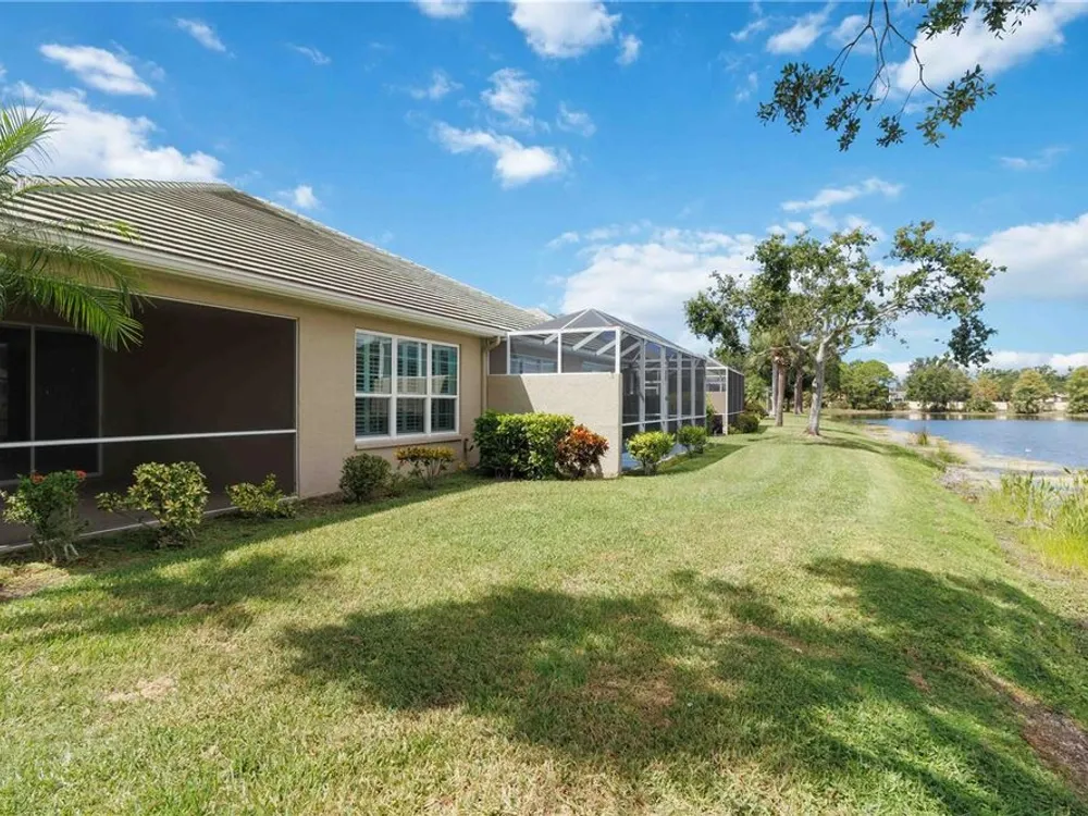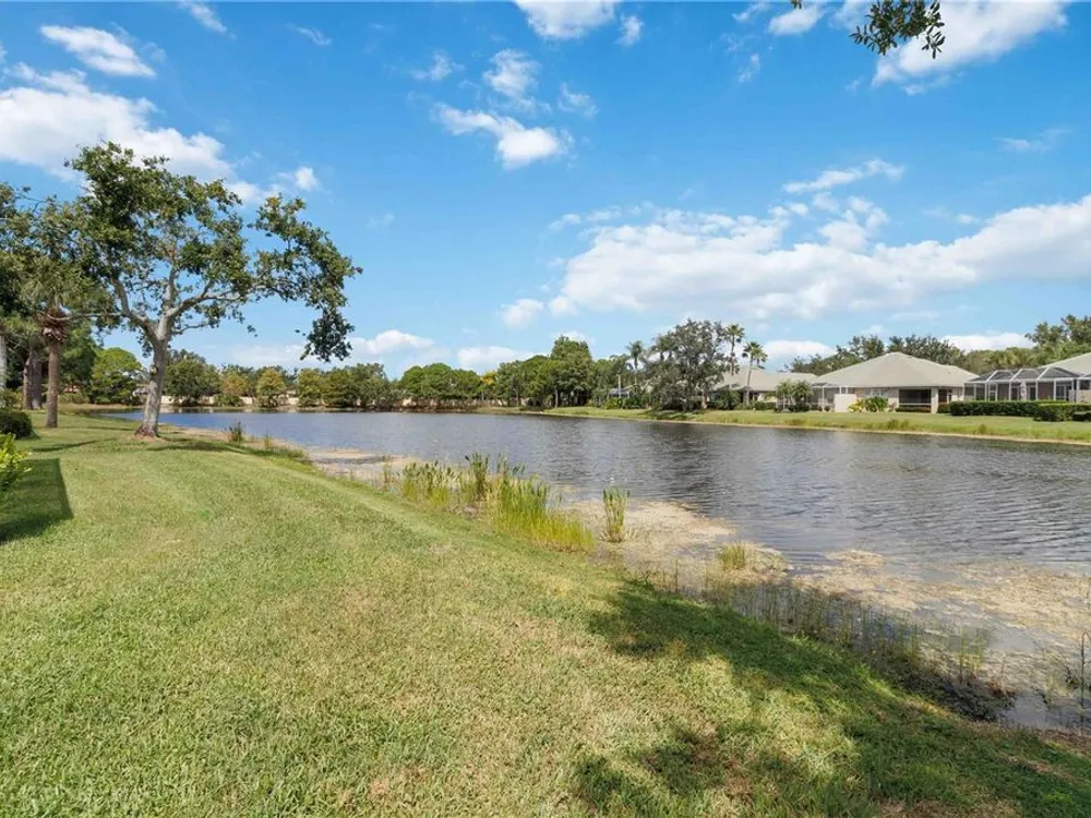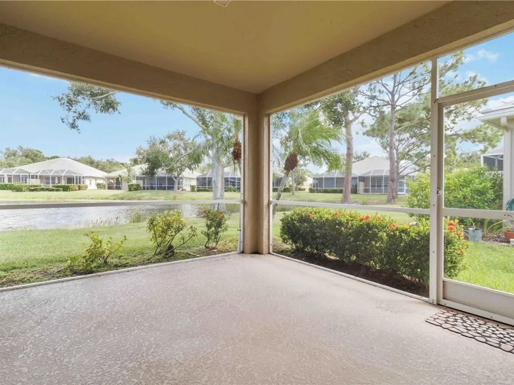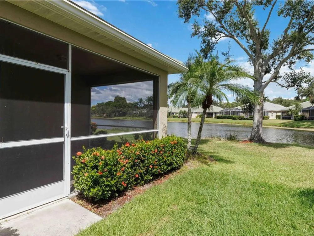 Tranquil, Lakefront, Maintenance Free paired Villa nestled in the lushly landscaped, gated community of Avalon in the Villages of Palm Aire Golf Club. Enjoy lake views the moment you walk through the front door of this spacious; well maintained 2 bedroom + Den, 2 bath open and bright great room design floor plan. Experience waking to the sounds of singing wildlife over the glistening lake and enjoying morning coffee in your covered screened enclosed 13x12 sunroom. Entertaining is a breeze in the open kitchen design with center island; walk-in pantry; countertops galore; updated appliances and adjoining dining area. The master suite also overlooks the lake and features a spacious 19x11 en-suite with closets galore; separate vanities; private commode; and tiled walk-in glass block shower. Other features include: Plantation shutters throughout; spacious utility room with built-ins; 2 car garage with wall storage; new gas hot water heater -2024; New Tile Roof-2020; Hurricane Impact windows-2020. Pets OK! Low HOA fees which include: Grounds maintenance; heated community pool; security gate entry; private road; cable tv; reserves and full time management; pressure washing every 3 yrs; exterior painting every 7 yrs. Within a short golf cart ride away you can enjoy the Optional Membership amenities at Palm-Aire Country Club which includes: Golf; Tennis; Fitness; Pickleball; Olympic pool; clubhouse with dining and activities galore. Located within minutes to UTC mall; abundance of restaurants and shopping; Benderson Park; Mote Marine Aquarium; Sarasota International Airport; Downtown Sarasota and an array of cultural arts venues. Don't miss out on this perfect year round home/ winter retreat!