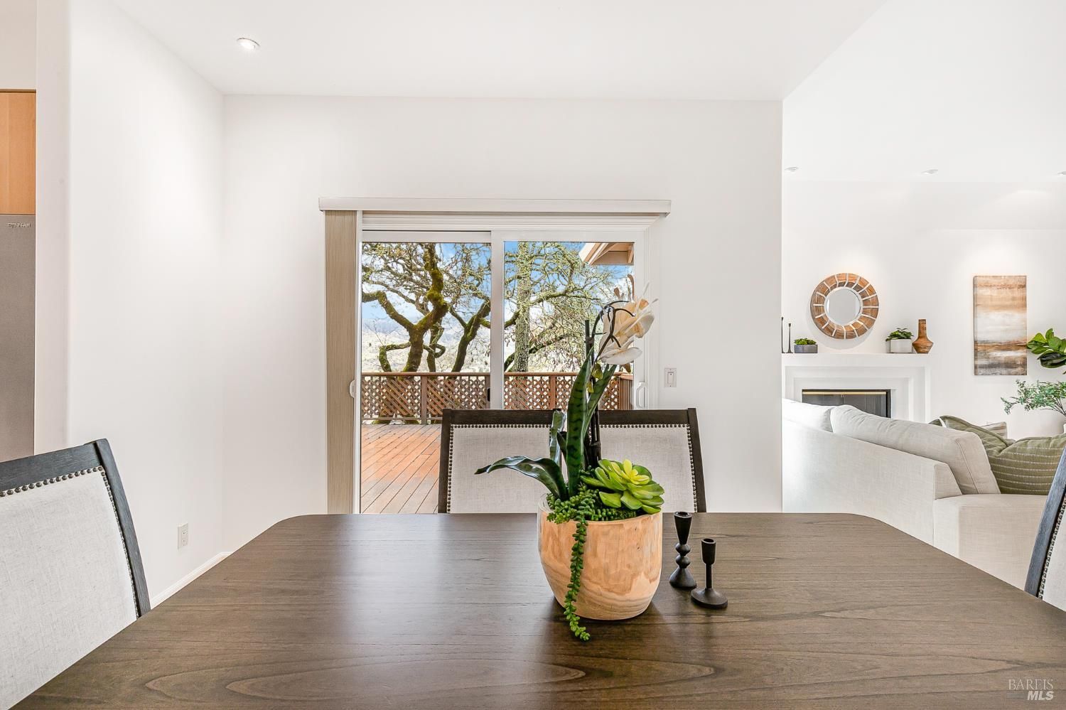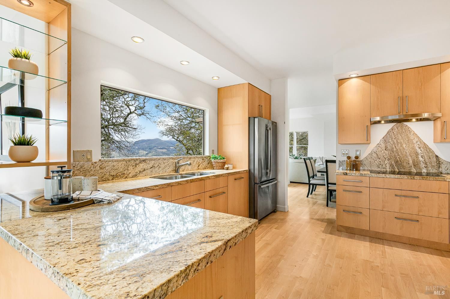 Stunning Mt. Hood plan atop Oakmont in the Starry Knolls neighborhood with views of the Mayacamas mountain range. You'll find a freshly painted interior, refinished maple flooring and new carpeting in this beautifully remodeled home where the homeowners spared no expense. Three glass sliders open to the wrap around deck in this tucked-away location. Some of the many updates and features include dual pane windows and sliders, vaulted ceilings, recessed lighting, shaker style interior doors with updated hardware, a smartly appointed kitchen with abundant storage including a walk-in pantry, granite countertops, gas cooktop, and a view over the kitchen sink that will make dish washing a treat! The primary bedroom and bathroom feature a large walk-in closet, walk-in shower, double sinks, and storage galore. There's an inside laundry room with washer and dryer included - don't miss the wine fridge. One bedroom has been converted into an office/den/music room with built-in cabinetry. The three-car garage with epoxy floor is loaded with storage options, and there's a walk-in room under the house with lighting and additional storage.