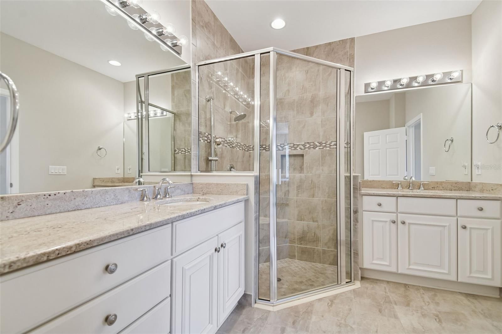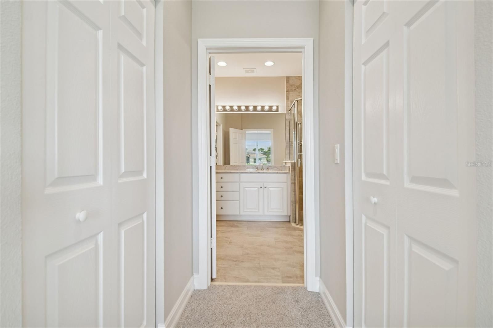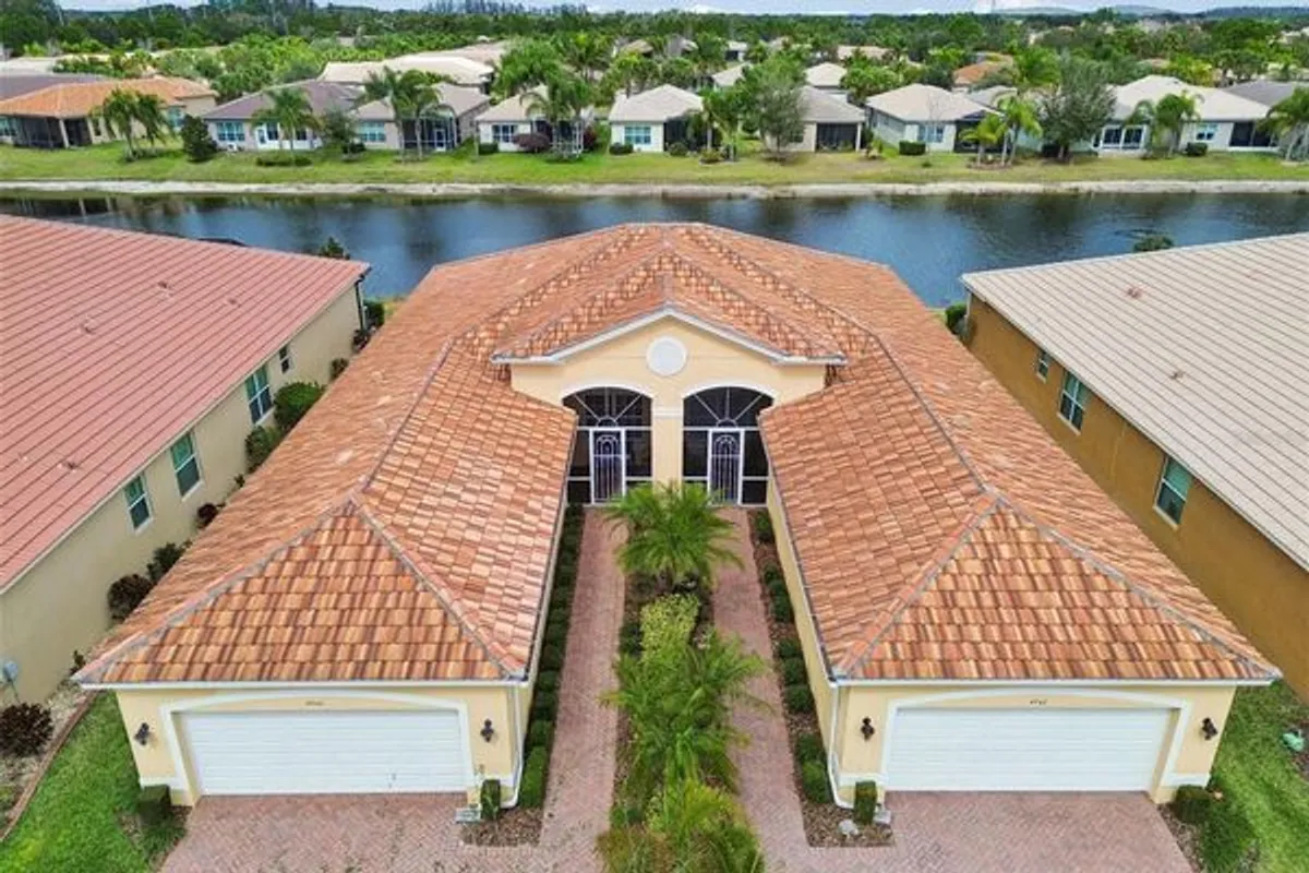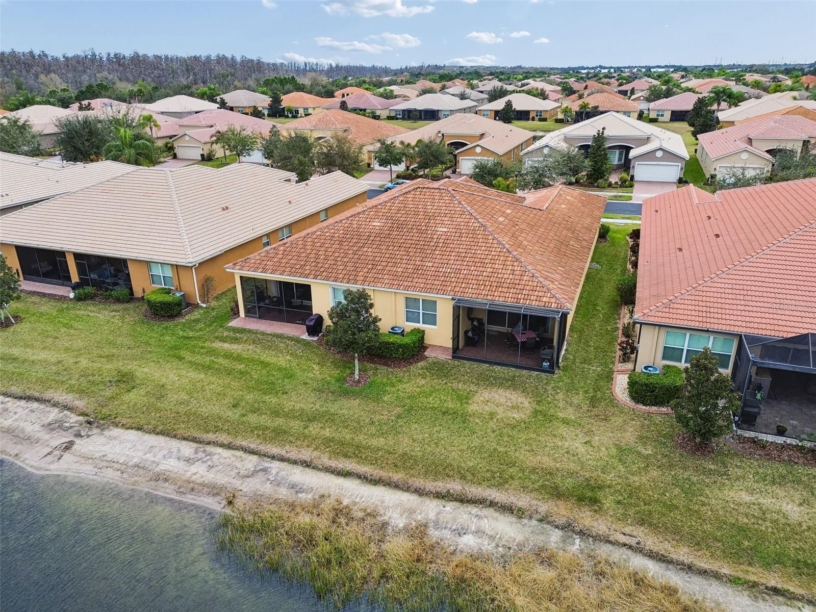 An opportunity to own a Nantucket model villa with a water view occurs very rarely! This is one of only a few Nantucket floor plans built during the final phases of the Valencia Lakes community development by GL Homes, and these homes can only be found on Marble Springs Circle.This villa sits on a prime lot with calm and peaceful water views and features numerous high-quality upgrades and offers 2 bdrms, den/optional 3rd bdrm, 2 full baths and a 2-car garage. Large screened front patio provides an additional private outdoor space—perfect for relaxing or entertaining while enjoying beautiful Florida days. Upon entering, you are greeted by a spacious open floor plan with 9-foot ceilings. Elegant 18x18 ceramic tile is installed diagonally throughout the main living areas, while high-quality carpeting, installed just two years ago, adds comfort to the primary and second bdrms. Luxurious gourmet kitchen features upgraded 42" wood cabinets with crown molding, a full-extension glide system with soft-close drawers, upper and lower cabinet lighting, and a custom built-in cabinet pantry. Beautiful quartz countertops include an 18" serving bar extension for additional seating, complemented by a timeless 'basket-weave' style washed stone backsplash. The kitchen is equipped with GE stainless steel appliances, including a nearly new French-door refrigerator, as well as a reverse osmosis water filtration system. This villa model uniquely offers the option to install an exhaust vent system from the kitchen directly to the exterior. Primary bdrm, highlighted by a coffered ceiling, includes two generously sized walk-in closets and an elegant ensuite bath with a double vanity, undermount sinks, and quartz countertops. The bath also features a separate walk-in shower with a built-in corner bench, designed for comfort and stability, along with a spacious linen closet. Tile in both baths extends to the ceiling and is enhanced with a decorative horizontal listello accent and built-in niche. Bdrm 2 also includes a walk-in closet. French door lead to the den/optional 3rd bdrm, where a custom built-in Murphy bed and shelving are included with the sale. Lighting and comfort have been thoughtfully upgraded throughout the home, including updated fans and light fixtures, recessed lighting in the great room, bdrms, den, and lanai, and stylish pendant lighting in the kitchen. The laundry room includes a utility sink.The A/C system has been upgraded to a high-efficiency variable-speed air handler with a humidity-control thermostat for improved comfort and energy efficiency. 8-foot sliding glass door of the bright and spacious great room opens to a paved, screened, extended private lanai with water views, where you can truly enjoy the essence of Florida living. Valencia Lakes is a 55 + active adult golf cart community with 40-acre waterfront outdoor recreation area with resort-style heated pool, lap and resistance pool, 40,000 sq. ft. clubhouse, deluxe Bistro, har-tru tennis courts, gym, half-court basketball, pickleball and bocce courts, dog park, baseball park, community garden, hundreds of clubs and activities, RV/boat storage area. Over 100 acres set aside as nature preserves designed for solitude of peaceful views. Great sense of community with great friendly neighbors. Tampa, St. Pete and Sarasota 30-45 minutes away. Close to the airport, medical facilities, shopping and golf.