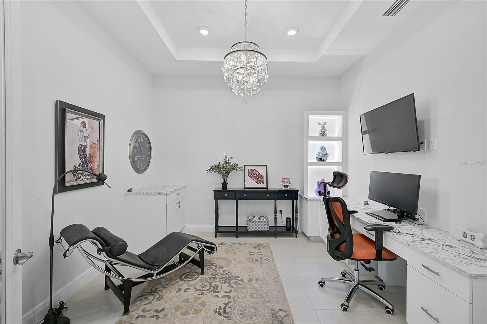 - Built-in Features, Ceiling Fan(s), Crown Molding, High Ceilings, In-Wall Pest Control, Kitchen/Family Room Combo, Open Floorplan, Smart Home, Solid Surface Counters, Solid-Wood Cabinets, Tray Ceiling(s), Walk-In Closet(s)