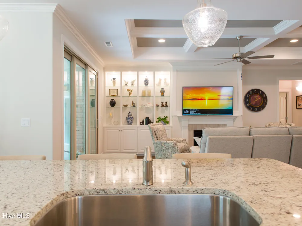 - Blinds/Shades, Tray Ceiling(s), Walk-In Closet(s), Walk-in Shower, Vaulted Ceiling(s), Entrance Foyer, Pantry, Mud Room, Kitchen Island, Gas Log, Ceiling Fan(s), Bookcases
