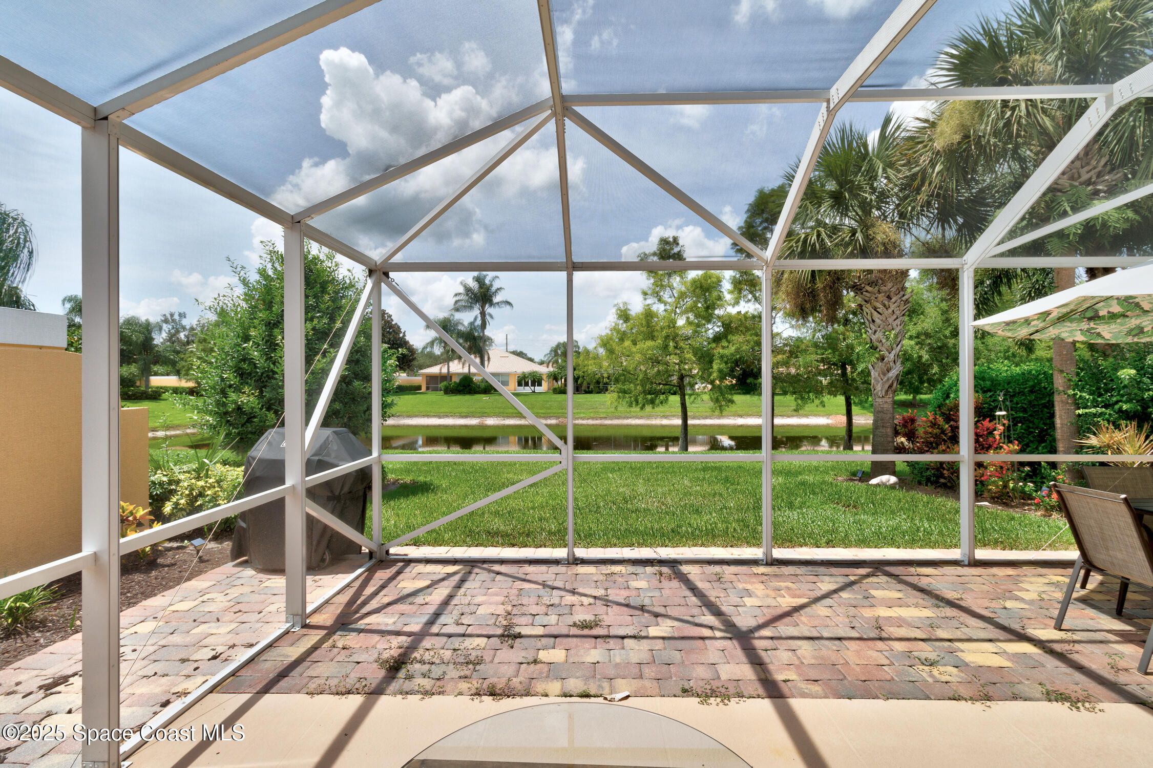 WELCOME TO THIS BEAUTIFUL 2 BEDROOM 2 BATHROOM 2 CAR GARAGE LAKEFRONT TOWNHOUSE IN A RESORT-STYLE GATED COMMUNITY! Walking in you will love the light, bright & airy rooms w/ cathedral ceilings & natural light! An open split floor plan w/ over 1700 sq ft w/ a living room, dining room & family room! The kitchen is perfect for the chef in the family & entertaining! Relax & enjoy the Florida weather in your oversized 28X17 screened-in lanai w/ peaceful & private lake views! The primary bedroom features an ensuite w/ double sinks & shower plus a ''safe room'' in the walk-in closet w/ a steel locking door! Tile flooring (NO CARPET) throughout, plantation shutters & beautiful upgrades make this truly move-in-ready! Interior laundry room too! Accordion hurricane shutters for peace of mind! The amenities include: clubhouse, pool, fitness center & tennis courts! HOA includes: lawn, cable & internet! AC - 2022, WH - 2020, 40 yr tile roof. COME MAKE THIS STUNNING TOWNHOUSE YOURS TODAY!