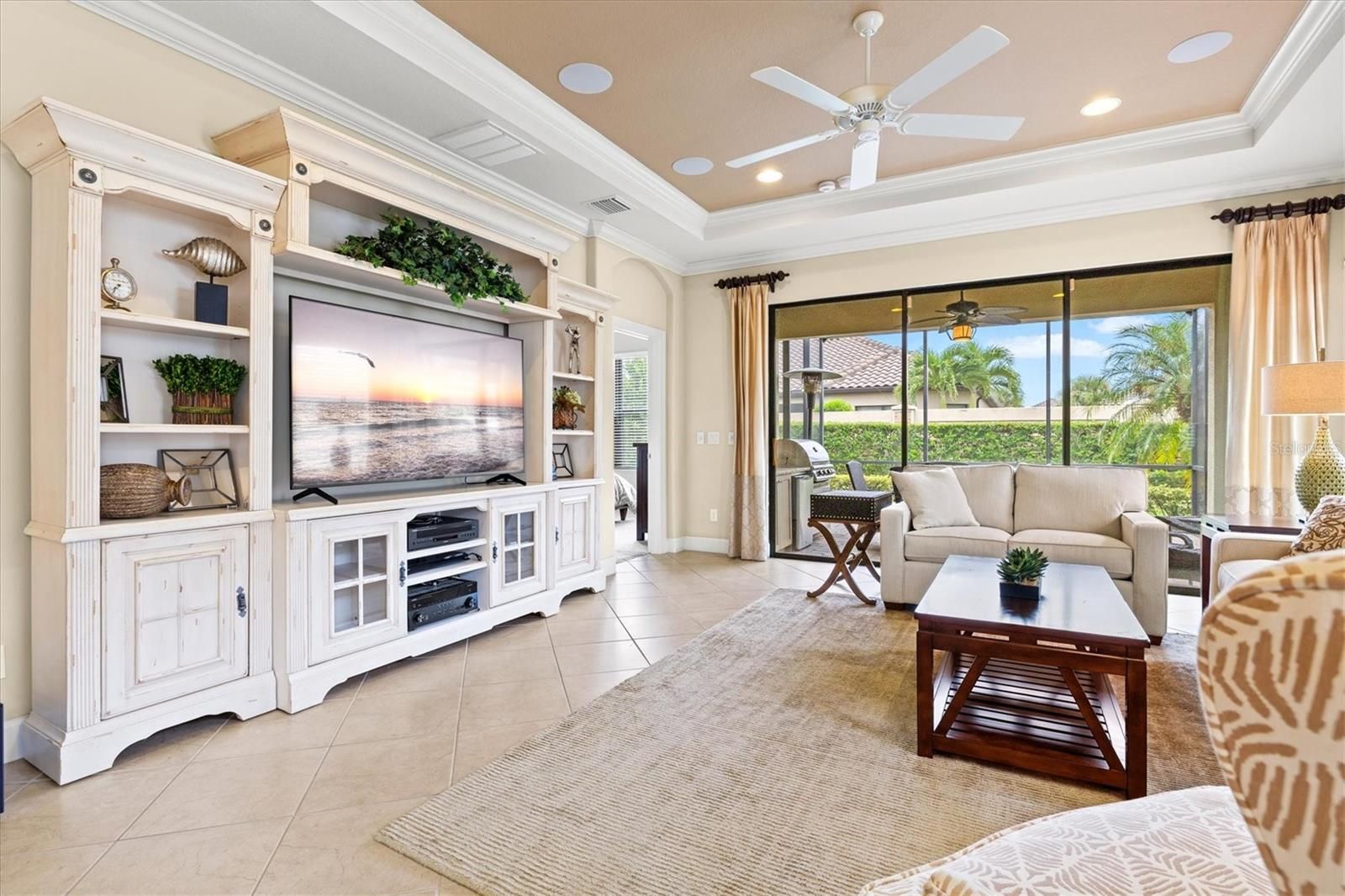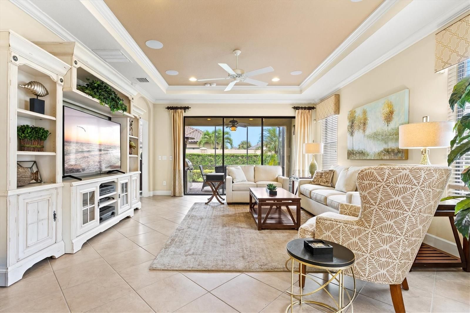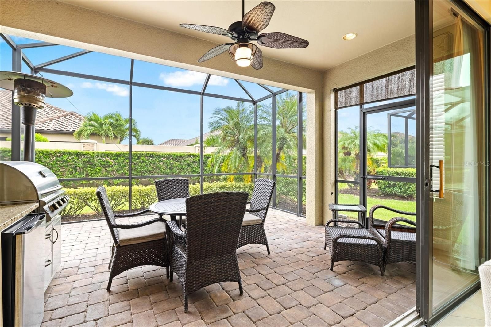 Welcome to your dream home on Savona Run in the prestigious, maintenance-free Esplanade Golf & Country Club! This turn-key furnished, non-golf deeded (pay-to-play) Arezzo model is ideally positioned on a private west facing lot. The pavered screened lanai with full outdoor kitchen is the perfect setting for sunset gatherings and effortless indoor/outdoor living. Just a short walk to the clubhouse and amenities, this home even comes with its own golf cart! Step inside and you’re greeted by an inviting open-concept great room enhanced by designer furnishings, premium cabinetry, stainless steel appliances, and granite countertops—a space that feels both elegant and comfortable from the moment you enter. The primary suite provides a luxurious retreat with a spacious walk-in closet, dual sinks with ample storage, and an oversized walk-in shower. Two guest rooms—including one with a private en suite bath—plus a dedicated office offer exceptional privacy and versatility for guests, work, or hobbies. Relax and entertain on your extended screened lanai, complete with brick pavers and an outdoor kitchen. Whether you’re hosting friends or enjoying a quiet morning coffee, this space is designed for true Florida living. This meticulously maintained home is move-in ready. Maintenance-free living means landscaping and lawn care are handled for you, giving you more time to enjoy the exceptional lifestyle that has made Lakewood Ranch the #1 multigenerational planned community in the nation for six straight years. Shopping, dining, medical facilities, parks, and the library are all nearby. Resort-Style Amenities Your Esplanade fees include access to an amazing suite of amenities, including a private Residents-Only area featuring: Private pool Clubhouse with fitness center Sports courts Lakeside fire pit & gazebo Park & playground You’ll also enjoy full access to the Esplanade Golf & Country Club, offering: Health & Wellness Center with premium gym & spa Tennis, pickleball & bocce courts Clubhouse events & social activities Culinary center and poolside bar & restaurant Tropical resort-style pool with tanning ledge Optional pay-per-play on the 18-hole championship golf course (no membership required) Driving range & pro shop All of this is just minutes from I-75 for easy commuting, and close to Lakewood Ranch’s charming Main Street with boutique shops, restaurants, and entertainment. Bonus: This home includes the golf cart—ready for your new lifestyle from day one! Live every day like you’re on vacation. Experience the perfect balance of luxury, privacy, and resort-style living in this exceptional home in Esplanade.
