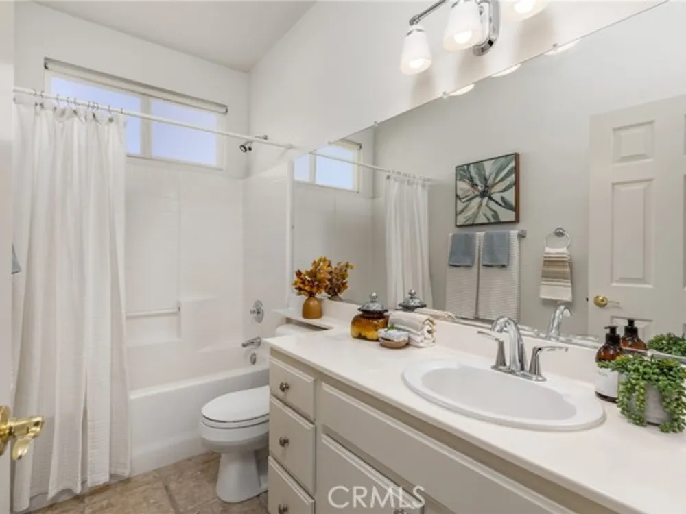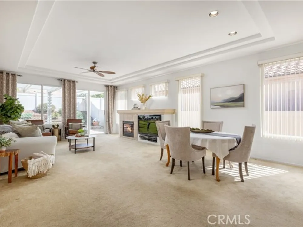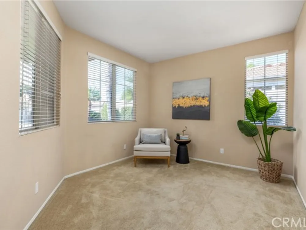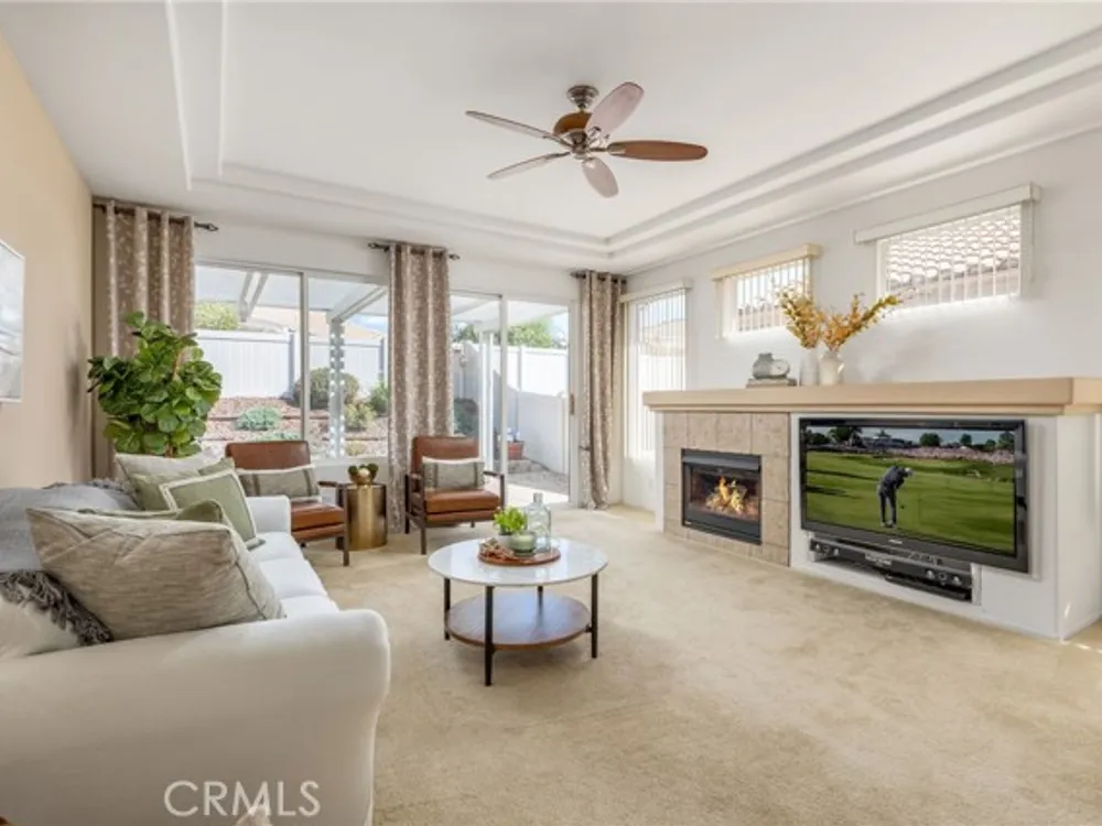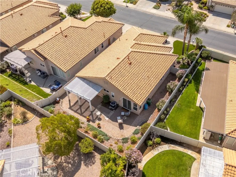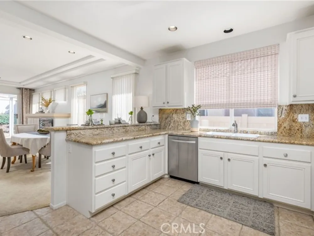 Spacious, inviting and full of light…welcome to 4945 Silverado Avenue in Sun Lakes Country Club; a picturesque, active lifestyle 55+ guard gated community. This desirable Forsythia Model offers with low maintenance landscape; freeing up your days to enjoy everything this golf course community offers! Featuring 2 bedrooms, 2 bathrooms, plus versatile den. In the kitchen, enjoy professionally painted cabinetry accented with premium brushed nickel hardware, under-cabinet lighting, granite countertops with bar seating, stainless steel appliances, and a walk-in pantry. The open-concept dining and living room invites you to gather with friends, featuring a built-in media niche, a cozy gas fireplace, and a sliding glass door that fills the space with natural light. The expansive primary suite is a retreat of its own, complete with a sliding glass door to the backyard, a spacious walk-in closet, and an en-suite bathroom with dual sinks, a wide mirror, and a step-in shower. Guests will appreciate their own private bedroom and full bathroom, while you will love the convenience of an indoor laundry room with storage and direct access to the 2-car garage, which includes cabinetry and a built-in workbench. Throughout the home you will find high ceilings, recessed lighting, ceiling fans, mir