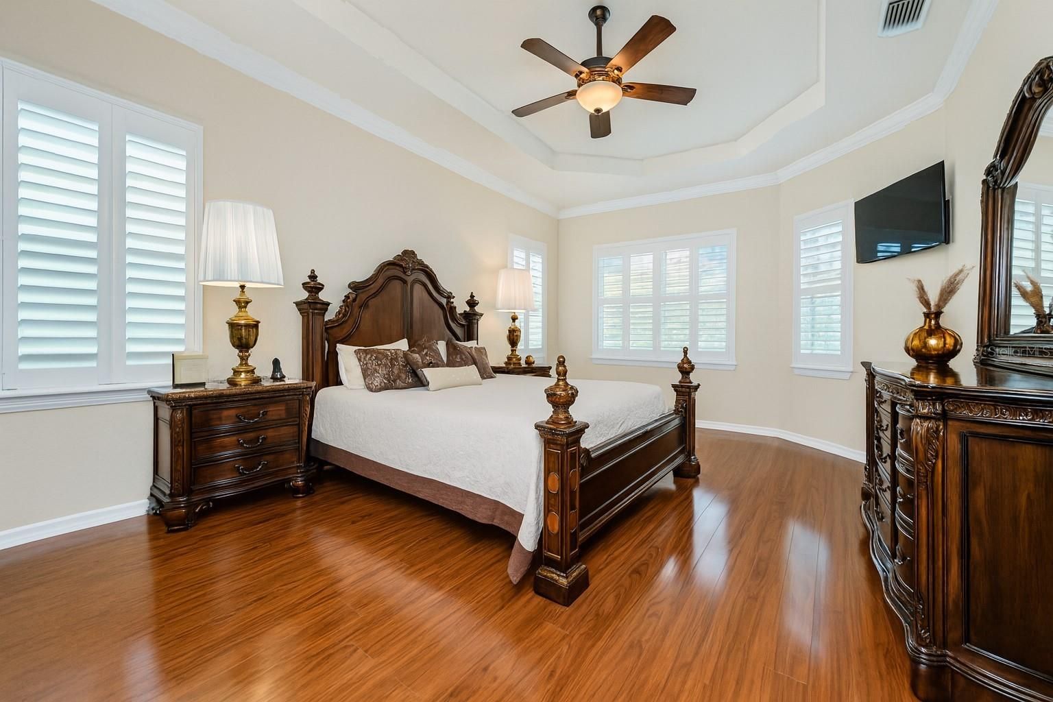 One or more photo(s) has been virtually staged. Discover the ideal Florida 55+ lifestyle in this beautifully maintained Genova model home, built by GL Homes and located in the highly desirable, resort-style community of Valencia Lakes. Designed for comfort, convenience, and active living, this immaculate 2-bedroom plus office, 2-bath residence offers a perfect blend of luxury finishes and thoughtful functionality. From the moment you arrive, the charming curb appeal and welcoming foyer showcase the pride of ownership found throughout the home. The spacious, open-concept layout is enhanced by elegant touches including crown molding, tray ceilings, and abundant natural light that fills the living spaces with warmth. This inviting design makes everyday living and entertaining truly effortless. The gourmet kitchen is ideal for those who love to cook or host, featuring generous counter space, ample cabinetry, a large pantry, and seamless connection to both the dining area and great room. Whether you’re preparing a quiet meal at home or gathering with friends, the layout supports a relaxed and social lifestyle. The serene primary suite offers peaceful pond views, creating a private retreat to begin and end each day. Enjoy the spa-like feel of the en-suite bath with dual vanities, a garden tub, a zero-entry shower, and a walk-in closet designed for excellent storage and organization. Step outside to the oversized, screened-in lanai where tranquil water views set the tone for morning coffee, afternoon lounging, or evening get-togethers. This outdoor space truly captures the beauty and calm Florida living is known for. This home is move-in ready, featuring recent upgrades that add value and peace of mind—including a new HVAC system (2023) and premium Andersen hurricane-rated sliders and windows (2023/2024). Living in Valencia Lakes means embracing a vibrant 55+ lifestyle with unmatched amenities: a grand clubhouse, multiple pools, state-of-the-art fitness center, tennis and pickleball courts, walking trails, and an exciting calendar of activities and clubs that make it easy to connect with neighbors and stay active. Don’t miss this rare opportunity to own a beautifully maintained waterfront home in one of Tampa Bay’s premier active-adult communities. Experience the comfort, convenience, and lifestyle you’ve been dreaming of!