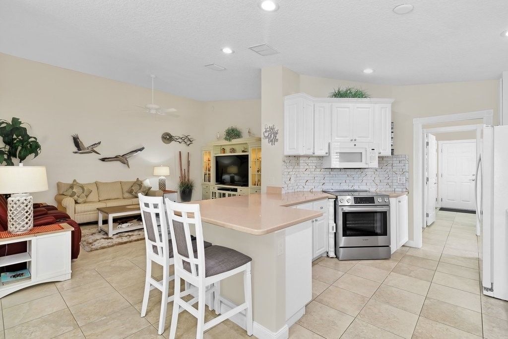 Enjoy effortless Florida living in this beautifully maintained 2BR/2BA Divosta Capri & private HEATED POOL w/a screen enclosure & new pump. The interior offers an open layout w/tile flooring & elegant plantation shutters throughout. The kitchen is equipped w/a new ss stove & dishwasher plus a newer refrigerator & washer/dryer. Additional highlights include a walk-in shower in primary suite, safe room, accordion hurricane shutters for peace of mind, poured concrete construction for lasting durability, & a fenced backyard w/serene garden views & privacy walls—perfect for relaxing or entertaining