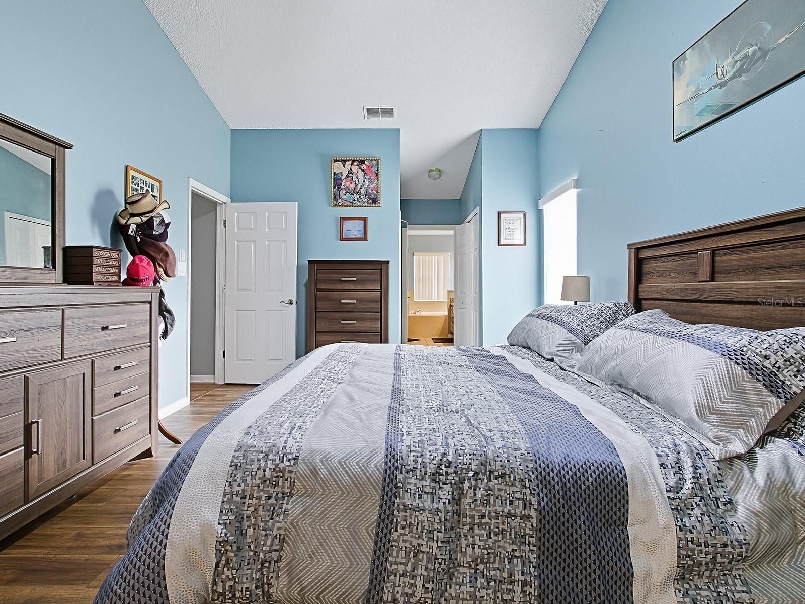 - Ceiling Fan(s), Eat-in Kitchen, High Ceilings, Kitchen/Family Room Combo, Open Floorplan, Main Level Primary, Split Bedrooms, Walk-In Closet(s)