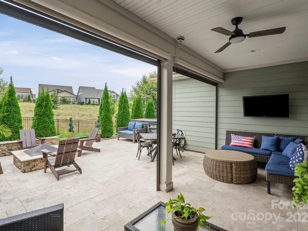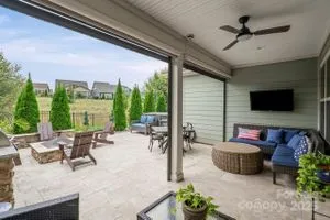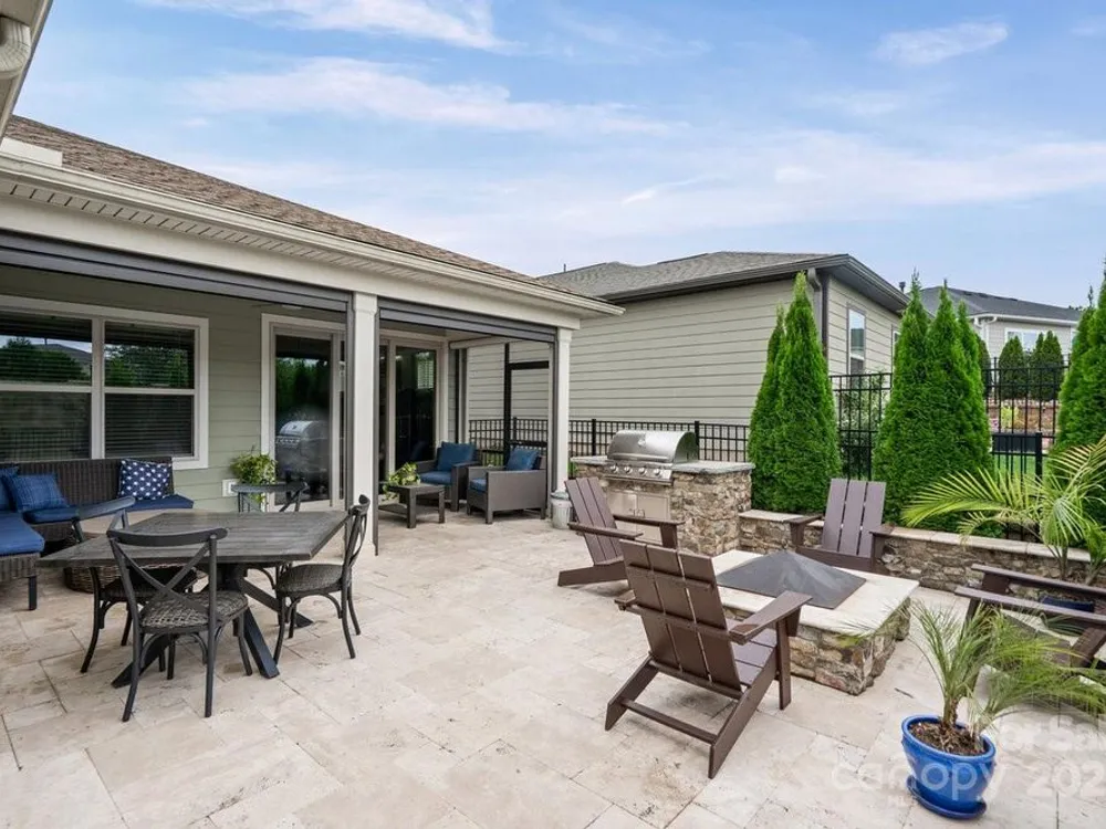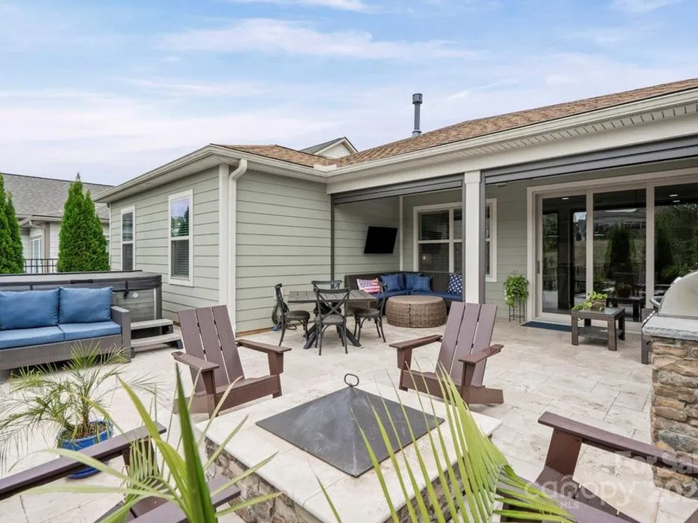 Enjoy the setting sun as you sip your favorite beverage from your expansive travertine lanai extending in and outdoor entertaining options! Highly sought after well maintained Connect plan w/open concept & multi-purpose living areas is waiting for you. Wood & tile floors for easy maintenance. Exceptional kitchen features amazing storage & counter space, light cabinetry, GE Cafe appliances, gas range, tile back splash, large island serving bar and solid surface counter tops. Dining area for large gatherings flows seamlessly to the motorized screened Lanai that is highlighted with an extended travertine patio with grilling area, fire pit with seating wall, hot tub, electric shade screens for additional privacy adding multiple entertaining options. Great room is accented with a gas log FP. Recessed & designer lighting throughout. Grand primary bedroom and en-suite bath with dual sink vanity, walk in custom closet and tiled shower. Office/den flex space for added use of living space. 2 additional spacious guest bedrooms with centrally located bath. Exceptional landscaping adds privacy in the rear fenced yard. 2 car garage has an epoxy coated floor and tremendous hanging storage. Trilogy Membership includes Freedom Boat Club on Lake Norman plus award winning amenities.