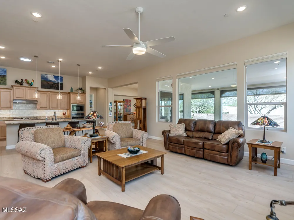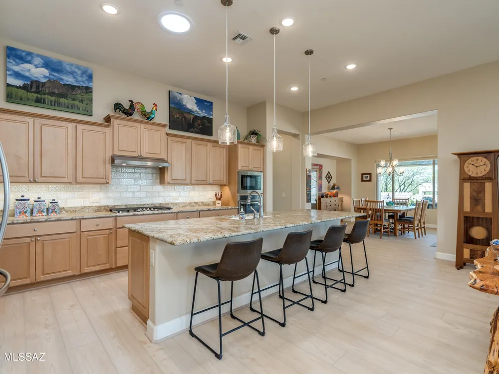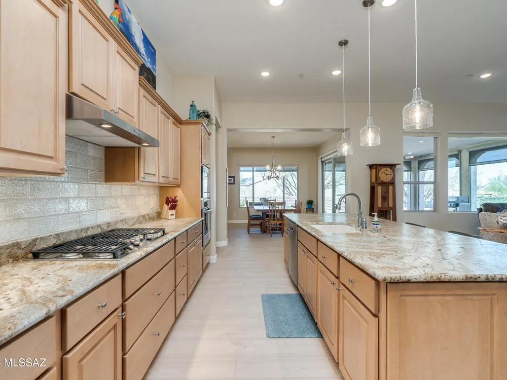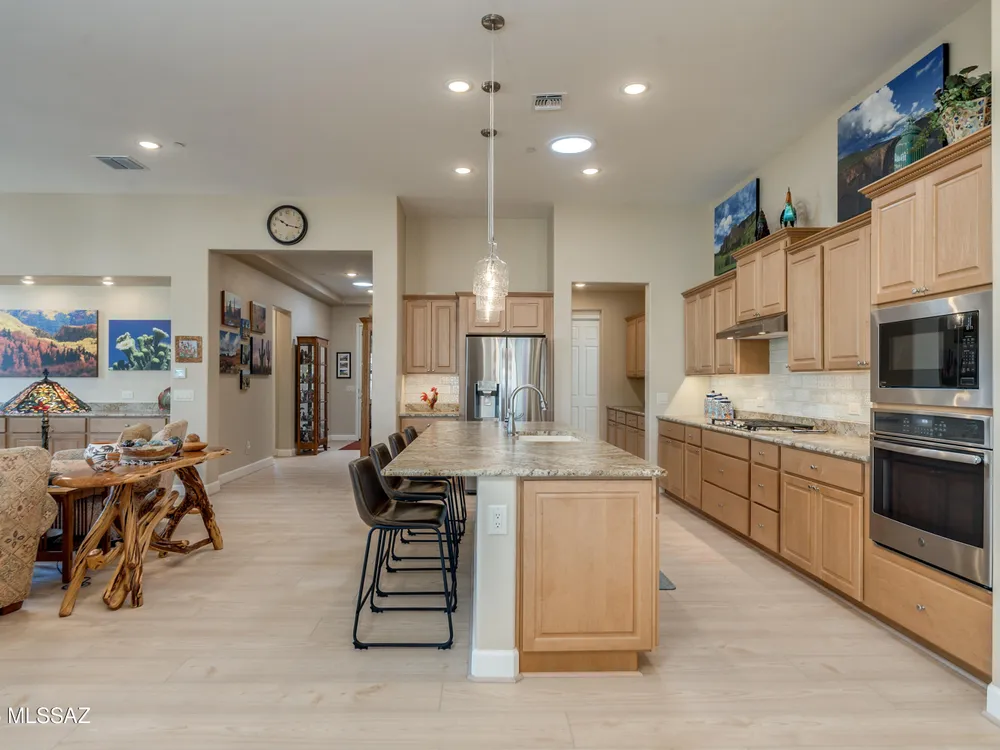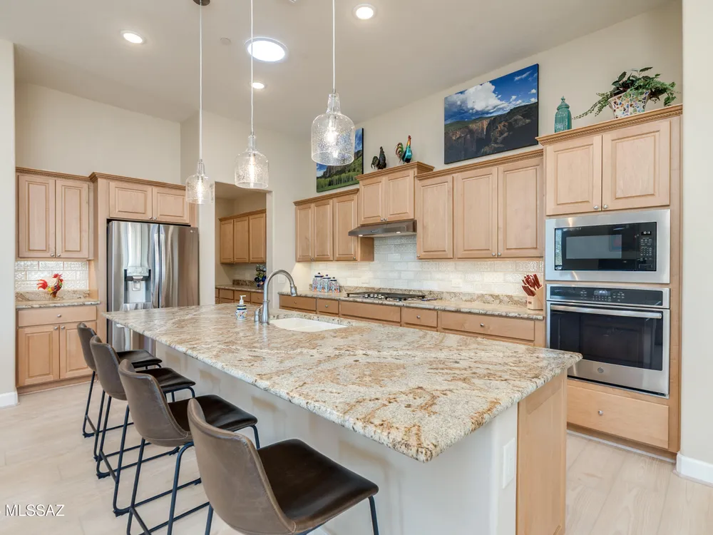 Live your luxury lifestyle! This stunning and spacious Avalon has it all! Built 2019, this 2,725 sq.ft. home resides on an elevated corner lot, where you are greeted by a majestic sahuaro as you approach the paver front porch. Step inside the grand foyer with plenty of space to display your fine art. Interior features incl. all hard surface floors (ceramic tile and luxury vinyl plank), spacious great room with dry bar, 3 solar tubes, upgraded fans and lighting, 5'' baseboards. Chef's kitchen w/ upgraded maple cabinets, leather finish granite counters, SS appliances, butler's pantry w/ walk-in food pantry. Bright and cheery owner's suite offers sunset views, and electronic window screens. Spacious owner's bath w/ dual vanity, WI closet and huge, walk-in/roll-in all-tile curbless shower.