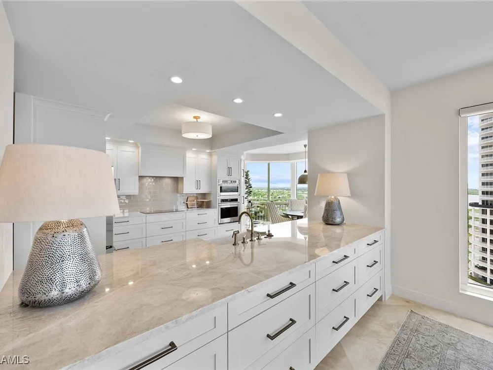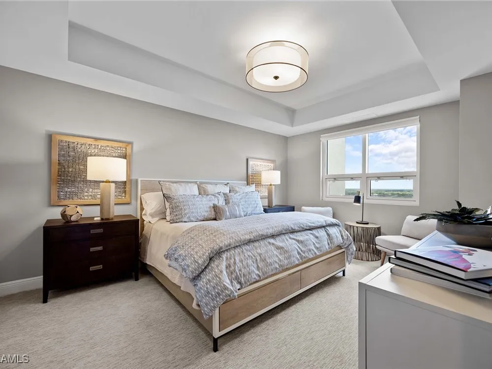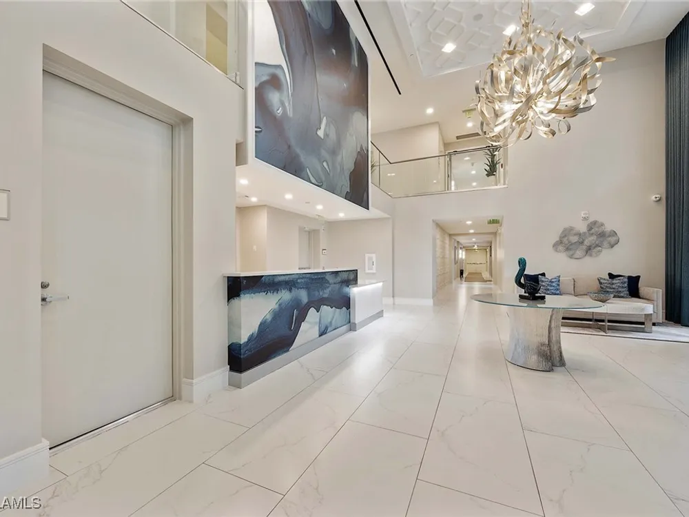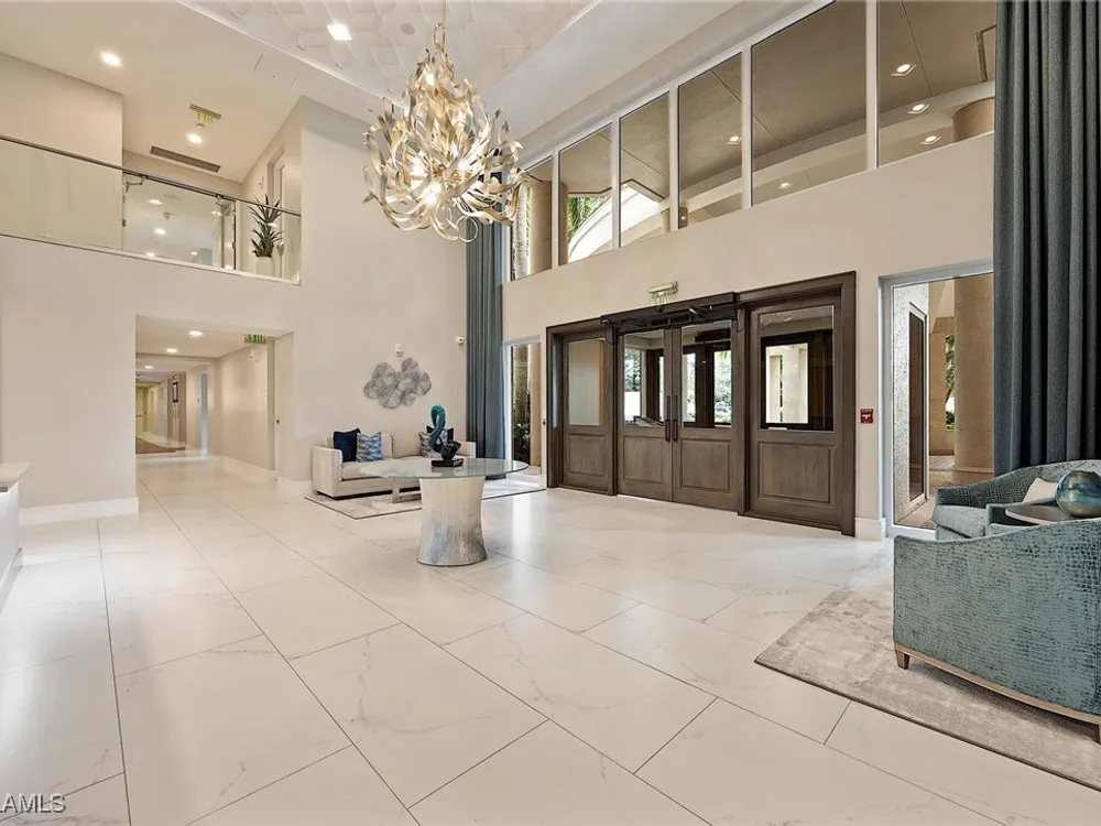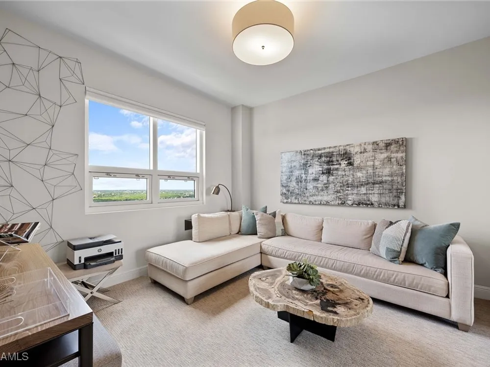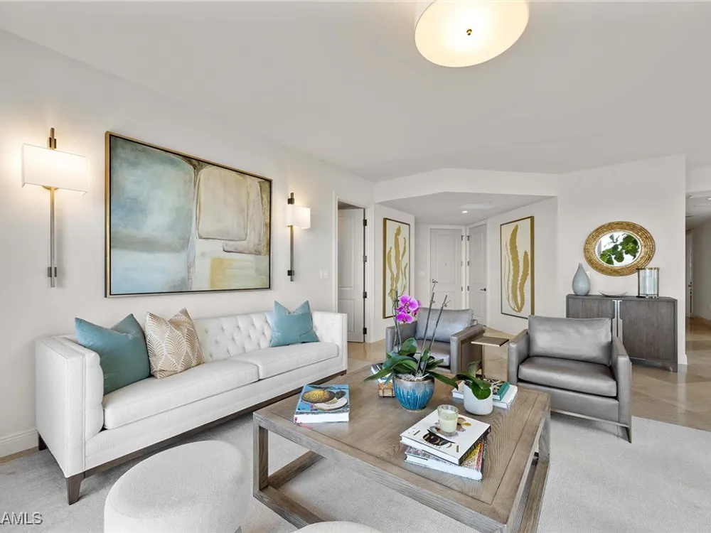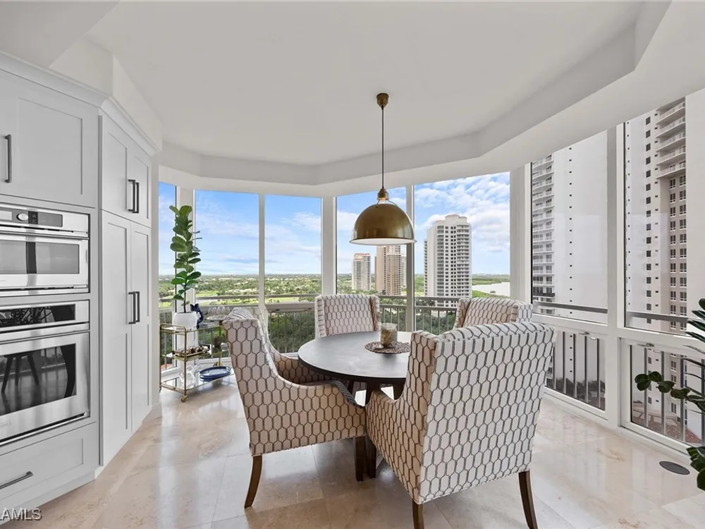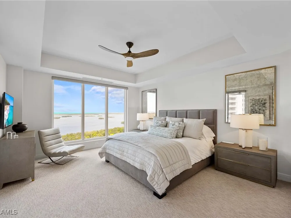 Prepare to fall in love at first sight with this extraordinary waterfront residence, where panoramic views of Estero Bay and the Gulf create an enchanting backdrop for your everyday life. This exquisite end unit, bathed in natural light, offers a move-in-ready experience with its sought-after coastal transitional design and high-end finishes throughout, all tastefully curated by a professional decorator. Enter the stunning living area, which seamlessly transitions to a covered balcony, ideal for enjoying waterfront views and sunsets. The space flows effortlessly into the elegant dining room and spacious, fully updated chef’s kitchen. It also features an impressive glass-enclosed bonus space with floor-to-ceiling windows, delivering breathtaking views of the water, golf course and community beyond. The luxurious primary suite is a sanctuary, boasting unparalleled views, a beautifully updated spa-like bath, a new custom walk-in closet and built-in storage wall. The generously sized guest room includes an updated en-suite bath and walk-in closet, while an additional bedroom, used as a den, offers versatility and convenience with a nearby updated full bath. This condominium is complete with new electric shades throughout, a secure elevator with a private entrance foyer and two garage parking spaces on the second level. Amenities include secured entry, on-site manager, resort-style pool with spa, cabana bar and grills, state-of-the-art fitness center, clubhouse, card and billiards rooms, a theater and guest suites. Bonita Bay spans 2,400 acres and features a guarded and gated entrance, a private Gulf-front beach park with shuttles, and 12 miles of recreational and biking trails. Residents enjoy three recreational parks that include a butterfly garden, bocce, tennis, pickleball, basketball, playground, picnic areas, pet water stations, and kayak/canoe launch and storage. The community also boasts over 30 resident clubs, social events and a fabulous on-site marina with the charming Backwater Jack’s Restaurant, Sweet Water Boat Club and Gulf access. Proximity to The Promenade at Bonita Bay with great dining, shopping and fabulous farmers market. Bonita Bay Club membership is optional. The club offers exceptional services, amenities and facilities, including a stunning clubhouse, restaurants, dining options from casual to fine, full-service bars and five world-class golf courses. three on the main property and two in Naples. It features practice ranges, a short game practice area, a sports center with a saltwater pool, lap lanes and a sundeck, as well as 18 Har-Tru tennis courts, 10 pickleball courts and a new croquet court. The luxurious full-service spa and salon, along with the lifestyle center's nearly 20,000 square feet dedicated to fitness, were ranked #2 in Club + Resort Business for the 2023 Top-Ranked Fitness and Wellness Experience!
