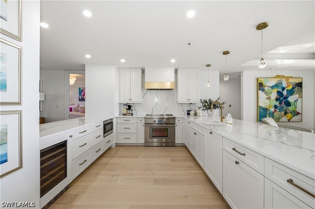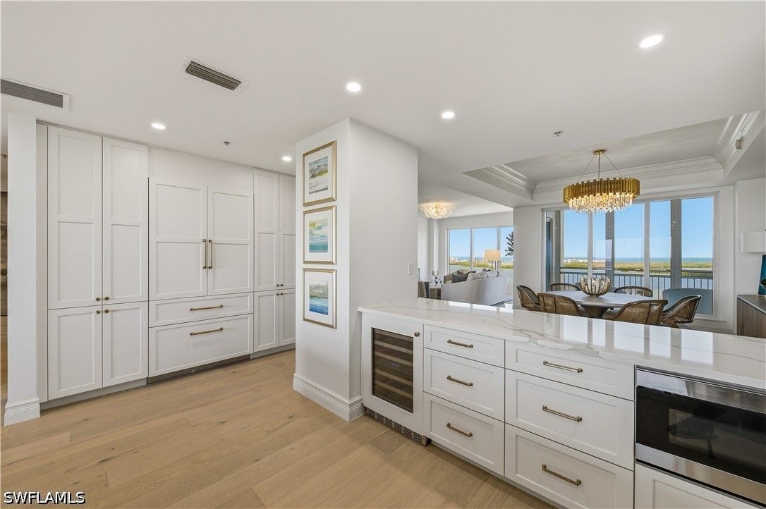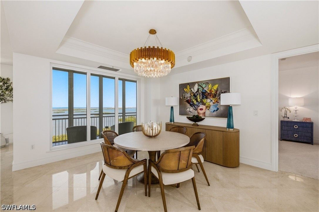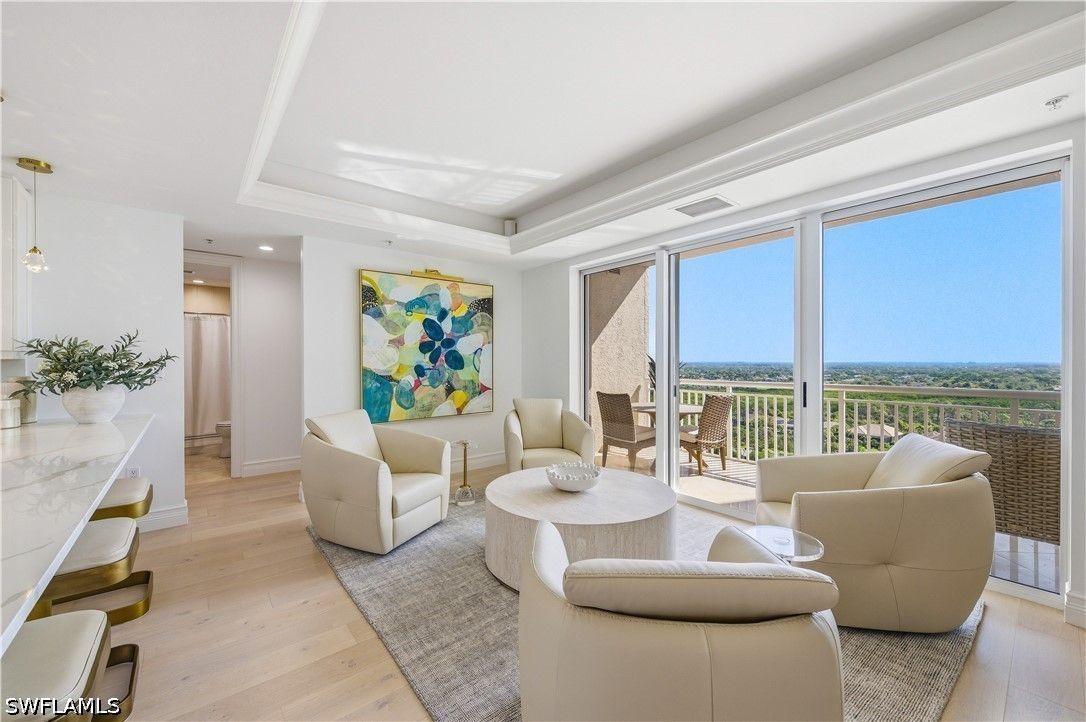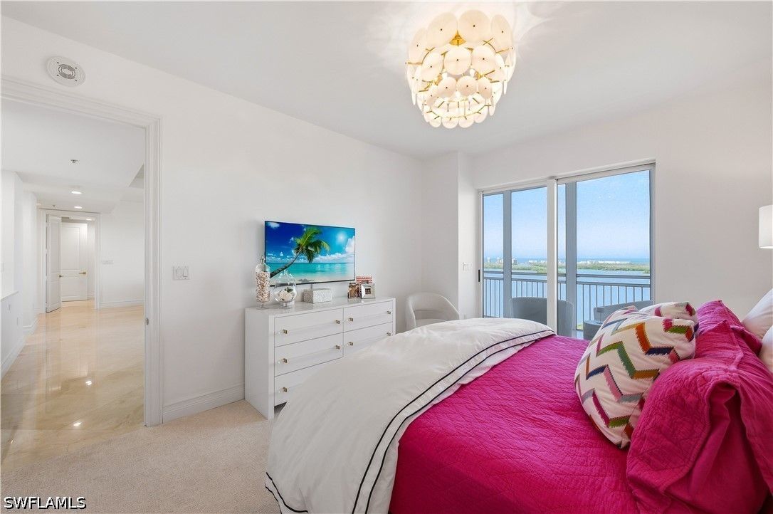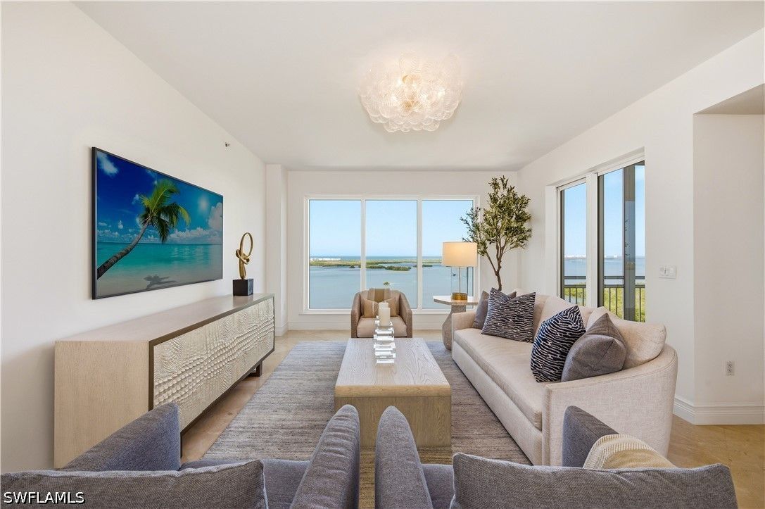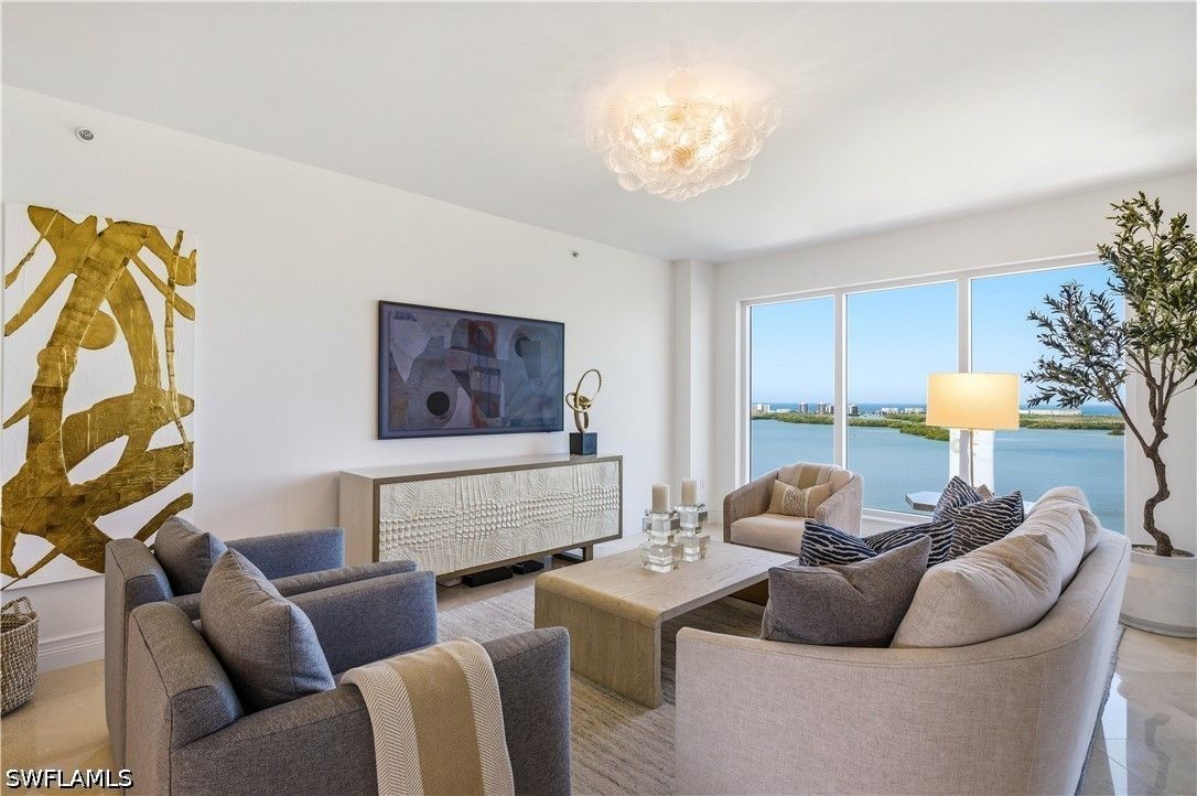A special opportunity in Esperia at Bonita Bay: A higher floor unit—17th floor—with the very desirable "02" floor plan. Offered furnished. This home has panoramic views from the main living areas looking West to the Estero Bay and the Gulf of Mexico beyond. Looking East, the expansive views feature Bonita Bay’s championship golf courses, pristine lakes and acres of beautifully-manicured green landscape and undisturbed nature. This residence contains 3 Bedrooms/3 Full Baths and 2,730 total square feet under air, with high-end designer furnishings and many upgrades. Newly remodeled with high-end lighting throughout. New hardwood floors in the informal living space. Completely-remodeled kitchen with quartz countertops with Thermador premium appliances: integrated 42” refrigerator with freezer drawers, 36” induction range, dishwasher and wine cooler. Sharp under-counter microwave. Samsung front-load washer & dryer. A SPECIAL ADDED BONUS: YOUR OWN PRIVATE 2-CAR GARAGE (close to the elevator lobby) INCLUDED IN THE SALE. High-end designer furniture is located throughout the home, which is included in the sale. Esperia has undergone a beautiful renovation of all first and second-floor lobby areas, along with a completed renovation of the Clubhouse where Esperia residents enjoy a state-of-the-art fitness center, men’s and women’s spas with steam room, card room, billiard room, and club room for social activities. An added bonus: five (5) well-appointed guest suites are available for daily rental at reasonable rates for visiting family and friends. Bonita Bay residents also enjoy 12+ miles of walking/biking paths and 3 nature parks, plus tennis, pickleball, kayaking, and canoeing. Don’t miss a special added bonus: the new, private Bonita Bay Beach Club located directly on the Gulf of Mexico—exclusively for use by Bonita Bay residents and their guests. The optional Bonita Bay Club membership features world-class golf (5 golf courses, 3 of which are located inside the front gate, with 2 others located East), tennis and pickleball, Clubhouse with gourmet dining and social activities, and a 6,000 sq. ft. Lifestyle Center with complete fitness facilities, and men’s and women’s spa services. Located in a quiet and peaceful natural setting, but within easy reach of numerous gourmet dining and shopping options, live entertainment in the vibrant Downtown Bonita Springs, and easy proximity to the RSW International Airport.