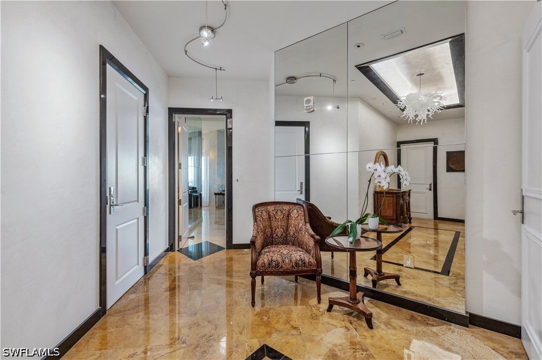 - Breakfast Bar, Bathtub, Tray Ceiling(s), Closet Cabinetry, Dual Sinks, Entrance Foyer, Living/Dining Room, Separate Shower, Cable TV, Walk-In Closet(s), Window Treatments, Elevator, High Speed Internet, Split Bedrooms