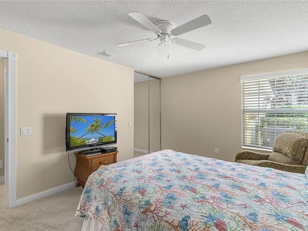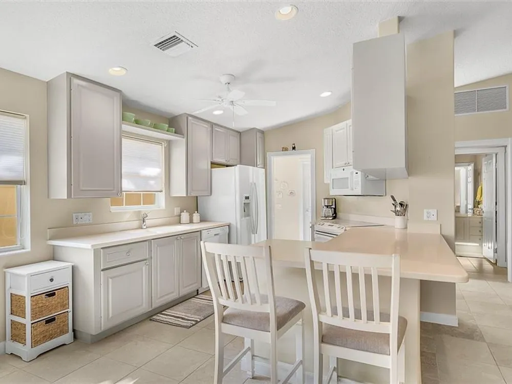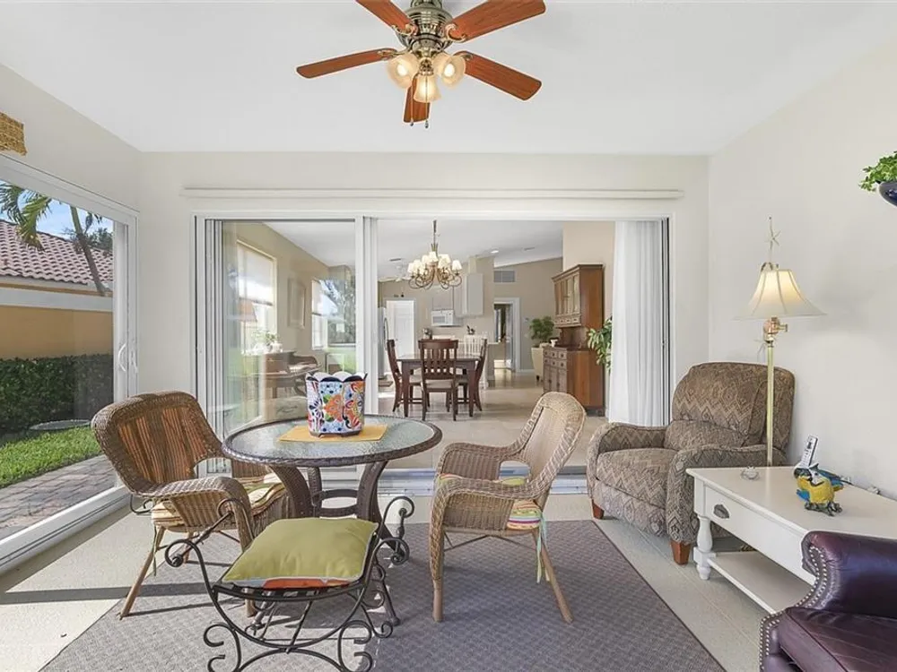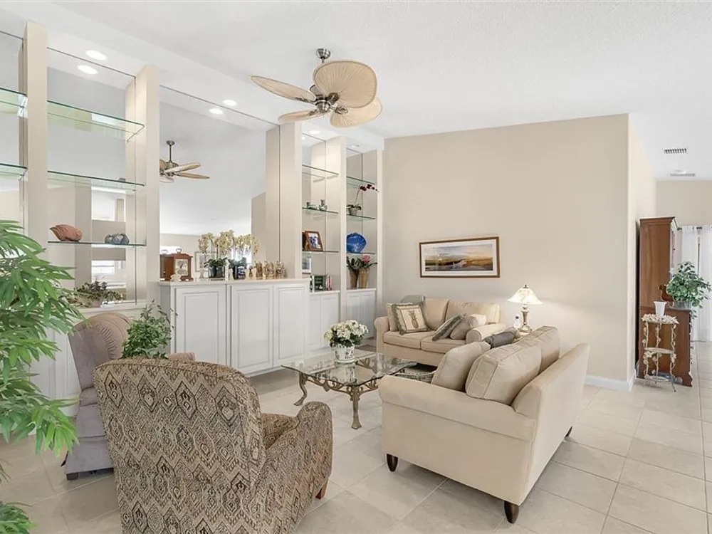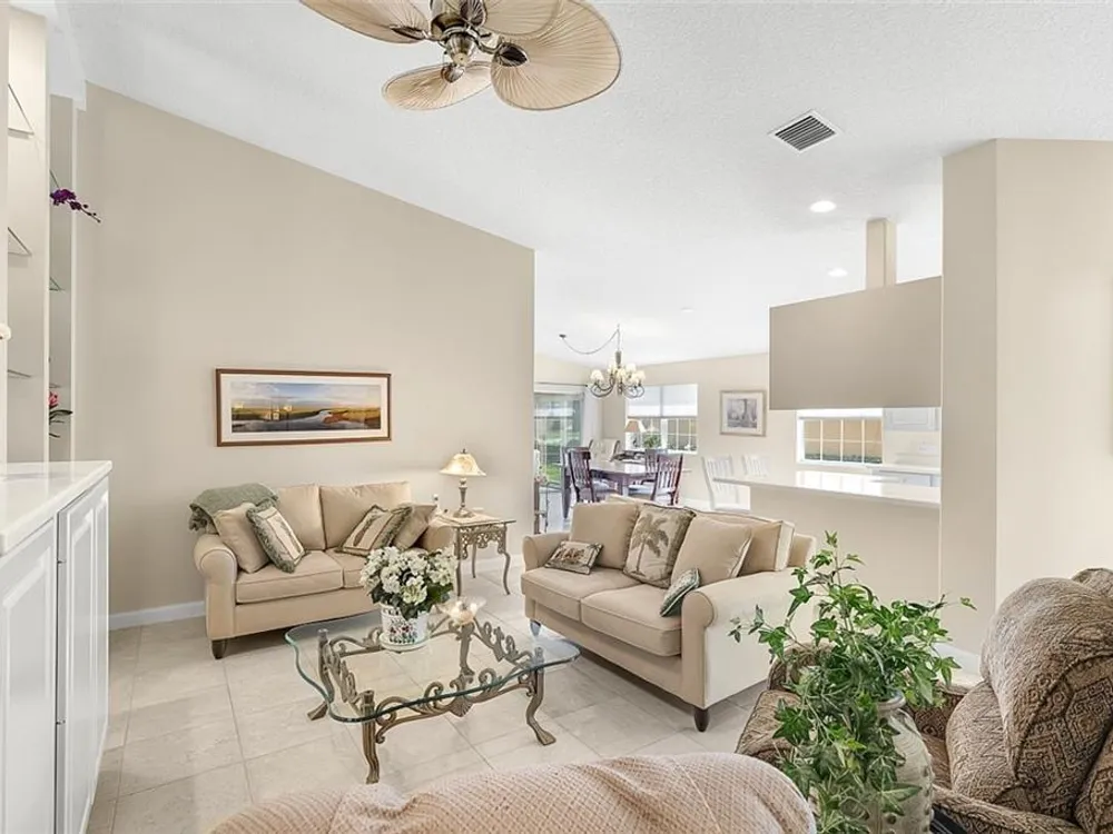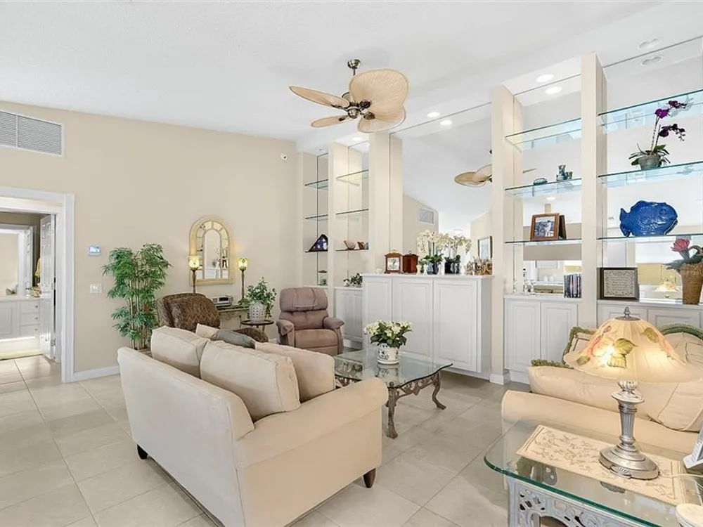 Resort style living at the Isles of Waterway Village. 2 BD/2 BA villa w/Impact Enclosed Porch w/Sliding Doors for comfort in the Summer as well as the Winter! Soft Grey Cabinets; corian countertops; SS Appliances; built in wall unit in family room for extra storage; split bedrooms for guest privacy both w/walk-in closets; walk-in shower in primary suite area for easy access; safe room; venetian blinds in main living area; privacy walls between homes; 2018 AC. Community amenities: Heated pool, fitness center, tennis/pickleball courts; clubhouse and outside gathering area for social events!