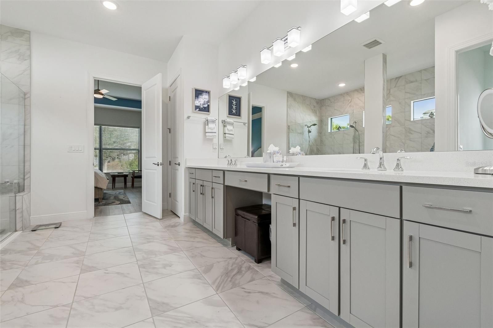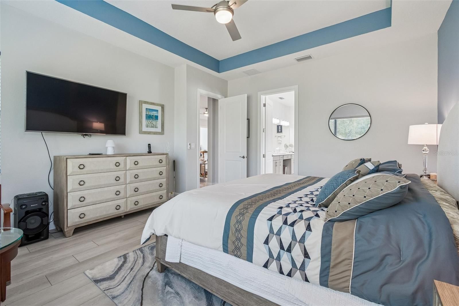 3 years new Santa Rosa model from Kolter Homes in an active maintenance-free adult 55+ community offering residents an expansive, resort-style lifestyle with a private lakeside clubhouse featuring a full-service fitness center with equipment that enables safe, efficient, and personalized workouts to minimize joint strain, yoga, art studios, social spaces, and a calendar of activities led by a dedicated lifestyle director. Outdoor amenities include resort and resistance pools with spa, lighted tennis and pickleball courts, bocce ball, dog parks, and scenic walking trails that weave throughout the community. This spacious home features 3 bedrooms and 3 full baths, plus a den/study with room to add a pool. An open floor plan integrates the kitchen, dining, and living areas for both entertaining and daily living. The gourmet kitchen is equipped with a natural gas cooktop, built in double ovens, a wine cooler, quartz countertops and a large island that is perfect for both culinary adventures and casual gatherings. The luxurious master suite offers a spa-like en-suite bathroom featuring a large walk-in shower, dual sinks, makeup desk, and a walk in closet that is so big you could almost live in it. And speaking of big, the side-load 3-car garage with it's finished floors provides ample room for your vehicles and storage. Both guest bedrooms are large enough for queen-sized beds with room to spare. The second bedroom comes complete with it's own private bath and shower, plus a roomy walk-in closet. Bedroom number 3 features a shared bath with the rest of the house. The 14 x 12 den/study makes an ideal home office, and could even be converted to a 4th bedroom. The flooring in the living areas and master bedroom is porcelein tile with carpeting in the guest bedrooms and closets. The lifestyle at Cresswind is centered around fostering a vibrant and engaged community. Residents have access to a calendar packed with social events, educational workshops, and hobby groups, encouraging a sense of camaraderie and lifelong learning. It is located in the heart of Lakewood Ranch, a highly regarded master-planned community on Florida’s Gulf Coast. It is known for its beautifully maintained neighborhoods, abundant lakes, miles of walking and biking trails, and thoughtfully designed green spaces. Residents enjoy a wide range of amenities including shopping, dining, medical facilities, golf courses, and community events centered around Lakewood Ranch Main Street and Waterside Place. With top-rated schools, and active lifestyle focus, Lakewood Ranch appeals to families, professionals, and active adults alike. The area also offers convenient access to beaches, cultural attractions, airports, and major employment centers throughout the Sarasota-Bradenton region.