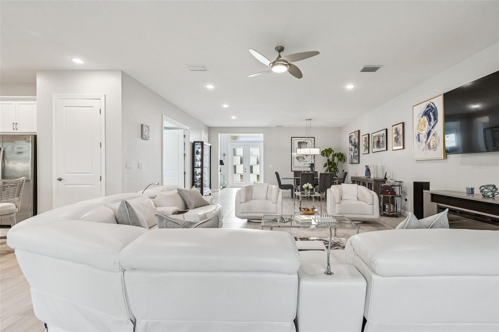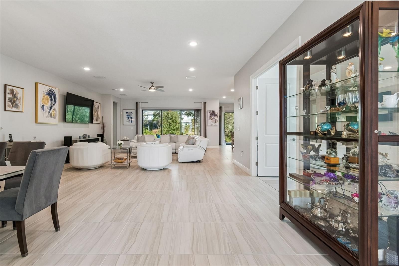- Ceiling Fan(s), Eat-in Kitchen, Kitchen/Family Room Combo, Living/Dining Room, Open Floorplan, Main Level Primary, Solid Surface Counters, Window Treatments