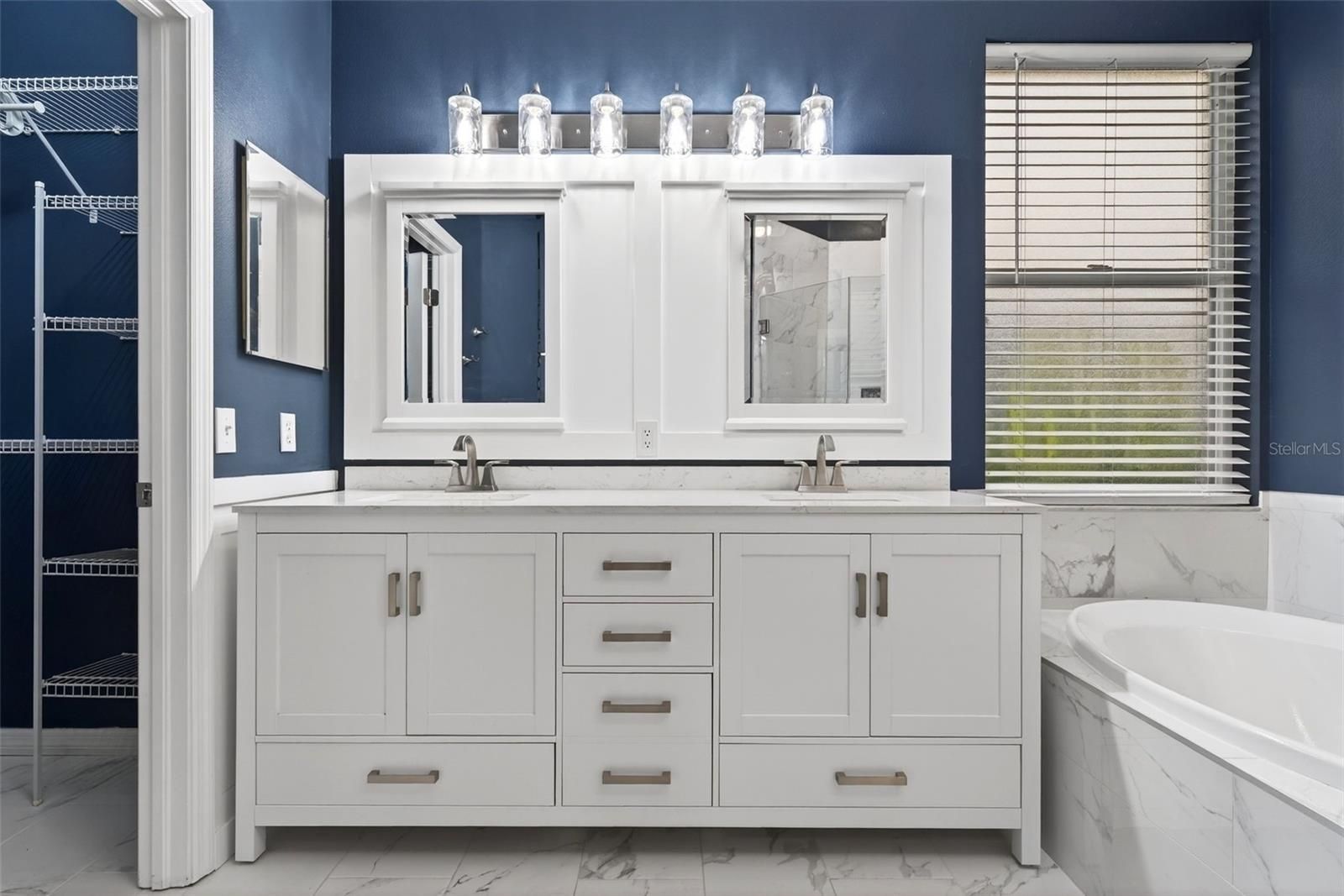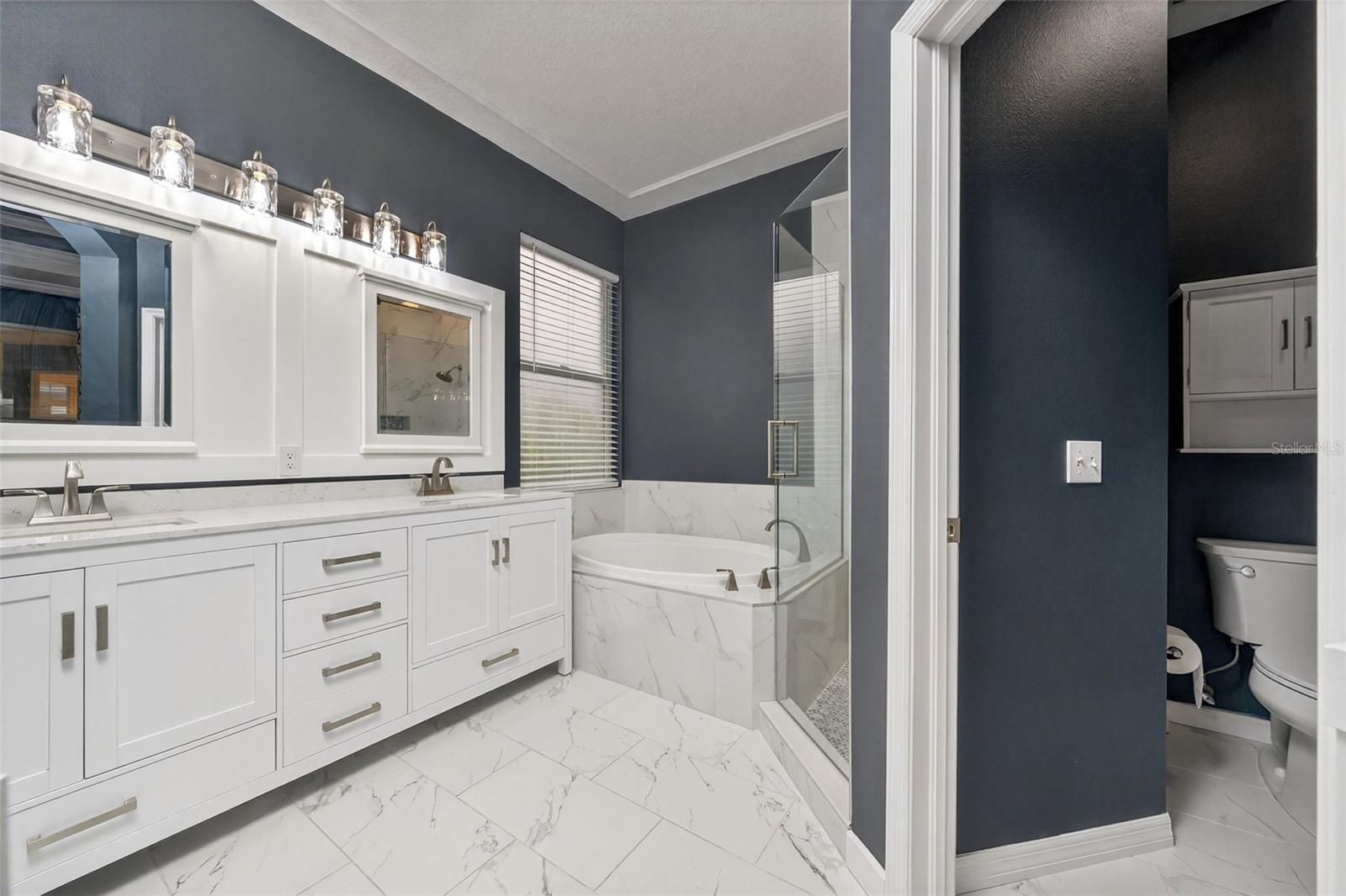 - Ceiling Fan(s), Crown Molding, High Ceilings, Kitchen/Family Room Combo, Living/Dining Room, Main Level Primary, Solid-Wood Cabinets, Thermostat, Tray Ceiling(s), Walk-In Closet(s)