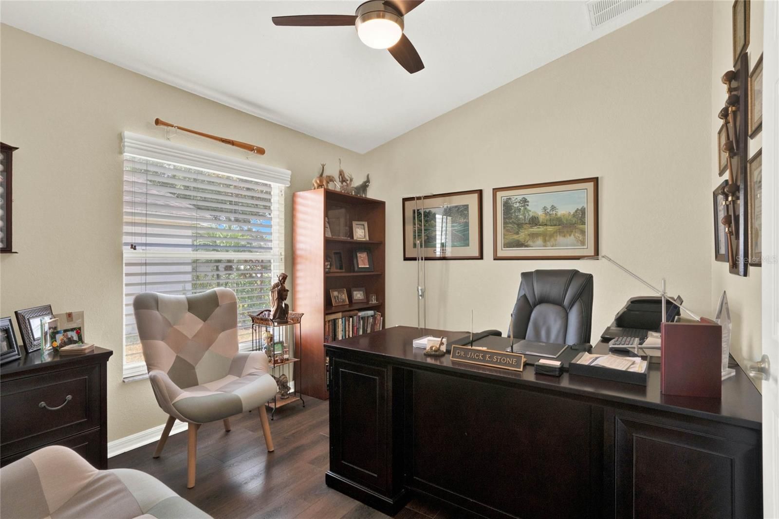 - Ceiling Fan(s), Eat-in Kitchen, Main Level Primary, Split Bedrooms, Stone Counters, Vaulted Ceiling(s), Walk-In Closet(s)