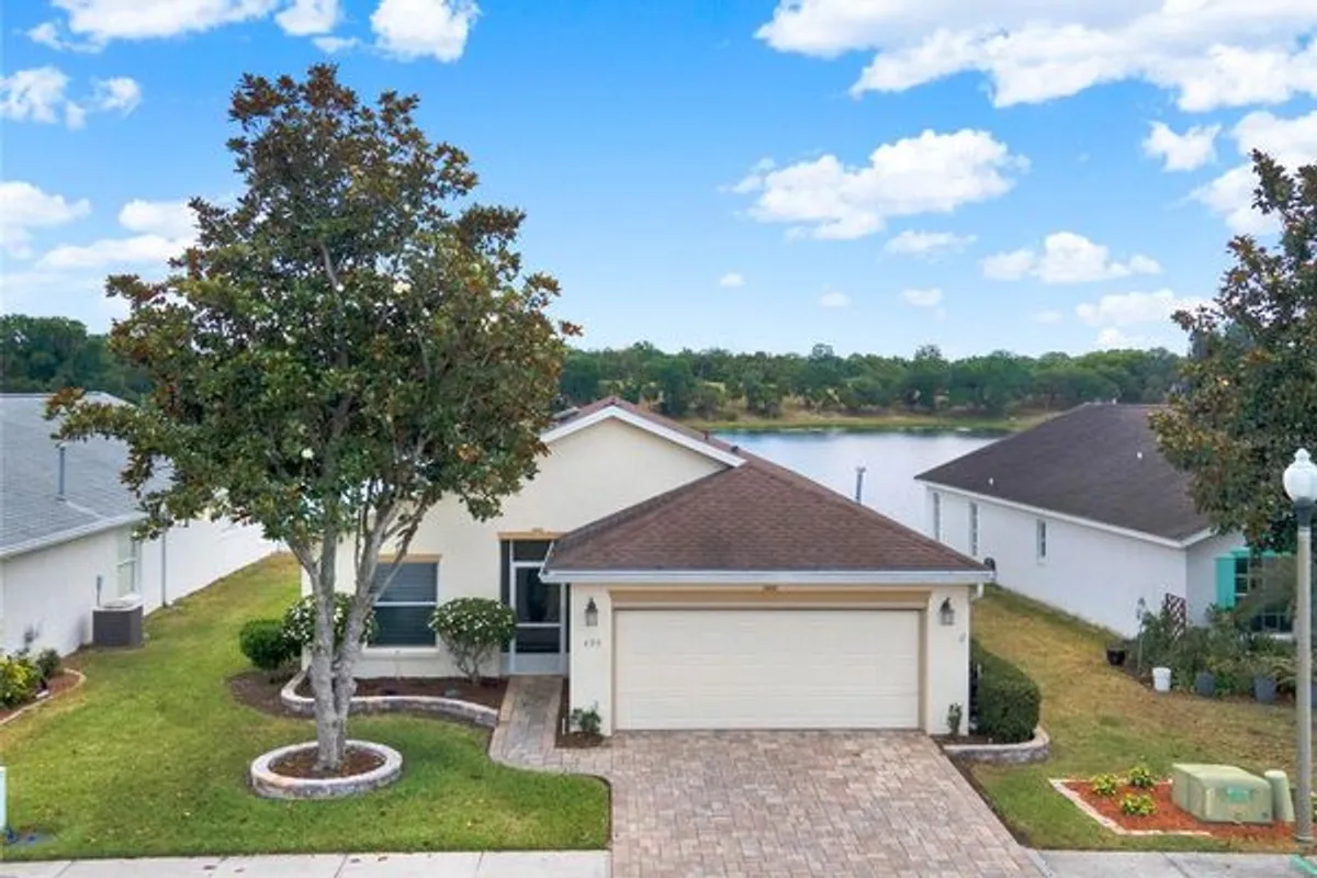 Under contract-accepting backup offers. This stunning waterfront home, nestled in the highly desirable 55+ gated community of Chalet Estates on Lake Suzanne, offers breathtaking views and a maintenance-free lifestyle. Featuring 2 bedrooms, 2 bathrooms, and a versatile den, this home is designed for both comfort and style. The generously sized living room is enhanced with soaring vaulted ceilings, water-resistant vinyl plank flooring, and oversized glass sliding doors that showcase the picturesque lakefront views. The eat-in kitchen features white cabinetry with elegant crown molding trim, perfectly complementing the luxurious Cambria quartz countertops. A stylish gooseneck faucet, double-bowl sink, upgraded stainless steel appliances, closet pantry, and breakfast bar enhance both functionality and design. The charming breakfast nook provides the perfect spot to enjoy serene waterfront views with your morning coffee. The Florida room, with its panoramic lake views, is an ideal retreat to relax and unwind. The spacious primary bedroom suite features vaulted ceilings, plantation shutters, and dual walk-in closets, offering ample storage. The well-appointed ensuite bathroom is designed for comfort, featuring a large vanity with double sinks, quartz countertops, Kohler brushed nickel faucets, a comfort-height toilet, a linen closet, and a walk-in shower with safety grab bars. Other amenities include a Laundry Room with Cabinetry, Washer & Dryer, Epoxy Finished Garage Flooring, Gutters, Irrigation System with Irrigation Meter, Retractable Garage Screen Door, Decorative Stone Landscape Edging, HVAC System 2023, Gas Water Heater 2023, Architectural Shingle Roof 2018, Paved Walkway & Driveway and a 2 Car Garage with Door Opener. Residents of Chalet Estates enjoy a vibrant and active lifestyle, with access to a waterfront clubhouse, a heated pool, a fitness center, a patio area, and direct access to Lake Suzanne. Conveniently located near shopping, restaurants, medical facilities, major routes, and Legoland, this home offers both tranquility and easy access to modern conveniences. Don’t miss the opportunity to embrace the beauty of lakefront living in this charming, well-appointed home!