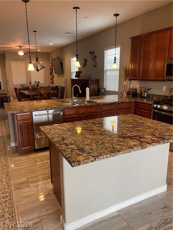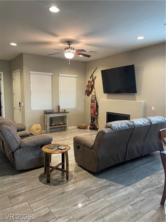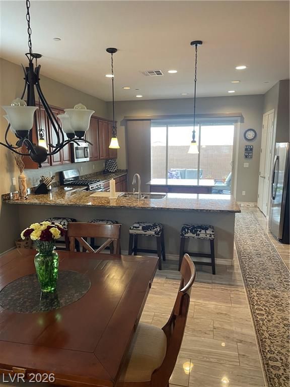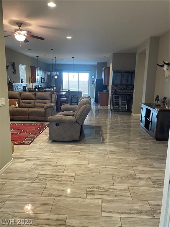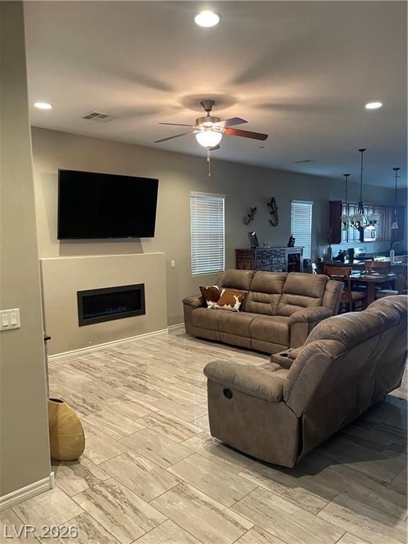 ASSUMABLE VA LOAN AT 3.125%. Impeccable Residence 12 model in Guard Gated Heritage subdivision in Cadence. Den could be 3rd bedroom. Front entrance starts with a well maintained yard, pavers and a large covered patio leading you to the front door. Opon entry feast your eyes on the many upgrades including river marble flooring, hand crafted wet bar and in wall gas fireplace. Dining room features an antique rubbed chandalier. The large gourmet kitchen boasts granite counter tops, a breakfast bar, island and premium appliances and a pantry. Primary bedroom has an oversized walk-in closed off the bathroom with dual sinks, huge shower and door that provides access to the rear covered patio. Largest laundry room in Heritage provides enough space for an office or extra storage. Enjoy the comfortable 2nd bedroom and spacious front Den. The rear covered patio with pavers has all the room you need to relax. The clubhouse is in walking distance and a must see with amazing facilities.