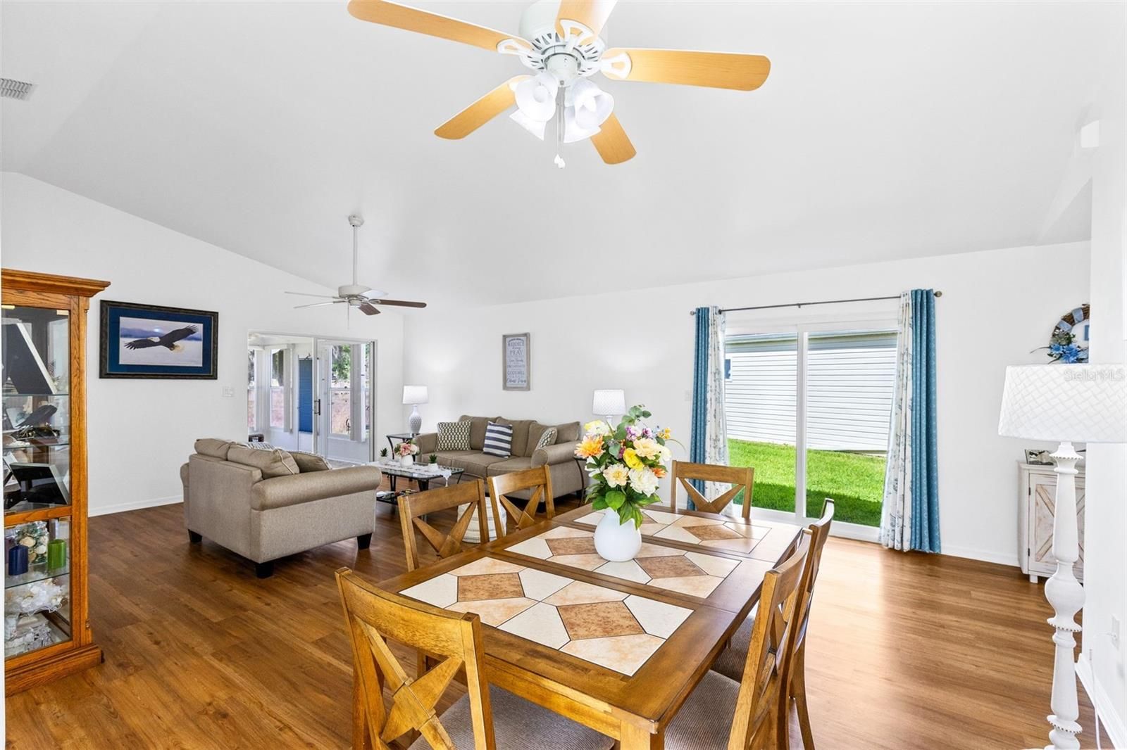 Welcome to 4960 Heron Run Circle, a bright and beautifully updated home offering space, comfort, and peaceful views in the gated community of Plantation at Leesburg. The owners chose this home for its exceptional natural light, spacious layout, and tranquil setting, showcased by a sun-filled dining and family room combo and laminate flooring throughout with no carpet. The remodeled kitchen features 42” white cabinets, updated appliances (2023), and a cheerful dinette area, while the split floor plan includes a guest bedroom and full hall bath alongside a spacious primary suite with a walk-in closet, linen storage, and a fully remodeled bathroom with dual sinks, new vanity, and a stunning new shower (2023). The lanai offers new flooring and its own A/C for year-round enjoyment, complemented by a screened garage door, laundry in the 1.5-car garage, and a patio off the garage. Outside, enjoy a partially fenced yard and open rear patio overlooking a peaceful marsh-style pond with golf course views beyond, creating a serene backdrop for everyday living. Major updates include new double-pane windows (2024), electric panel replacement (2023), new PVC fence (2022), new garage door (2020), tile rear patio (2019), new blinds (2019), water softener (2018), a whole-home water filtration system, and an A/C approximately eight years old. Residents enjoy a vibrant, resort-style lifestyle across 1,760 acres with over 100 clubs and activities, three pools, activity halls, golf cart-friendly streets, catch-and-release fishing, an on-site restaurant and pro shop, and flexible age guidelines allowing up to 20% of residents under 55, with golf, RV/boat storage, and select clubs or events available for additional fees.