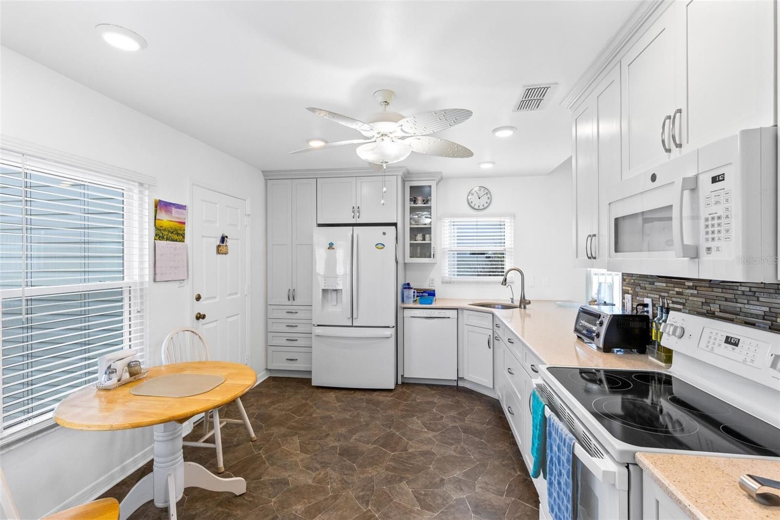 - Ceiling Fan(s), Eat-in Kitchen, Main Level Primary, Solid-Wood Cabinets, Vaulted Ceiling(s), Walk-In Closet(s)