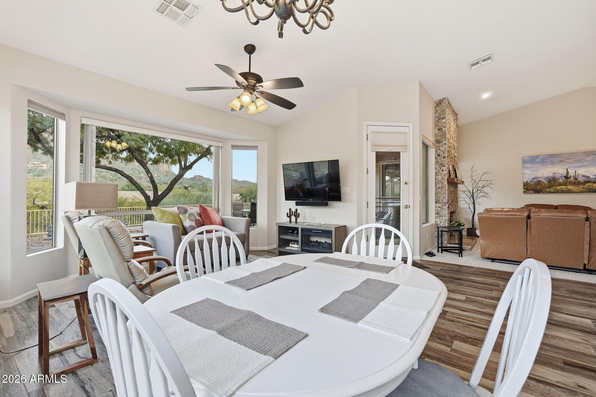 Experience privacy, mountain views, and Mountainbrook living in this beautifully updated home located in the desirable area of Hidden Canyon. This 2,028 sq ft residence offers 2 bedrooms, a den, and a versatile bonus room, providing flexible space for guests, hobbies, or a home office. The private backyard backs to a wash and features only one neighboring home, creating a peaceful setting with sweeping views of Superstition & Dinosaur Mountain views. Inside, enjoy a remodeled kitchen and primary bathroom, along with new tile flooring, roof, and AC for true move-in-ready comfort. The open, light-filled layout is ideal for both everyday living and entertaining. A large 3-car garage provides plenty of room for vehicles, storage, or a workshop. This home delivers value, privacy, & lifestyle.