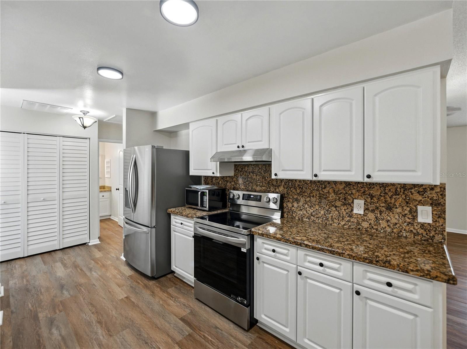 Welcome to the beautifully maintained, 55+ community of the Colonnades! This 2 bedroom, 2 bath, NEWLY REMODELED home is located in South Lakeland. With so many gorgeous upgrades, this little piece of heaven is waiting for you to call it home! The home has a NEW ROOF that was installed in 2025, all new Plumbing, and new Lux Waterproof Vinyl floors throughout the entire main living area and bathrooms with brand new carpeting installed in the bedrooms! The kitchen has all NEW stainless appliances, new cabinet doors and hardware, exquisite granite countertops, backsplash, and recessed lighting with a night light feature! A large laundry closet off the kitchen can easily be converted to boast a giant pantry to add storage. The home has all new blinds and light fixtures, new modern bifold doors on closets and all new interior doors. The master has an en-suite bath with new lighting and mirrors, new toilet, and all faucets and fixtures. With a large walk-in closet and separate linen closet, and granite countertop vanity with dual sinks. The Florida room is a great addition and is flowing with natural light giving the homes living area a more open and spacious feel. A large utility room is located off the Florida room with shelving providing ample storage and can be easily utilized for a laundry room if you wish. The Colonnades offers many amenities and activities including shuffleboard, billiards room, card playing, fitness room, and sauna. Water aerobics are held in the Olympic sized swimming pool as well as many other classes offered in the clubhouse. Golf carts are welcome, and the Colonnades welcomes you home!