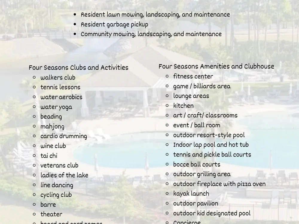 - See Four Seasons at The Lakes of Cane Bay clubs, activities, and classes